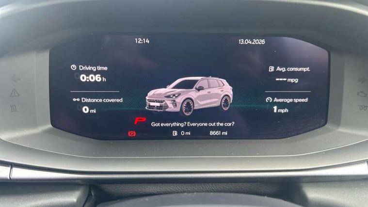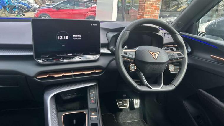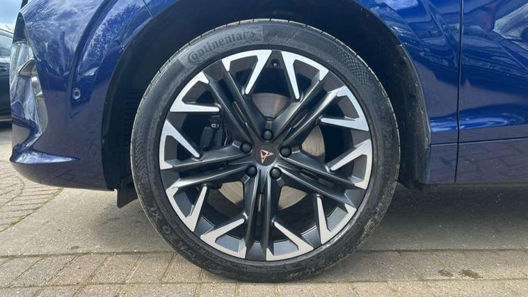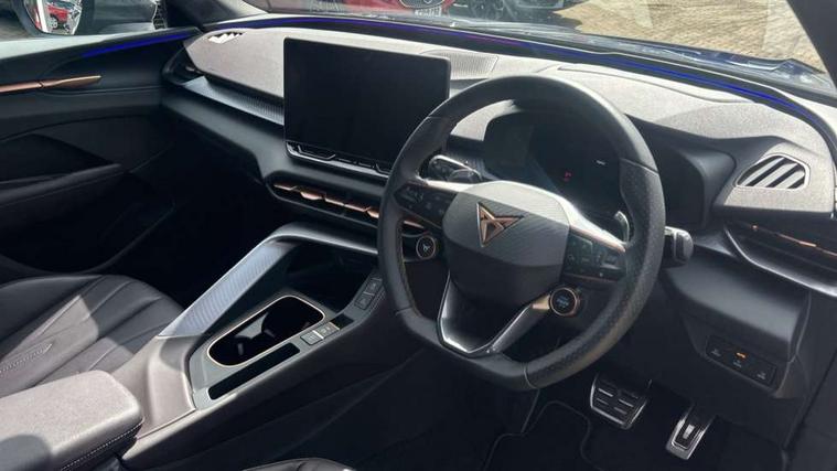 10.25" digital cockpit and configurable dashboard, Adaptive cruise control with follow-to-stop and speed limiter, Advanced driver alert system, Advanced lane assist with semi-automatic vehicle control in a medical emergency and traffic jam assist, Driving profile selection (DCC- Comfort, performance, CUPRA, Individual, Dynamic road sign display, E-call, Electric tailgate with virtual pedal, Emergency steering support with turn assist, Front and rear parking sensors, Front assist (Forward collision warning with automatic braking) with multifunction camera and front cross traffic assist, Head up Display, Intelligent park assist, Media system with Nav - 12.9" touch display, voice control, full link phone (wired/wireless), DAB and Steering wheel mounted controls, Rear traffic assist, Side and exit assist, Speed sensitive power steering, Start/stop system with regenerative braking, Top view camera (front camera, rear camera, 2 side cameras), Wireless phone charger, Adaptive chassis control with a 2-valve shock absorber, Auto dimming rear view mirror, Black roof rails, CUPRA 3D rear lights with ceremony & swiping indicator and illuminated logo, Dark tinted rear windows, Daytime running lights with automatic headlight control and Coming and Leaving home function, Door mirrors with memory function and lowing function on passenger mirror, Electric front/rear windows, Electrically adjustable, heated and folding door mirrors, Front fog lamps with cornering function, Heat reflecting windscreen, High beam assist, Rain sensing wipers, Rear fog light on one side, back up light on both sides, Rear side wing doors, Rear wash/wipe, Third brake light, Welcome lights (within exterior mirror housing), 3 seat bench in 2nd row, Black roof lining, Cupra sports pedals, Driver seat memory function, Electrically adjustable front seats including lumbar support, Four x USB Type C ports (2 in front and 2 in rear), Front and rear head restraints, Front and rear reading lights X 4, Front centre armrest, Heated front seats, Heated leather wrapped multi function sports steering wheel with tiptronic, Illuminated interior front door sills, Isofix, Leather upholstery, Operating voltage 12V, Single front passenger seat, Smart wraparound interior lighting, Sunvisors with illuminated mirror, Three zone climate control with control panel in rear, Unsplit rear seat bench, split folding backrest, with centre armrest, Variable luggage/load compartment floor, Pure performance pack - Terramar, 3 point seatbelts in front with pretensioner and electric height adjustment, 3 point seatbelts on all rear seats, Brake control system - ESC and brake booster, Child proof door locks, Driver and front passenger airbags, Electronic parking brake, Front and rear disc brakes, Front interaction airbag, Front passenger airbag deactivation switch, Front side airbags with curtain airbags, Pre-crash front and rear seat belt tensioner, window closure and hazard lights, Tyre pressure monitoring system, Visual and acoustic seat belt reminder, electric contact in front and rear, Anti theft alarm, Keyless locking and starting system with keyless access, Locking wheel bolts, Black decorative trims, Chrome interior detailing, Performance tyres in polmer coating, Tool kit,