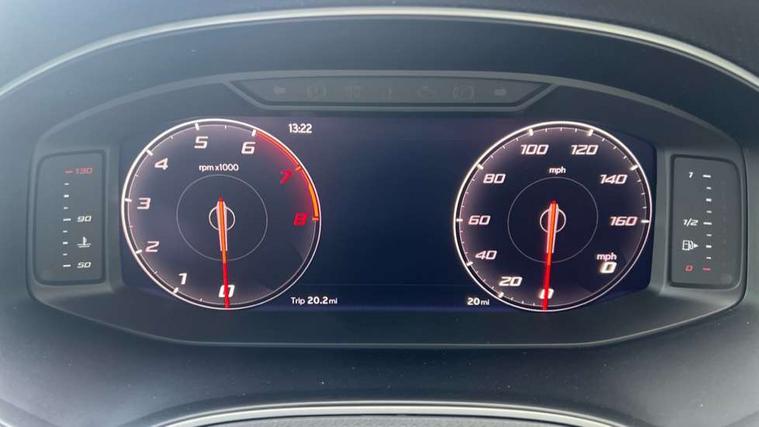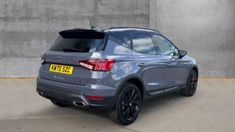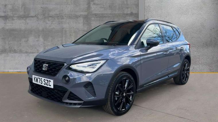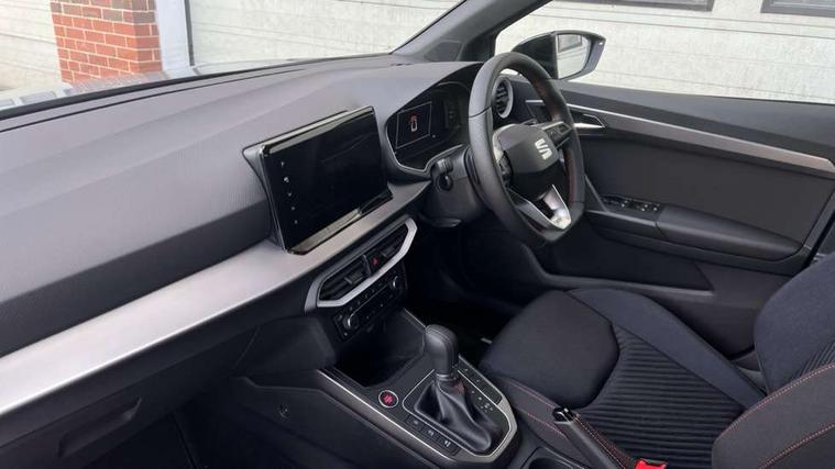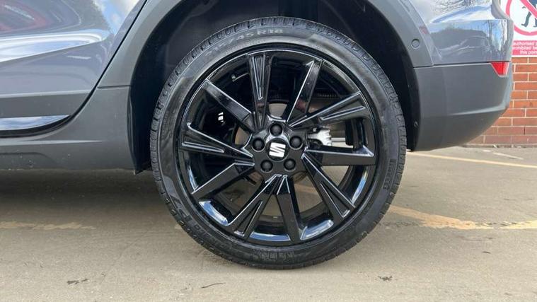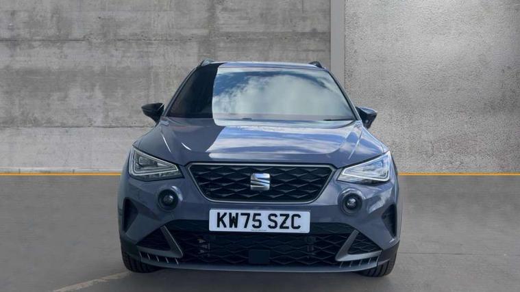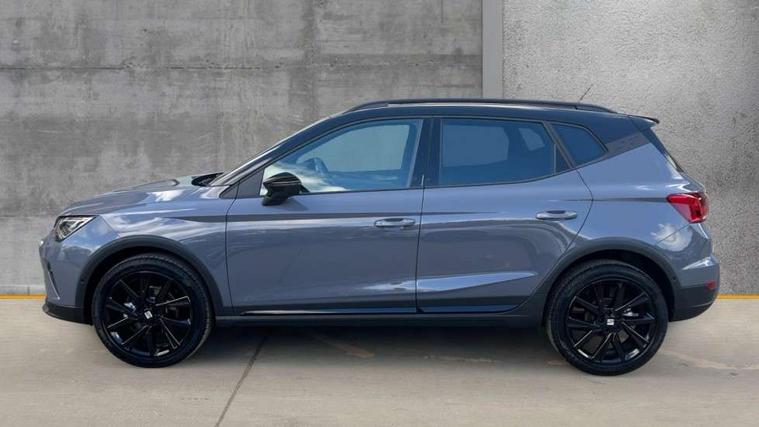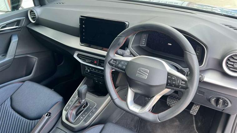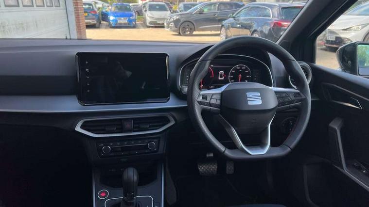 'Lights On' Reminder warning buzzer, 10" Digital cockpit, Digital clock, E-call, Electric speed sensitive power steering, Full link smartphone integration with mirror link, wireless apple carplay, Google android auto + USB Type C cable for apple and android devices, Lane keeping system, Low fuel warning light, Outside temperature display, Park assist system, Rear view camera, RPM counter, SEAT Drive profile - Four different models normal-sport-eco-individual, steering response, throttle response and gear shifts mode, Trip computer, Wireless phone charger, 9.2" colour touchscreen with navigation system, voice control and USB port (type c), Bluetooth interface for hands free and audio streaming, DAB digital radio and AM/FM radio, Steering wheel mounted audio controls, Anti theft roof antenna, Auto dimming interior rear view mirror, Automatic activation of hazard warning lights, Black roof rails and window surrounds, Black side skirts, Body coloured bumpers, Body coloured door handle inserts, Dark tinted rear windows, Electric front/rear windows, Electrically adjustable, heated and folding door mirrors, Front fog lights with cornering function and rear fog light, FULL LED automatic headlights with dynamic headlight range control, coming and leaving home, LED daytime running lights, Lasered lettering on B pillar, LED rear tail lights and licence plate lights, Protective side mouldings, Rain sensing wipers, Rear side wing doors, Rear spoiler, Rear window wash/wipe, Roof colour door mirrors, Third brake light, Twin exhaust pipe styling hidden exhaust pipe, Visible VIN plate, 2 cupholders, 3 seat bench in 2nd row, 60/40 split folding rear seat, Aircare filter, Black interior roof, Double boot floor, Driver sunvisor with covered mirror + card holder, Dual zone climate control, Front courtesy light with front reading lights, Front seat back storage pockets, Gear shift indicator, Grey interior air vents, Heated front seats, Height adjustable front seats, Height/reach adjustable steering column, Illuminated air vent surrounds, Illuminated boot, Instrument lighting with brightness control, Interior ambient lighting, Interior light in footwell, central console and door panel, ISOFIX points in outer rear seats with top tether anchorage points, Microsuede cloth upholstery, Passenger sunvisor with vanity mirror, Perforated flat bottomed leather steering wheel/gear knob/handbrake with red stitching and FR logo, Potentiometer, Single front passenger seat, Sports cloth bucket seats, Steering wheel mounted gearshift paddles, Two front and three rear height adjustable headrests, Interior chrome pack - Arona, Safe and driving pack (S) - Arona, Safety and driving pack (M) - Arona, ABS, Active front headrests, Child locks on rear doors, Driver and front passenger airbags with front passenger airbag de activation, front side and curtain airbags, Emergency Brake Assist (EBA) and front assist, Front and rear seatbelt reminder, Hill hold control, Multi-Collision braking, Tiredness recognition system, Traction control, Tyre pressure monitoring system, Alarm with back up horn with tow away protection, Deadlock, Electronic engine immobiliser, KESSY Keyless entry and go, Locking wheel bolts, Remote central locking, Titan black dashboard, 18" Black alloy wheels,