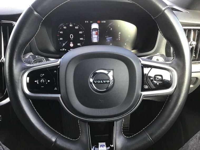 12.3" Active TFT crystal driver's instrument display, 9" centre console touch screen, Adjustable steering wheel force, Bluetooth hands free telephone kit, Drive mode settings, Driver alert control with lane keeping aid, Information centre, Oncoming Lane Mitigation, Sensus navigation with European mapping and traffic information, Service interval indicator, Speed limiter, Speed sensitive steering, Trip computer, Voice activated control for key functions, Volvo on call, 8 speed automatic transmission with start/stop + manual change functions, DAB Digital radio, Active bending headlights with adaptive shadow technology, Adaptive brake lights with high level LED brake lights, Automatic headlight levelling system, Automatic LED Headlights + Active high beam incorporating daytime running lights, Body colour bumpers, Colour coordinated auto folding and heated power door mirrors, Dark tinted windows for rear side windows and cargo area, Dual integrated exhaust pipes with high gloss black surround, High gloss black door mirrors and window surround, High gloss black mesh front grille with silk metal surround, Home safe and approach lighting, Integrated roof rails in high gloss black, LED front fog lights with static cornering light function, Power front and rear windows, R Design tread plates, Rain sensor with automatic windscreen wiper activation, Rear wiper, Roof antenna, Roof spoiler, Visible VIN plate, 12V socket in front + rear tunnel console, A-pillar parking ticket holder, B Pillar ventilation, Black headlining, Bright metal luggage compartment threshold, Cargo load hooks, Centre console cupholders and storage, Contour sports seats with nappa leather/textile upholstery, Extended front seat cushions, Front footwell illumination, Front head restraints, Front reading lights + Theatre lighting and centre armrest storage illumination, Front/rear door pockets and front cupholder illumination, Glovebox compartment with illumination, Heated steering wheel, Height/reach adjustable steering column, High gloss black steering wheel remote infotainment controls, Illuminated vanity mirrors + ticket holder, Isofix attachments on rear seats, Leather sports steering wheel with gearshift paddles, Load cover, Lockable load floor, Luggage compartment illumination, Multi directional lumbar support, Multicolour theatre lighting and puddle lights, Nappa Leather Key Integrated Remote, Power driver seat with memory + exterior mirrors memory, Rear armrest with storage + cupholders, Rear footwell and side step illumination, Sport leather gear knob, Sports floor mats, Sports pedals, Tailgate illumination and ambient door lighting, Underfloor cargo storage, WHIPS - Whiplash Protection System, 5 x 3 point seatbelts, City safety with steering support with Pedestrian + cyclist + large animal detection + front collision warning with full auto brake, Dual stage driver/passenger airbags, First aid kit, Hill start assist, IC (Inflatable Curtains) - Full Length, Passenger airbag cut-off switch, Power parking brake with auto hold function, Road sign information display, Run off Road Mitigation, Run off Road Protection, Seatbelt reminder and pretensioners for all seats, SIPS (Side Impact Protection System), SIPS airbags, Stability and Traction Control with Spin control, Engine Drag Control and Corner Traction Control, Tyre pressure monitoring system, Vehicle deceleration control with Anti-lock Brake System, Electronic Brake Distribution and Emergency Brake Assist, Warning triangle, Anti-theft alarm including immobiliser/volume sensor + level sensor, Key integrated remote control central locking + fuel flap with deadlocking system and auto open/close power windows, Keyless drive (incudes keyless entry and start) with remote tag and handsfree tailgate open/close, Locking wheel nuts, Private locking for tailgate, Metal mesh inlays,