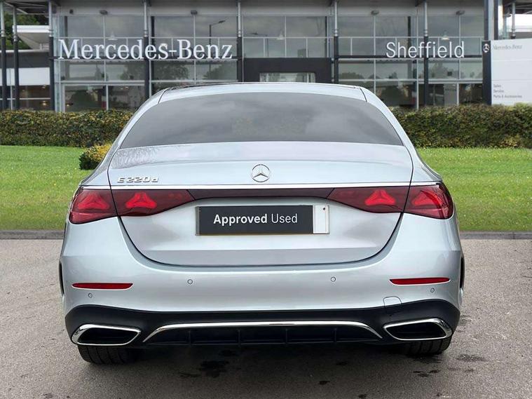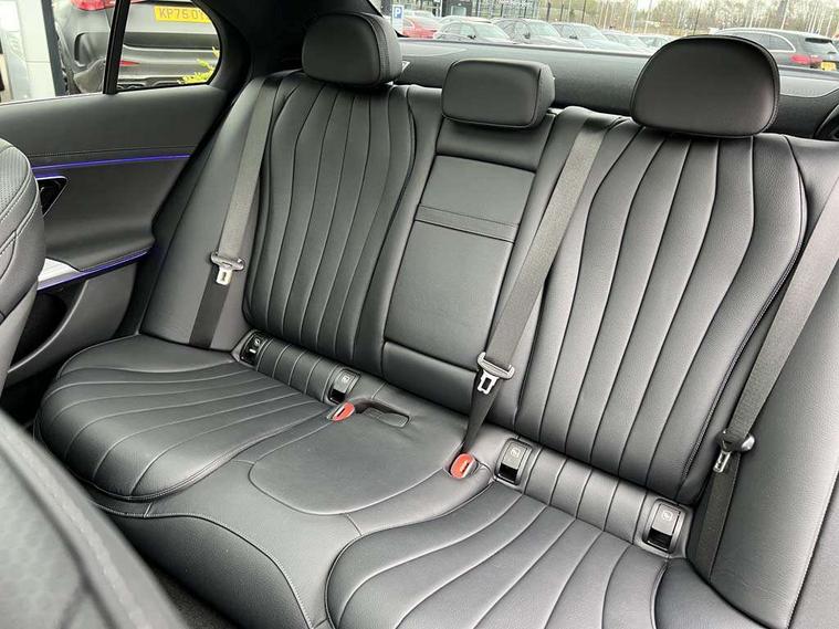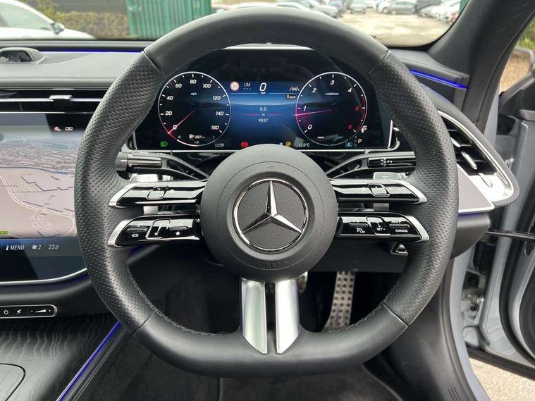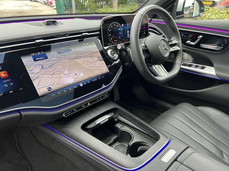 12.3" 3D driver display, 14.4" central media display, 5G Communications module, Attention assist, Augmented reality navigation, Blind spot assist, Brake wear warning display, Direct steer speed sensitive steering, ECO start/stop function, Emergency call assistance, Evasive manoeuvre support, Fluorescent jacket for driver, Hard disc navigation, Head up Display, MBUX Interior assistant, MBUX navigation premium, MBUX voice control, Mercedes connect me, Outside temperature display, Preinstallation for live traffic, Remote bootlid closing, Remote Services Premium, Selfie and video camera, Service indicator (ASSYST), Status display for rear seat belts in instrument cluster, Trip computer in multifunction display showing current fuel consumption, Wireless charging, Wireless smartphone integration with Apple CarPlay and Android auto, 48V Mild hybrid technology, 66 litre fuel tank, 9G TRONIC automatic transmission, Agility control suspension with selective damping and lowering, Bluetec emission control, Diesel particulate filter, Integrated starter generator Gen 2, Residual engine heat utilisation, Sporty engine sound system, Burmester 4D premium sound system, DAB Digital radio, Preinstallation for MBUX Entertainment Plus, Sound visualisation, 3rd brake light, Acoustic glass, Adaptive brake lights, Aerial integrated in rear window, AMG bodystyling, Auto dimming driver's door mirror, Auto dimming rear view mirror, Black radiator grille illuminated with Mercedes-Benz start pattern, Digital air vent control, Electric folding door mirrors, Electric windows with one touch opening/closing and obstruction sensors, Electrically adjustable and heated door mirrors, Heat insulating privacy glass, LED daytime running lights, LED digital light including projection functions with adaptive highbeam assist plus, Panoramic sliding sunroof, Pre-installation for roof rail systems, Rear boot, Rear side wing doors, Surround lighting with logo projection, 3 seat bench in 2nd row, 4 way lumbar support, Active ambient lighting, AMG brushed stainless steel sports pedals with rubber studs, AMG floor mats, AMG line interior, Automatic child seat recognition sensor, Central stowage compartment with USB socket for use with Android Auto and Apple CarPlay, Comfort seats, Courtesy lights in rear grab handles with reading light functionality, Folding rear seat backrest, Front centre armrest with stowage compartment, Glove compartment - lockable, air conditioned and illuminated, Head restraints for driver and front passenger (four-way adjustability) and in rear (two-way), Heated front seats, Illuminated door sills, Multifunction sports steering wheel in nappa leather, Roof liner in black fabric, Seat occupancy sensor for front passenger seat, Single front passenger seat, Sunvisors with illuminated vanity mirrors, Thermotronic 4 zone climate control, Energizing package - E Class, Keyless Go comfort package - E Class, Leather package - E Class, Memory package - E Class, Parking package with 360 degree camera - E Class, USB plus package - E Class, 3x3 point rear seatbelts, Active bonnet pedestrian safety measure which detects an impact and raises bonnet, Adaptive brake system with HOLD function and brake drying in the wet, Anti-lock braking system (ABS), Automatic front passenger airbag deactivation, Central airbag, Childproof locks manually operated for rear doors and electrically operated for rear power windows, Driver and adaptive front passenger airbags, Electronic parking brake, Electronic Stability Programme, Hill start assist, ISOFIX child seat attachment points two outer rear seats, Knee airbags, Pedestrian protection, Pre-Safe anticipatory safety system, Tyre pressure monitoring system, Warning triangle and first aid kit, Window airbags, Alarm system with interior monitoring, Central locking with interior switch, automatic locking and crash sensor with emergency opening function, Dashcam, Digital vehicle key, Guard 360 degree vehicle protection plus, Increased anti theft protection, Urban guard vehicle protection plus, Open pore black ash wood centre console trim, 20" AMG multispoke bi colour alloy wheels, Noise reduced tyres, Summer tyres, Tirefit,
