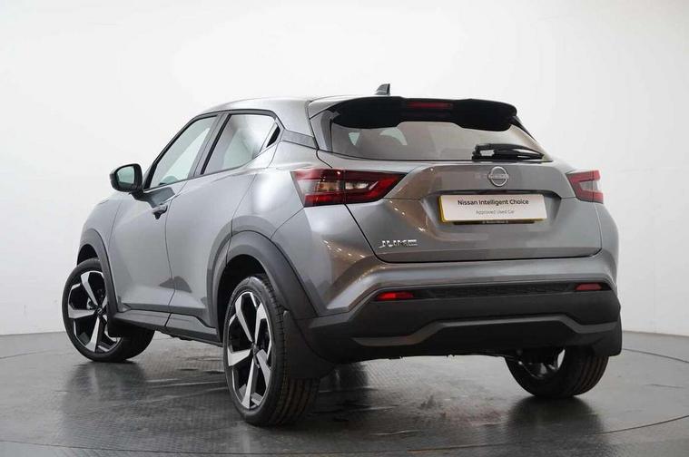 7" full colour TFT screen combimeter, Apple CarPlay and Google Android auto, Drive modes select (Eco, normal and sport), Emergency and breakdown call, Front parking sensor, Idle start/stop system, Intelligent lane intervention, Lane departure warning system, Nissan connect 8" touch screen entertainment system, Nissan connect nav with TomTom traffic, Nissan connect services and Wifi connection, Outside temperature sensor, Power Steering, Rear parking sensor, Traffic sign recognition, Trip computer, Voice recognition, Gasoline particulate filter, 10 Bose speakers 6 speakers and 2 headrest speakers for driver/passenger seats, Bluetooth system, USB, Aux-in and 12V socket, Bose personal sound stage control, DAB Digital radio, Rear console USB port, Auto dimming interior rear view mirror, Auto headlights, Automatic hazard signal with emergency stop signal, Body colour bumpers, Body colour door handles, Electrically adjustable door mirrors with integrated indicators, Follow me home headlights, Front and rear electric window with one touch driver window, Heated and auto folding door mirrors, High beam assist, LED daytime running lights, LED front fog lights, LED headlamps, LED rear fog lamp, LED rear lamps, Rain sensor windscreen wipers, Rear privacy glass, Rear side wing doors, Rear wiper, Thermaclear heated windscreen, Three blink turn signal, 3 height adjustable rear headrests, 3 seat bench in 2nd row, 60/40 split folding rear seat, Automatic climate control, Card holder on driver sunvisor, Door ambient lighting, Driver and passenger sliding and reclining seats, Driver seat back pocket, Driver side rear coat hanger, Driver/passenger sunvisors and vanity mirrors, Front and rear cabin lights, Front armrest, Front door pockets with bottle holders, Front head restraints, Front passenger isofix child seat anchorage point, Front/rear passenger grab handles, Gear console ambient circle lighting, Grey synthetic leather kneepad, Heated front seats, Height adjustable driver's seat, Height adjustable passenger seat, Internal chrome door handles, Leather gearshift knob, Leather steering wheel, Luggage board, Luggage space lighting, Monoform sporty seats, Multifunction steering wheel, Passenger seat back pocket, Rear door bottle holders, Single front passenger seat, Synthetic leather upholstery, Telescopic steering wheel adjustment, Two cupholders in front centre console, Two rear isofix child seat anchorage points with top tether, Welcome light and console tray ambient lighting, Advanced safety shield pack - Juke, ABS with EBD and brake assist, Active ride control, Active Trace Control, Driver and passenger airbags, Driver and passenger side airbags, Electric handbrake with auto hold function, Electronic Stability Programme (ESP), Front and rear curtain airbags, Height adjustable seatbelts, Hill start assist, Intelligent emergency braking with pedestrian and cyclist recognition, Rear door child safety locks, Seatbelt reminder for driver/front passenger and rear seats, Single tone horn, Three 3 point rear seatbelts, Traction control, Tyre pressure monitoring system, VDC Dynamic Vehicle Control, Ventilated rear brake discs, Alarm, Immobiliser, Intelligent key and start push button with walk away lock and approach unlock functions, Remote central locking,
