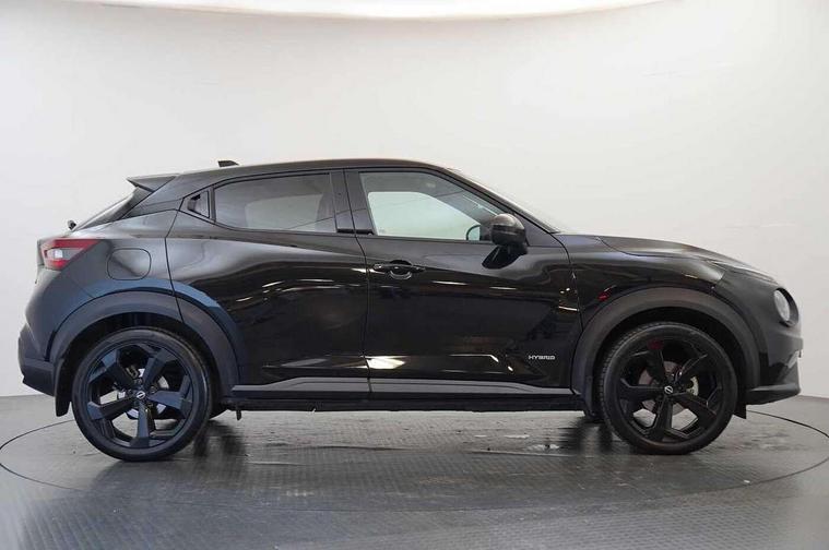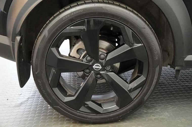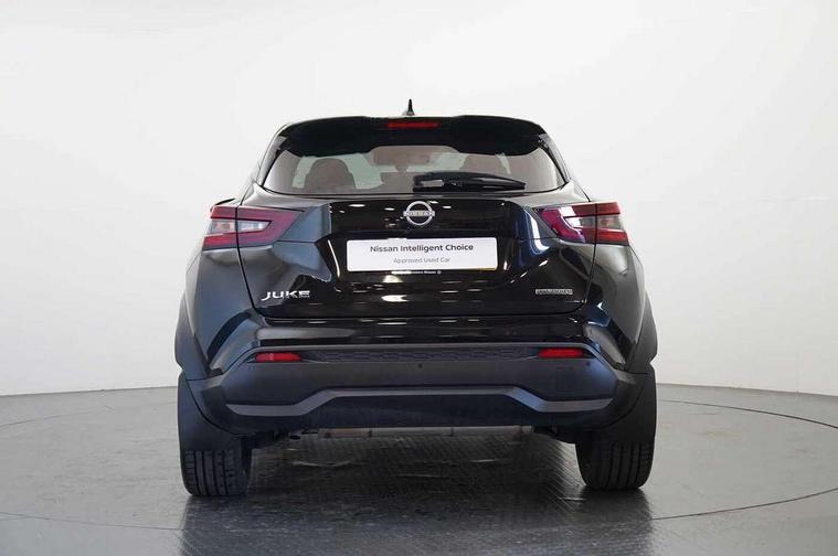 12.3" full colour TFT screen combimeter, Drive modes select (Eco, normal and sport), e-Pedal step, Emergency and breakdown call, EV mode switch, Front parking sensor, Intelligent driver alert system, Intelligent lane intervention, Lane departure warning system, Nissan connect 12.3" touch screen entertainment system, Nissan connect nav with TomTom traffic, Nissan connect services, Outside temperature sensor, Power Steering, Rear parking sensor, Stop/start button, Traffic sign recognition, Trip computer, Voice recognition, WiFi connectivity, Wireless Apple CarPlay and Google Android auto, Wireless Smartphone charger, 10 Bose speakers 8 speakers and 2 headrest speakers for driver/passenger seats, 2 X Rear console USB port, Bluetooth system, USB, Aux-in and 12V socket, Bose personal plus audio system, DAB Digital radio, Auto dimming frameless rear view mirror, Automatic hazard signal with emergency stop signal, Body colour door handles, Electrically adjustable door mirrors with integrated indicators, Follow me home headlights, Front and rear electric window with one touch driver window, High beam assist, LED 3rd brake light, LED daytime running lights, LED front fog lights, LED headlamps, LED rear fog lamp, LED rear lamps, One touch passenger window, Rear privacy glass, Rear side wing doors, Rear wiper, Roof spoiler, Shark fin roof antenna in solid Black, Solid black door mirrors, Three blink turn signal, 3 height adjustable rear headrests, 3 seat bench in 2nd row, 60/40 split folding rear seat, Card holder on driver sunvisor, Door ambient lighting, Driver seat back pocket, Driver side rear coat hanger, Driver/passenger sunvisors and vanity mirrors, Front and rear cabin lights, Front armrest, Front door pockets with bottle holders, Front head restraints, Front/rear passenger grab handles, Gear console ambient circle lighting, Height adjustable driver's seat, Internal chrome door handles, Luggage board, Luggage space lighting, Monoform sporty seats, Multifunction steering wheel, Passenger seat back pocket, Rear door bottle holders, Single front passenger seat, Smooth synthetic leather steering wheel, Synthetic leather kneepad, Synthetic leather shift knob, Synthetic leather upholstery, Telescopic steering wheel adjustment, Two cupholders in front centre console, Two rear isofix child seat anchorage points with top tether, Welcome light and console tray ambient lighting, Comfort pack - Juke, Heat pack with height adjustable passenger seats - Juke, ProPilot pack - Juke Auto, ABS with EBD and brake assist, Active ride control, Active Trace Control, Driver and passenger airbags, Driver and passenger side airbags, Electric handbrake with auto hold function, Electronic Stability Programme (ESP), Front and rear curtain airbags, Height adjustable seatbelts, Hill start assist, Intelligent emergency braking with pedestrian and cyclist recognition, Rear door child safety locks, Seatbelt reminder for driver/front passenger and rear seats, Three 3 point rear seatbelts, Traction control, Tyre pressure monitoring system, VDC Dynamic Vehicle Control, Alarm, Immobiliser, Intelligent key and start push button with walk away lock and approach unlock functions, Remote central locking, 19" Alloy wheels, Tyre puncture repair kit,