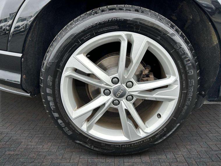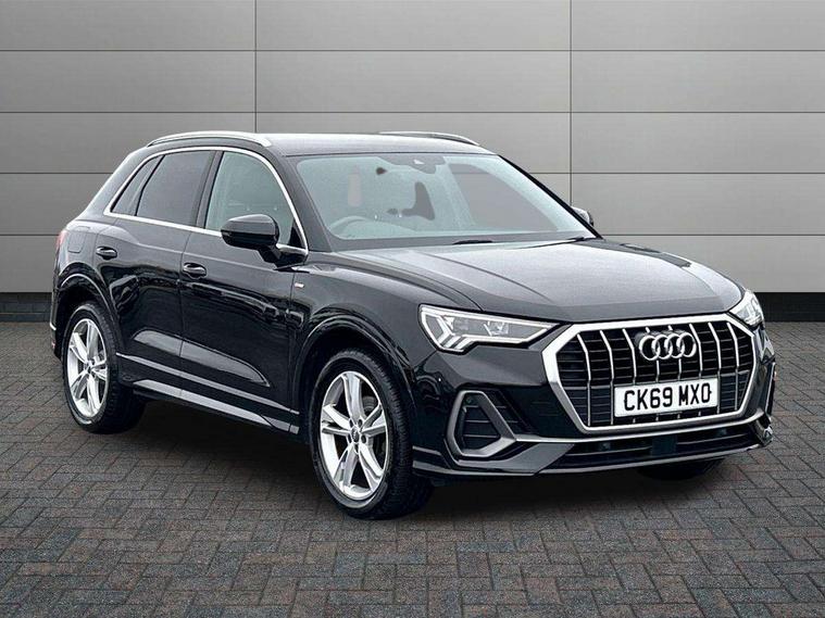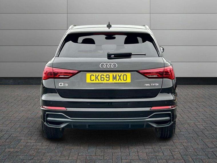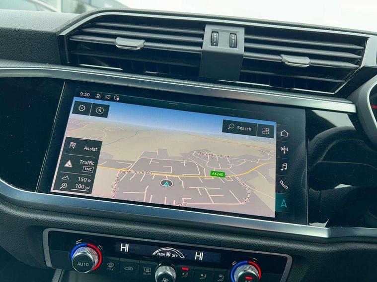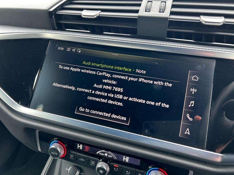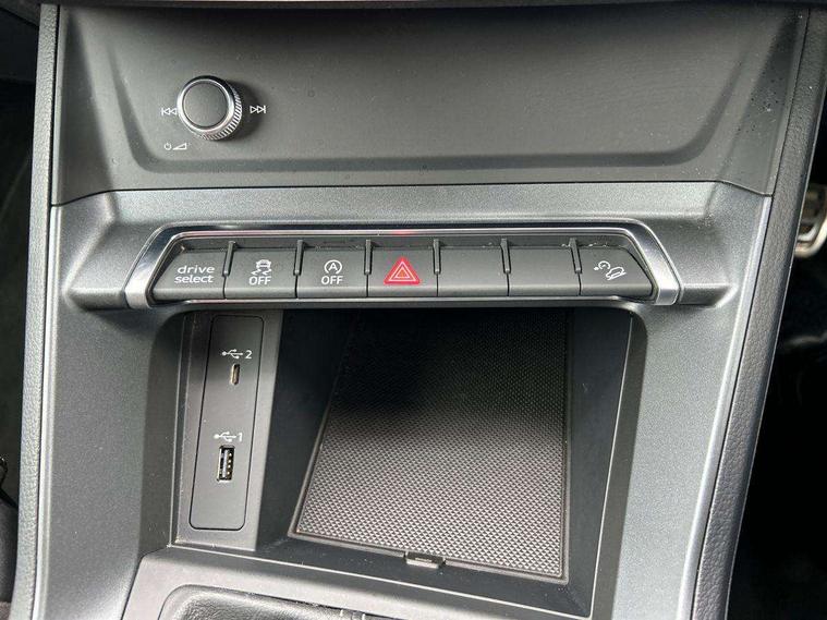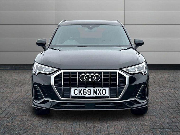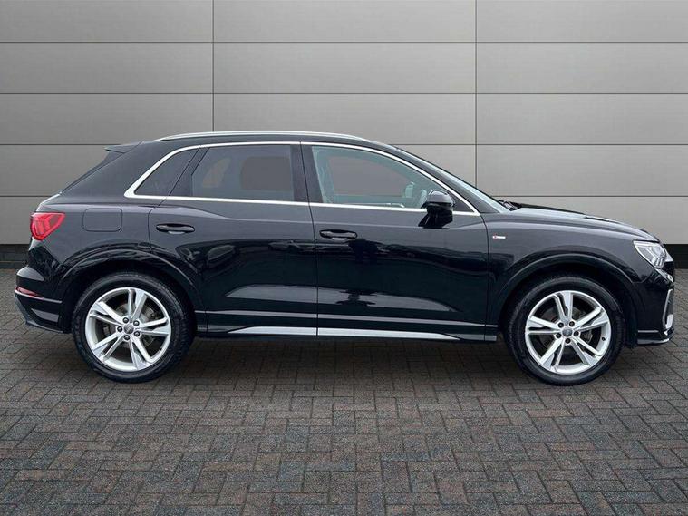 Audi connect safety and service (e-call), Audi drive select, Audi lane departure warning, Audi side assist, Audi smartphone interface, Audi Virtual Cockpit - 10.25" display, Bluetooth interface, Camera based traffic sign recognition, Cruise control + speed limiter, MMI navigation plus with MMI touch, Power opening/closing tailgate, Progressive steering, Rear parking sensors, Service interval indicator, Stop/start system, Voice control system, Sports suspension, 1 x USB type C and 1 USB type A charging points, 6 speakers, DAB digital radio module, Acoustic windscreen, Aluminium roof rails, Aluminium window trim, Auto dimming rear view mirror, Body coloured bumpers, Diffuser in matt Platinum grey, Electrically adjustable and heated door mirrors with integrated LED side indicators, Front and rear electric windows, Front fog lights, Front side air inlets in matt platinum grey, Front spoiler blade in matt platinum grey, Grille vertical bars in aluminium silver/Matt, High gloss black finish B and C pillars, LED headlights with LED daytime running lights and dynamic rear indicator, LED rear lights, Privacy glass, Rain and light sensors, Rear diffuser strip in matt titanium black, S Line badge on wings, S Line front and rear bumpers, Side skirt insert in matt Platinium grey, Titanium black radiator grille, 12V socket in rear centre console, 40:20:40 split folding rear bench seat, Adjustable rear seat bench/backrest with centre armrest and cupholder, Aluminium door sill trims, Black cloth headlining, Dual zone climate control, Front and rear black floor mats with contrast stitching in rock grey, Front and rear headrests, Front and rear roof module including reading lights, Front centre armrest with storage compartment and angle adjustment, Glove compartment lighting, Height and reach adjustable steering wheel, Illuminated door sill trims with S logo, ISOFIX child seat mounting and Top Tether with front passenger airbag deactivation, Luggage compartment light, Manual front seats with height adjustment, Perforated leather gearknob, Stainless steel luggage compartment sill finisher, Stainless steel pedals, Non smoking pack - Q3, 3x3 point rear seatbelts, 6 airbags - Driver, front passenger, curtain and side windows, Audi pre-sense front with pedestrain and cyclist recognition, Electrically operated child locks on rear doors, Electromechanical parking brake, Electronic stabilisation control including ABS, ASR and EDL, Hill descent control, Hill hold assist, Pre sense basic, Seatbelt monitoring, Tyre pressure warning, Warning triangle and first aid kit, Anti theft alarm, Anti theft wheel bolts, Remote central locking, Dark matt brushed aluminium inlay, MMI touch colour display in gloss black with aluminium surround,