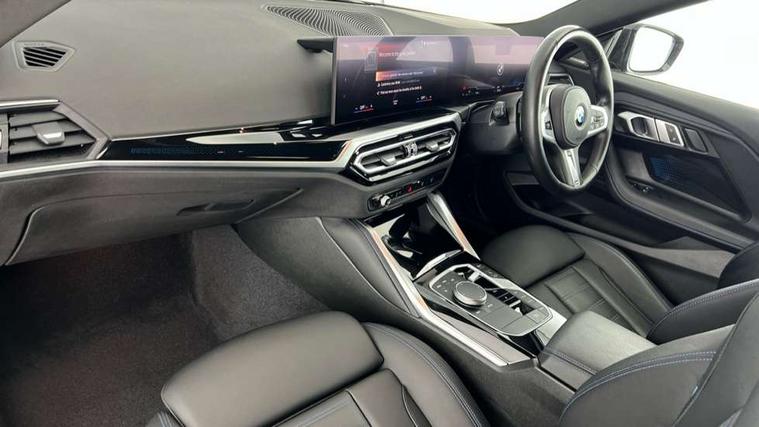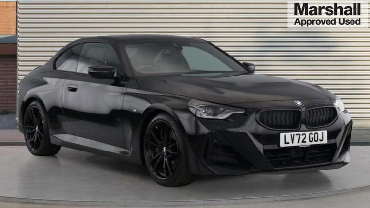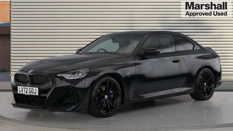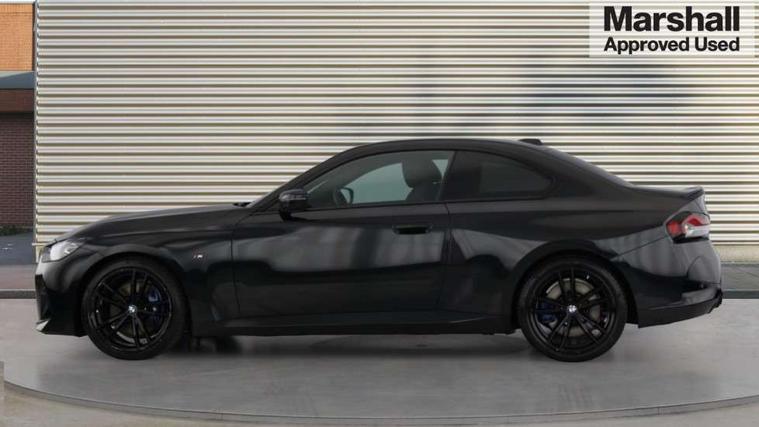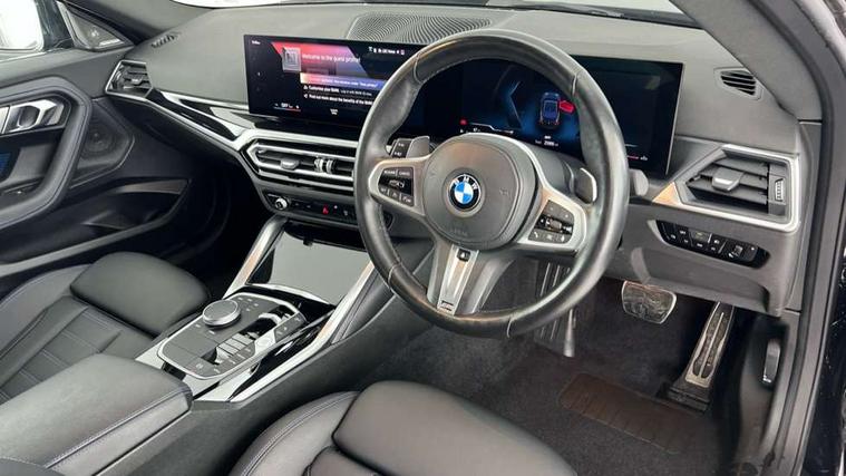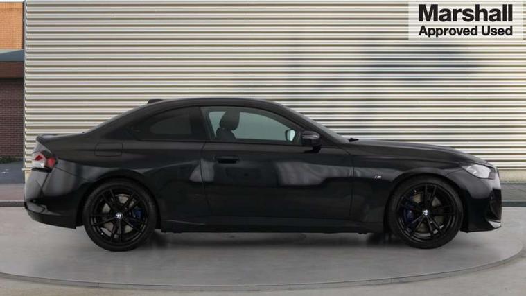 Attentiveness assist, Auto start-stop, Bluetooth, BMW ConnectedDrive online services, BMW Teleservices, Check Control warning system for monitoring of lights and door/luggage compartment open warning, Direct selection buttons, Drive off assistant, Eco pro mode, Electric power steering, Front and rear parking sensors, Front/rear Parking distance control, iDrive controller with turn and press function, Integrated owners handbook, Intelligent functions, Live cockpit plus with nav function 12.3" instrument cluster and 14.9" centre display, Oil sensor for level and grade, Optimum shift indicator, Personal Profile, Touch operation on control display, Variable sport steering, Widescreen multi-media display, Aluminium lightweight construction, Balancer shaft, BMW TwinPower Turbo four-cylinder petrol engine, Double VANOS, Drive performance control with ECO PRO comfort + sport mode, Electronic differential lock, High precision injection, M sport suspension, Petrol Particulate Filter, Sport automatic steptronic transmission with gearshift paddles, manual gearshift time display, launch control, coasting idle ECO PRO/COMFORT modes, Twin scroll turbocharger with Valvetronic, DAB tuner, Acoustic windscreen wipers for reduced driving noise, Adaptive LED Headlights, Automatic windscreen wipers and automatic headlight, Automatically dimming rear view mirror, Body colour door handles flush with door surface, Body colour door mirrors, Body colour front and rear bumpers, Daytime running lights, Electric windows - front and rear, with open/close fingertip control and trap release, Exhaust tailpipes x2 - 90mm in left and right, Fading support, Front and rear bumper system with replaceable deformation elements, Front door sill finishers in black plastic with BMW designation, Front windscreen wipers with integrated washer jets, Green tinted heat protection glazing, High beam assistant, High gloss shadowline exterior trim in mirror triangle cover, mirror cover panel, mirror bezel and window border, High level third brake light, Indicators integrated int mirror housing, LED registration plate light, LED technology rear tail lights, brake lights and turn indicators, Lightweight engineering, Model designation on right side of tailgate, One piece kidney grille with hight gloss chrome surround, Rear boot, Rear fog lights, Reversing light in rear light cluster, Shark fin antenna, Single part LED rear lights with smoked glass components, Trailer stabilisation logic, Visible VIN plate, 12V power socket in front centre console with blanking plug, 2 cupholders in front centre console, 3 zone automatic air conditioning, Ambient lighting, Compartment in front of cupholder, Conditioned based service, Driver seat backrest width adjustment, Front and rear side armrests integrated into door trim, Front armrest, Front door pockets, Front head restraints, Front sport seats, Heated front seats, Illuminated glove compartment with separate small compartment, M headliner Anthracite, M sport leather steering wheel, Manually adjustment steering wheel column, Rear seat backrest with manual 40:20:40 split folding, Rear seat centre foldable armrest with integrated cup holder, Single front passenger seat, Storage compartment between rear seats, Storage tray and compartment with cover in centre console, Sun visors with vanity mirrors and insert tab, Through loading system with 40/20/40 split folding 2 rear seat in 2nd row, Two folding rear seat headrests, Velour floor mats, Additional storage compartment pack without USB - 2 Series Coupe, Connected pack professional - 2 Series Coupe, Interior and exterior mirror pack - 2 Series Coupe, M Sport exterior styling aerodynamics pack - 2 Series Coupe, 2 tone horn, Anti lock braking system (ABS) with cornering brake control, Automatic Stability Control (ASC), BMW emergency call, Brake drying, Child seat ISOFIX attachment for the two outer rear seats, Crash sensor activating of airbags, Unlocking doors, hazard warning lights, interior light, safety battery terminal, Deactivation of fuel pump in the event of a crash, Driver and front passenger airbags, Driver and front passenger side airbags, integrated in the door side seat backrest bolsters for all seat variants, Dynamic brake control, Dynamic stability control + (DSC+), Dynamic Traction Control - DTC, Electrically operated hand brake including automatic hold function and automatic release when driving off, Front and rear disc brakes, Front passenger airbag deactivation, Head airbags for all 4 outer seats, Manual deactivation of front passenger airbag, Seat belt security check for driver and front passenger, Seatbelt warning, Side impact protection, Three point seat belts on 4 seats including front belt stopper, pyrotechnic belt tensioners and belt force limiters, Tyre pressure sensor, Warning triangle and first aid kit, Alarm system (Thatcham 1) with remote control and electronic engine immobiliser, Central locking switch for all doors, fuel filler cap and luggage compartment, Deadlocking function system to all doors, Drive away locking system on all doors and luggage compartment, Locking wheel bolts, Start/Stop button (illuminated) in centre console with keyless engine start and Auto Start-Stop deactivation button, Two remote control key with integrated key - one button for open and close doors/fuel flap/tailgate and separate button for unlock luggage compartment, BMW mobility tyre sealing system, Electrically powered 12V compressor, Reduced rolling resistance tyres,