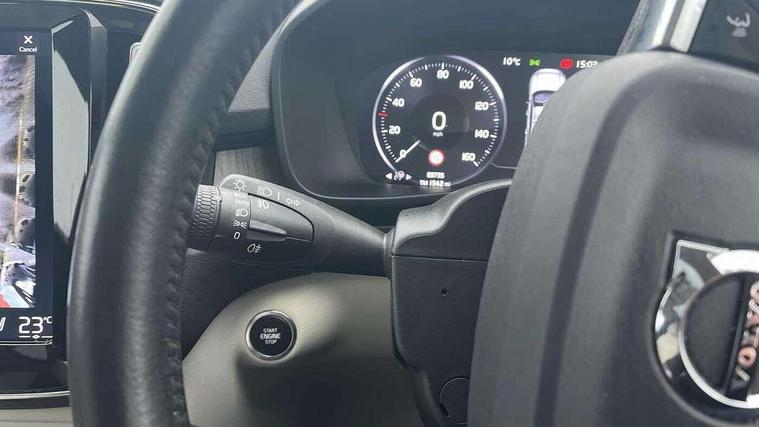12.3" Active TFT crystal driver's instrument display, 9" centre console portrait touch screen, Adjustable steering wheel force, Bluetooth hands free telephone kit, Drive mode selector, Lane keep assist with driver alert control, Oncoming Lane Mitigation, Sensus navigation with European mapping and traffic information, Speed limiter, Speed sensitive steering, Voice control system, Volvo on call, DAB Digital radio, Steering wheel mounted remote controls, Active bending headlights, Adaptive brake lights with high level LED brake lights, Auto dimming interior mirror, Automatic headlamp levelling, Body colour door mirrors, Chrome window surround, Colour coordinated auto folding and heated power door mirrors, Dual exhaust pipes, Electrically adjustable and heated door mirrors, Embossed rear side roof pillar, Front and rear electric windows, Front tread plates, Headlamp cleaning system, Heated front windscreen, Heated washer nozzles, High gloss black grille with chrome inserts, Home safe and approach lighting, LED front fog lights with static cornering light function, LED Headlights + Active high beam incorporating daytime running lights, Matt silver front and rear skid plate, Rain sensor windscreen wipers, Rear wiper, Roof antenna, Roof spoiler, Silver roof rails, Visible VIN plate, 12V socket in front tunnel console and luggage compartment, 3 spoke leather steering wheel with chrome trim, 60/40 split folding rear seat, A-pillar parking ticket holder, Ambient front door and instrumental panel lighting, Bright metal luggage threshold, Centre console cupholders and storage, Driver seat height/tilt/lumbar adjust, Driver's side lower dashboard credit card storage compartment, Extended front seat cushions, Front door pocket and front cupholder illumination, Front footwell illumination, Front tunnel net pocket and integrated waste bin, Glovebox bag hook, Heated front seats, Height/reach adjustable steering column, High gloss centre tunnel deco, Illuminated luggage compartment, Illuminated tailgate, Illuminated vanity mirrors + ticket holder, Isofix attachments on outer rear seats, Leather coloured key integrated remote, Leather faced upholstery, Load protection net, Lockable/illuminated glovebox, Luxury floor mats, Multicolour theatre lights, Orrefors Crystal gear lever knob, Passenger seat adjustable for lumbar support, Power driver seat with memory + exterior mirrors memory, Power passenger seat, Rear armrest / integral cup holders / storage tray, Rear reading and courtesy lights, Underfloor stowage compartment, 3x3 point rear seatbelts, City safety, Drivers knee airbag, DSTC-Dynamic Stability and Traction Control, Dual stage driver/passenger airbags, Electronic parking brake with auto hold, Fasten seatbelt reminder, First aid kit, Hill descent control, Hill start assist, Inflatable curtain, Passenger airbag cut-off device, Road sign information display, Run off Road Mitigation, Run off Road Protection, Seatbelt reminder and pretensioners, SIPS (Side Impact Protection System), SIPS airbags, Slippery road and hazard light alert, Tyre pressure monitoring system, Vehicle deceleration control with Anti-lock Brake System, Electronic Brake Distribution and Emergency Brake Assist, Warning triangle, WHIPS whiplash protection system - front, Anti-theft alarm including immobiliser/volume sensor + level sensor, Fuel flap with deadlocking system, Key integrated remote control central locking, Locking wheel nuts, Private locking for tailgate,