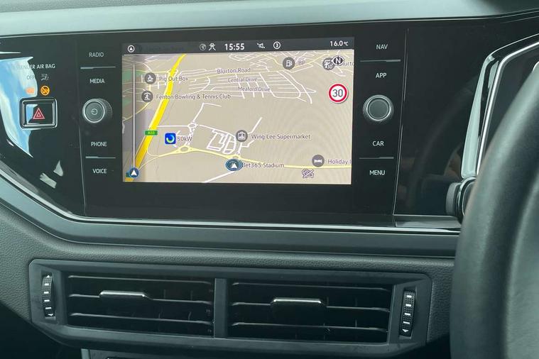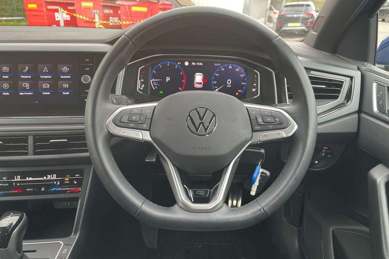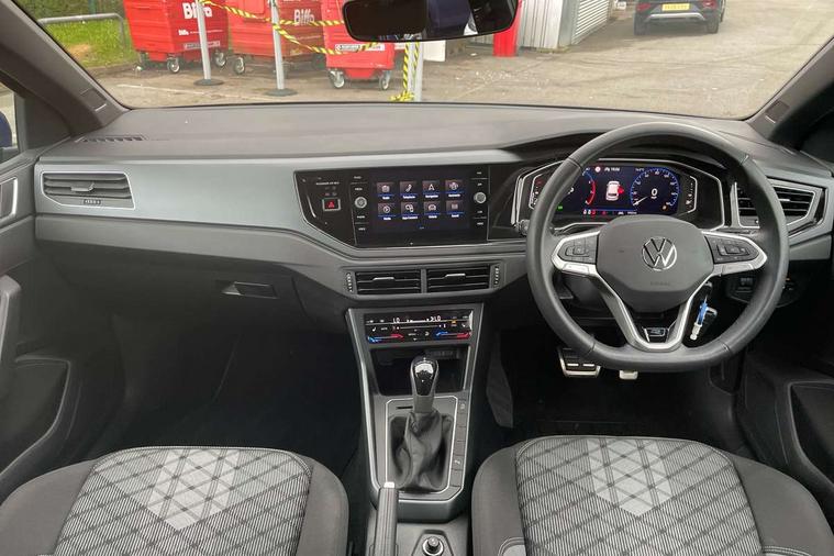 Adaptive cruise control with follow-to-stop and speed limiter, Advanced driver attention and drowsiness monitor, Bluetooth mobile phone interface, Digital Cockpit Pro with 10.25" Display, Dynamic road sign display, Emergency call service, Multifunction camera, Power assisted speed sensitive steering, Preparation for We connect and We connect plus, Speedo and rev counter, electronic odometer, trip, service interval display and fuel gauge, Standard rear axle, Travel Assist - Lane keeping system and traffic jam assist, Travel assist including emergency assist, Trip computer, Warning signal and warning light for front and rear seatbelts not fastened, Washer fluid level indicator, Wireless app connect, Front wheel drive, Rear shock absorpion, Start-stop system with battery regeneration (recuperation - energy recovery during braking), DAB Digital radio, Diversity antenna for FM reception, Front and rear 6 speakers, Body colour bumpers, Body colour door handles, Electric front windows, Front scuff plates with R-Line logo, Heat insulating glass windscreen, Power folding adjustable/heated exterior mirrors and front passenger exterior mirror lowering function, Rear electric windows, Rear fog light, Rear side wing doors, Rear windscreen washer and wiper with interval delay, Third brake light, 12V power socket in centre console, 2 USB-C ports in the front, 2 USB-C charging sockets on the center console in the rear, 3 rear head restraints, 60/40 split folding rear seat and rear seat bench not split, Air care climatronic air conditoning system with active combination filter and 2-zone temperature control, Black roof lining, Carpet mats, front and rear, Chrome plated radiator grille inserts, air vent surrounds and light switch surrounds, Door and side trim panel, Driver and front passenger seat height adjustment, Driver/passenger sunvisors with illuminated vanity mirrors, Front centre armrest, Front footwell illumination, Front seat backrest storage pockets, Front sports comfort seats, Handbrake lever handle in leather, Headliner in recycled material, Isofix child seat preparation easy-fit (for two outer rear seats, and front passenger seat) compatible with I-size, Karoso artvelours cloth upholstery, Leather trimmed gear knob, LED interior light with switch off delay and dimmer, 2 reading lights front and rear, Luggage compartment cover, Luggage compartment floor, Luggage compartment lighting, Lumbar adjustment for front seats, Single front passenger seat, Stainless steel pedals, Standard pedal cluster, Three spoke leather wrapped multifunction steering wheel with shifting paddles, Light and sight pack - Polo R-Line/Black Edition, 3 point height adj front seatbelts + pretensioners, 3x3 point rear seatbelts, ABS, Driver and front passenger airbag with front passenger airbag deactivation, Drivers and front passengers safety optimised head restraints, ESC (Electronic stability control) + EDL (Electronic Differntial lock) and ASR (Traction control), Extended and predictive pedestrian/ cyclist protection, Front curtain and side airbags with center airbag, Front/rear disc brakes, Hill hold control, Manual child lock in rear doors, Single tone horn, Tyre pressure loss indicator, Alarm with interior protection, Anti-theft alarm system with interior monitoring, backup horn, and towing protection, Anti-theft wheel bolts, Electronic engine immobiliser, Chrome applications on rotary light, mirror adjustment, window regulator switches, outlet with frame in black, Dark grey anodised matt decorative inserts in dash and front door panels, 16" Coventry alloy wheels, Low rolling resistance tyres,