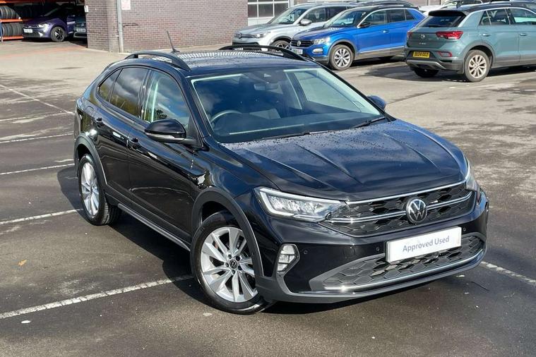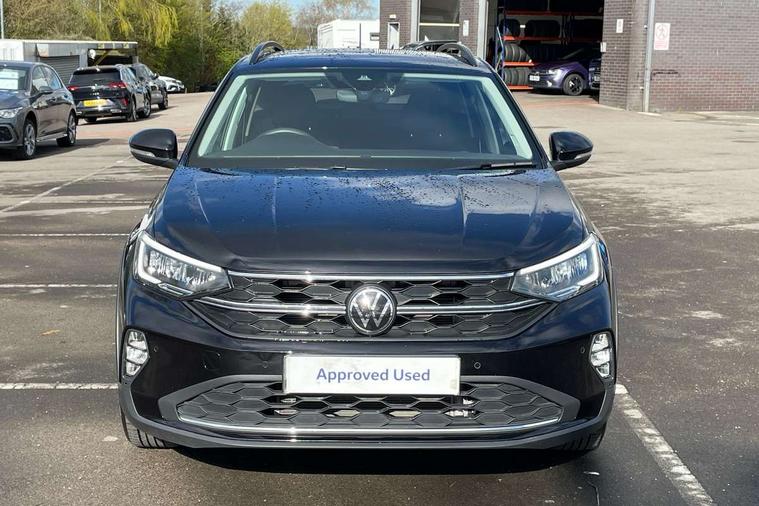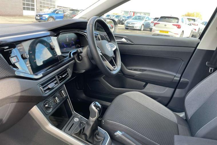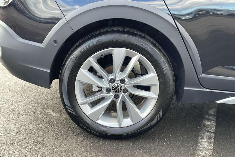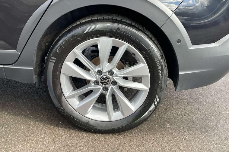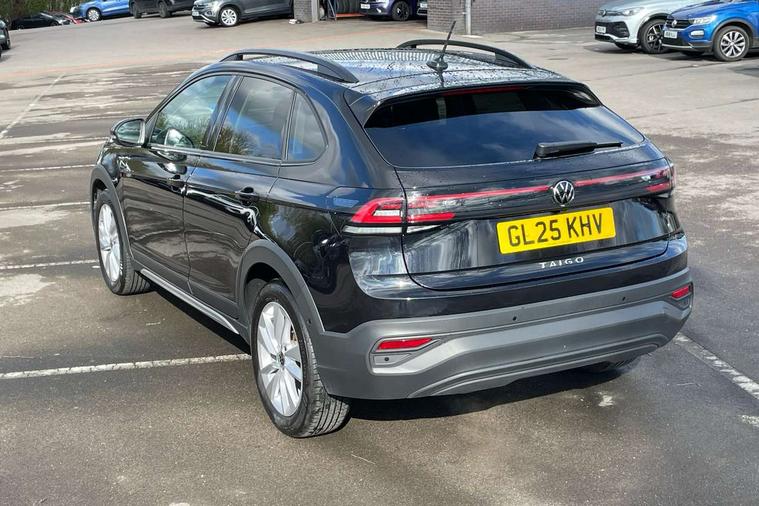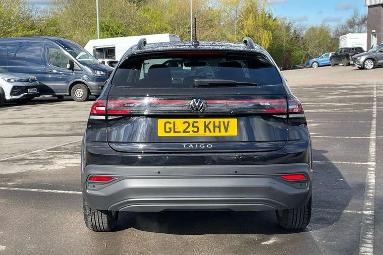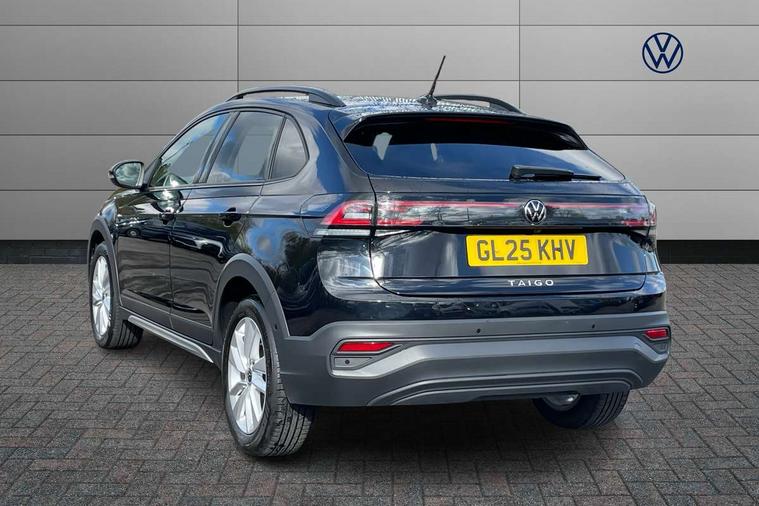 8" Digital cockpit basic display, Advanced driver attention and drowsiness monitor, Dynamic road sign display, e-Call (emergency call), Power Steering, Predictive adaptive cruise control, Rear view camera, Travel assist including emergency assist, Washer fluid level indicator, Wireless Charging including Bluetooth, Start-stop system with battery regeneration (recuperation - energy recovery during braking), Digital radio reception (DAB+), WeConnect plus, Ambient lighting with logo projection, Aspherical driver's exterior mirror, Body coloured bumpers, Body coloured exterior mirror housings and door handles, Electric windows, External USB type C socket and charging sockets, Heat insulating glass windscreen, LED rear combination lamp, LED third brake light, Left convex exterior mirror, Power folding adjustable/heated exterior mirrors and front passenger exterior mirror lowering function, Rear fog light on one side, reversing light on both sides, Rear side wing doors, Rear wash/wipe with intermittent wipe setting, Side windows in heat-insulating glass, from B-pillar and rear window dark tinted, 'Slash/ Austin' Cloth upholstery, 12V socket in centre console, 2 front reading lights, 3 rear head restraints, 3 seat bench in 2nd row, Black carpets, Ceramique headliner, Child seat anchor for child seat system i-Size, 2x top tether and child seat anchor in front on front passenger side, Door and side trim panels in titan black, Driver and front passenger seat height adjustment, Front centre armrest, Handbrake lever handle in leather, Height and reach adjustable steering wheel, Leather trimmed gear knob, Leather wrapped multifunction steering wheel, Luggage compartment floor, Luggage compartment light, Lumbar support for driver's and front passengers seat, Seat covers in titanium black, Single front passenger seat, Split folding backrest with centre armrest and unsplit rear seat bench, Storage compartment under front seats, Sun visors with illuminated vanity mirrors, Titanium black instrument panel, Chrome Package - Taigo, Drivers assistance package - Taigo, Light and sight pack - Taigo, 2 x 3-point seatbelts/outer rear seats with ECE label, 3-point seat belts in front with pretensioner and height adjustment, 3-point seatbelt for centre rear seat, Driver and front passenger airbag with front passenger airbag deactivation, Driver and front passenger safety-optimised head restraints, Electronic stability control, Extended and predictive pedestrian/ cyclist protection, Front and rear disc brakes, Front curtain and side airbags with center airbag, Hill start assist, Manual rear child locks, Single tone horn, Tyre pressure loss indicator, Anti-theft alarm system with interior monitoring, backup horn, and towing protection, Keyless locking and starting system keyless access with safelock, Black (slush) Dashboard, Lava stone black gloss/matt decorative inserts in dash and front door panels, Low rolling resistance tyres,