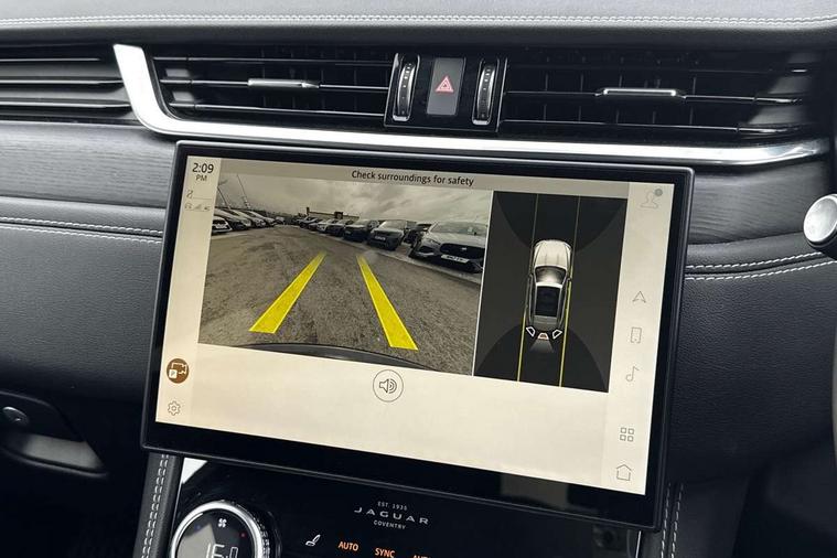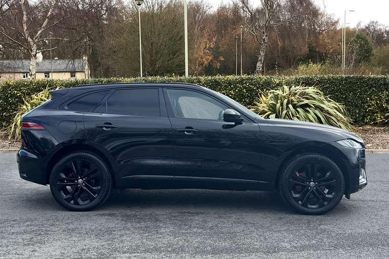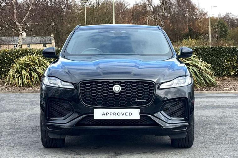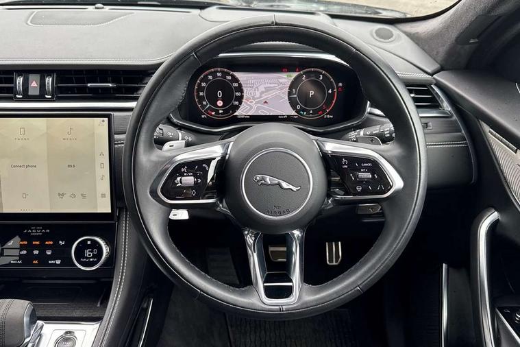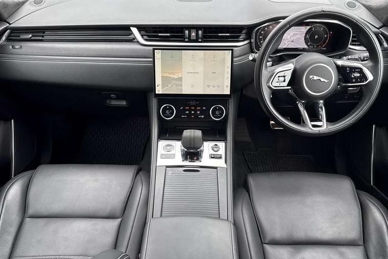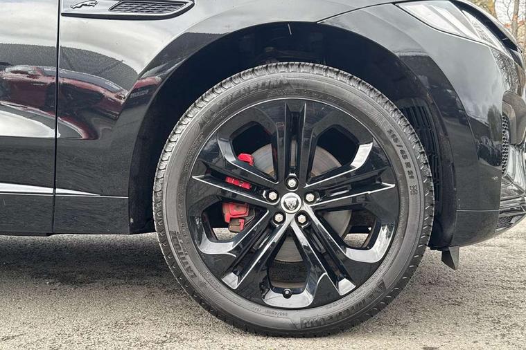 11.4" touchscreen, Adaptive cruise control with steering assist, Android Auto, Apple car play, Blind spot assist, Bluetooth connectivity, Clear exit monitor, Driver alert system, Driver condition monitor, eCall emergency call system, Eco driving style assistant, Electric power assisted steering, InControl remote, Interactive driver display digital with 12" TFT display, Jaguar Toggle shift selector, Lane departure warning system, Lane keep assist, Outside temperature gauge, Personalisation profile management, Pivi pro connected navigation system with app interface and media storage, Pro services and wifi hotspot, Push button starter, Rear collision monitor, Rear traffic monitor, Service interval indicator, Speed proportional steering, Start up sequence with movement in dials and lighting, Traffic sign recognition with adaptive speed limiter, Trip computer, Voice control system, Wireless device charging, 8 speed automatic transmission, Adaptive dynamics, All terrain progress control, All Wheel Drive (AWD), Configurable dynamics, Open differential with torque vectoring by braking, AM/FM radio, Bluetooth streaming, DAB Radio (Digital Audio Broadcasting), Dynamic volume control, InControl apps, InControl protect, iPod integration, 3 flash lane change indicators, AHBA and animated directional indicators, Approach Illumination, Auto dimming rear view mirror, Automatic headlights, Electric heated/power fold memory door mirrors with approach lights and auto dimming driver side, Electric windows with one touch open/close and anti trap, F-Pace and R Dynamic badge, Green tinted glass, Heated front windscreen + heated washer jets, Heated rear window with timer, Illuminated metal tread plates with Jaguar script, Jaguar script and leaper, LED High level third brake light, LED tail lights, Metal load space scuff plates, Non acoustic front windscreen, Privacy glass (rear side windows and rear screen), R Dynamic badge on side door, Rain sensor windscreen wipers, Rear fog lights, Rear metal tread plates, Rear side wing doors, Rear wiper, Trailer stability assist, Variable front intermittent wipers, 12V power point front, 3 rear headrests, 3 seat bench in 2nd row, Additional power sockets - Two additional USB sockets in rear centre console and one 12V socket in trunk, Air distribution speed, Bright metal foot pedals, Centre armrest console, Centre console with side storage, Configurable cabin lighting, Deletion loadspace storage rails, Door sill tread plates, Ebony suede cloth headlining, Electrically adjustable steering column, Fold flat front seats, Front centre armrest with storage compartment, Front door storage space, Glovebox finisher with jaguar script, Heated steering wheel, Hooks in loadspace, Illuminated glovebox, Interior front door handles with separate locking switches, ISOFIX on outer rear seats, Jaguar sense, Leather steering wheel, Luggage tie downs in loadspace, Mist sensing, Multifunction steering wheel, Overhead lighting console, Overhead stowage for sunglasses, Passive front head restraints, Premium carpet mats, Rear air vents, Rear armrest with twin cupholders, Rear centre headrest, Rear door storage space, Reversible boot floor, Satin chrome gearshift paddles, Shopping bag hook, Single front passenger seat, Sunvisors with illuminated vanity mirrors, Twin front cupholders with cover, Online Pack with data plan - F-Pace, 355mm front brakes and 325mm rear brakes, 3x3 point rear seatbelts, ABS, All surface progress control (ASPC), Brake pad warning light, DSC - Dynamic Stability Control, Electric parking brake (EPB), Emergency brake assist, Front airbags with passenger seat occupant detector, Front and rear seatbelt reminder, Front side airbags, Full length side window curtain airbag, Hill launch assist, Power operated child locks, Traction control, Tyre pressure monitoring system, Immobiliser, Keyless entry, Keyless Start, Locking wheel nuts, Perimeter alarm, Remote central locking, Valet mode,