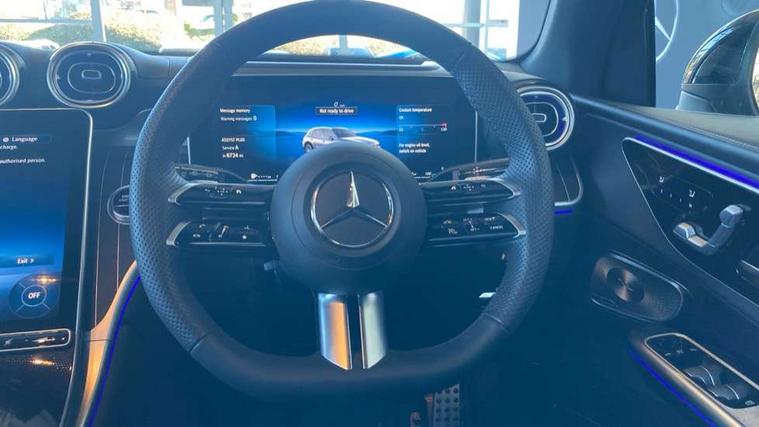 11.9" high resolution multimedia colour display, 12.3" Digital individually configurable instrument display, Acoustic presence indicator, Active lane keeping assist, Active park assist with PARKTRONIC/360 degree camera - Detects spaces/assists with steering, accelerating/braking when reversing into a parking space, Attention assist, Blind spot assist, Bluetooth interface for hands free telephone, Collision prevention assist plus, Direct steer speed sensitive steering, DYNAMIC SELECT with a choice of driving modes (ECO, Comfort, Sport and Individual, Offroad)), eCall emergency call system, Fingerprint scanner, Fluorescent jacket for driver, Hard disc navigation, Head up Display, Instrument display in miles with English lettering, MBUX augmented reality for navigation, MBUX navigation premium, MBUX voice control activated by keywords "Hey Mercedes", Mercedes me connect, Multi function trip computer, Outside temperature display, Remote and charging services plus, Remote boot release, Road sign recognition system, Service indicator (ASSYST), Smartphone integration with Apple CarPlay/Android Auto, Status display for rear seat belts in instrument cluster, Traffic sign assist, Wireless charging system for mobile devices in the front, 49 litre fuel tank, 4MATIC four wheel drive - variable all wheel drive system designed for all weather traction, 7.4 kW monophase on board charger, 9G TRONIC 9 speed automatic transmission with steering column gear selector and DIRECT SELECT steering wheel paddles, Alternating current charging system (AC charging), Charging cable for domestic socket (mode 2) - 5m, DC Charging system, Mode 3 charging cable for wallbox and public charging station with 5 m, straight, Petrol Particulate Filter (PPF), Residual engine heat utilisation, Burmester 3D surround sound system - 13 speakers and a 9 channel amplifier with total output of 590 watts, DAB digital radio tuner, MBUX extended functions, Pre installation for Mercedes Benz Link, Sound personalisation, Adaptive brake lights, Adaptive high beam assist plus, Aluminium look running boards with rubber studs, AMG bodystyling front apron, rear apron and side skirts, AMG Line exterior, Auto headlights, Black roof rails, Body colour bumpers, Body colour door mirrors, Digital light LED headlights, Electric panoramic glass sunroof, Electrically adjustable door mirrors, EQ Hybrid badging on front wings, Front and rear electric windows, Headlight washers, Heat and noise insulating acoustic glass, Heat insulating dark tinted glass, Heated rear window, High level LED brake light, Integrated LED daytime running lights, LED indicator lights, LED rear fog lights, LED tail lamp, MG diffuser look rear apron with insert in chrome, Motor way mode function and locator lighting, Radiator grille with Mercedes Benz pattern and integreated Mercedes star and louvre in dark grey matt with chrome inlay and black frame, Rain sensor windscreen wipers, Range adjustable headlights, Rear side wing doors, Rear wiper, Transparent Bonnet, Two chrome plated tailpipe trim elements, Variable front intermittent wipers, Welcome and follow-me home light functionality, Wheel arch liners in the vehicle colour, 3 seat bench in 2nd row, 40:20:40 split folding rear seats, Ambient lighting premium - Illuminated light lines on the centre console flanks, instrument panel, doors and in the air vents, additional dimming zone, AMG brushed stainless steel sports pedals with black rubber studs, AMG line interior, Artico man-made leather upholstery, Automatic child seat recognition sensor, Black fabric roof lining, Black floor mats with AMG lettering, Climatised front seats - Heated and cooled, Comfort seats, Double cup holder in centre console, Electrically height/reach adjustable steering column, Front centre armrest with stowage compartment, Front head restraints, Heated steering wheel, Illuminated and lockable glove compartment, Illuminated door sill panels with Mercedes Benz lettering, Instrument panel and beltlines in ARTICO manmade leather in nappa look, Interior ambient lighting - 64 colours, 10 colour themes with indirect illumination of the dashboard/door trims, 5 brightness levels/3 dimming zones, Multicontour front seat with massage function, Multifunctional sports steering wheel in nappa leather, galvanised gearshift paddles, audio and onboard setting controls, Partition net, Rear centre headrest, Rear head restraints, Rear top tether child seat ISOFIX attachment, Removable load compartment cover, Single front passenger seat, Sun visors, THERMATIC 2 zone automatic climate control, Boot comfort package - GLC, Easy tailgate pack - GLC, Exterior chrome package - GLC, Interior chrome package - GLC, Interior lighting pack - GLC, Keyless-Go comfort package - GLC, Memory pack - GLC, Mirror pack - GLC, Night package - GLC Urban Edition, Stowage space package - GLC, USB Plus Pack - GLC, 3 rear 3 point seatbelts, Active bonnet, Adaptive brake system with HOLD function and brake drying in the wet, Anti-lock braking system (ABS), ASR traction control, Automatic front passenger airbag deactivation, Black seat belts, Brake calipers with Mercedes-Benz lettering + perforated brake discs, Brake calipers with Mercedes-Benz lettering + perforated front brake discs, Child proof door locks, Dual-stage airbags - driver and front passenger, driver knee bag and window bags for driver, front passenger and rear passengers, Electronic parking brake, Electronic stability programme (ESP) with curve dynamic assist and cross wind assist, Front and rear seatbelt reminder, Front passenger seat occupancy sensor, Front seatbelt pretensioners, Hill start assist, Tyre pressure monitoring system, Warning triangle and first aid kit, Anti theft alarm system with immobiliser and interior protection, Automatic door locking, Guard 360 degree vehicle protection plus, Increased anti-theft protection, Interior protection/immobiliser, Remote central locking, Black open pore aluminium lines wood trim with centr