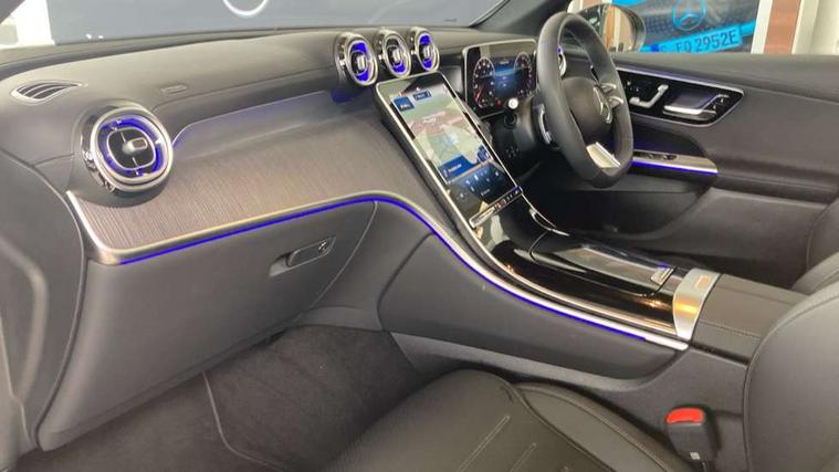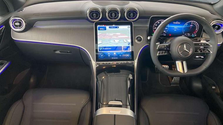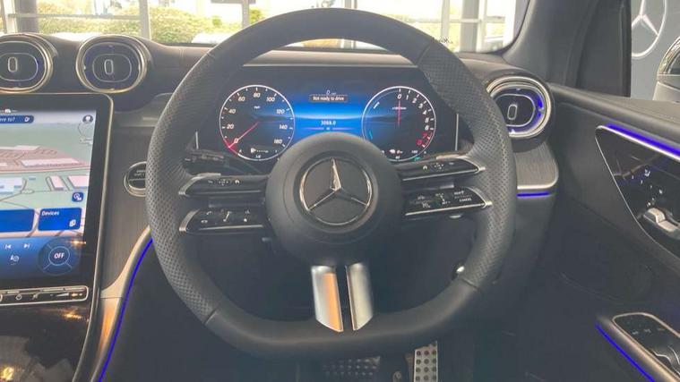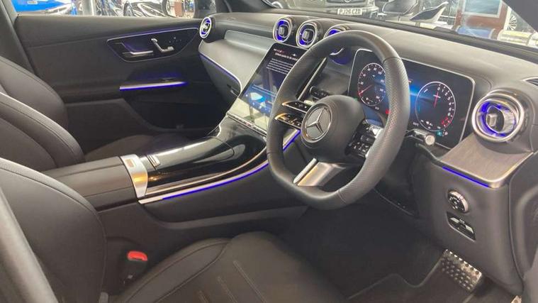 11.9" high resolution multimedia colour display, 12.3" Digital individually configurable instrument display, Acoustic presence indicator, Active lane keeping assist, Attention assist, Blind spot assist, Bluetooth interface for hands free telephone, Collision prevention assist plus, Cruise control with speedtronic variable speed limiter, Dashcam - front camera for video recording, Direct steer speed sensitive steering, DYNAMIC SELECT with a choice of driving modes (ECO, Comfort, Sport, Sport+ and Individual), eCall emergency call system, ECO start/stop function, Fingerprint scanner, Fluorescent jacket for driver, Hard disc navigation, Instrument display in miles with English lettering, MBUX augmented reality for navigation, MBUX navigation premium, MBUX voice control activated by keywords "Hey Mercedes", Mercedes me connect, Outside temperature display, Remote and charging services plus, Remote boot release, Road sign recognition system, Service indicator (ASSYST), Smartphone integration, Status display for rear seat belts in instrument cluster, Traffic sign assist, Trip computer, Wireless charging, 1 x type 2 and 3 phase 4m straight wallbox cable, 49 litre fuel tank, 4MATIC permanent four wheel drive, 7.4 kW monophase on board charger, 9G TRONIC plus automatic transmission, Alternating current charging system (AC charging), Comfort suspension, Petrol Particulate Filter (PPF), Self levelling suspension, DAB digital radio tuner, MBUX extended functions, Mercedes benz sound system, Pre installation for Mercedes Benz Link, Adaptive brake lights, Adaptive high beam assist plus, Aluminium look running boards with rubber studs, Aluminium roof rails, AMG bodystyling front apron, rear apron and side skirts, AMG Line exterior, Auto headlights, Body colour bumpers, Body colour door mirrors, Digital light LED headlights, Electrically adjustable door mirrors, Front and rear electric windows, Headlight washers, Heat insulating dark tinted glass, Heated rear window, High level LED brake light, Integrated LED daytime running lights, LED indicator lights, LED rear fog lights, LED tail lamp, Motor way mode function and locator lighting, Noise acoustic glass, Radiator grille with Mercedes Benz pattern and integreated Mercedes star and louvre in dark grey matt with chrome inlay and black frame, Rain sensor windscreen wipers, Range adjustable headlights, Rear side wing doors, Rear wiper, Transparent Bonnet, Two chrome plated tailpipe trim elements, Variable front intermittent wipers, Welcome and follow-me home light functionality, Wider wheel arch for AMG wheels, 3 seat bench in 2nd row, 40:20:40 split folding rear seats, Ambient lighting premium, AMG line interior, Artico man-made leather upholstery, Audio and onboard settings control on multifunction steering wheel, Automatic child seat recognition sensor, Black fabric roof lining, Black floor mats with AMG lettering, Double cup holder in centre console, Easy-pack removable load compartment cover, Electrically height/reach adjustable steering column, Front centre armrest with stowage compartment, Front head restraints, Galvanised steering wheel gearshift paddles, Heated front seats, Illuminated door sill panels with Mercedes Benz lettering, Illuminated glove compartment, Instrument panel and beltlines in ARTICO manmade leather in nappa look, Multifunction sports steering wheel in nappa leather, Rear centre headrest, Rear head restraints, Rear top tether child seat ISOFIX attachment, Single front passenger seat, Sports pedals with stainless steel surfaces and rubber studs, Sports seats, Sun visors, THERMATIC 2 zone automatic climate control, Anti theft protection package - GLC, Boot comfort package - GLC, Exterior chrome package - GLC, Interior chrome package - GLC, Interior lighting pack - GLC, Keyless-Go comfort package - GLC, Memory pack - GLC, Mirror pack - GLC, Parking package with 360 degree camera - GLC, Seat comfort package - GLC, Stowage space package - GLC 300e/300de, USB Plus Pack - GLC, 3 rear 3 point seatbelts, Active braking assist, Anti-lock braking system (ABS), ASR traction control, Automatic front passenger airbag deactivation, Black seat belts, Brake calipers with Mercedes-Benz lettering + perforated brake discs, Child proof door locks, Dual-stage airbags - driver and front passenger, driver knee bag and window bags for driver, front passenger and rear passengers, Electronic parking brake, Electronic stability programme (ESP) with curve dynamic assist and cross wind assist, Front and rear seatbelt reminder, Front passenger seat occupancy sensor, Front seatbelt pretensioners, Hill start assist, Tyre pressure monitoring system, Warning triangle and first aid kit, Automatic door locking, Guard 360 degree vehicle protection plus, Interior protection/immobiliser, Remote central locking, Centre console in metal structure finish, Metal structure trim, 20" AMG 5 spoke aerodynamically optimised light alloy wheels in painted black with high sheen finish, Summer tyres, TIREFIT with tyre inflation compressor,