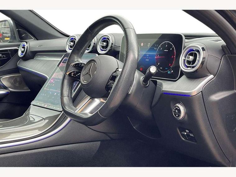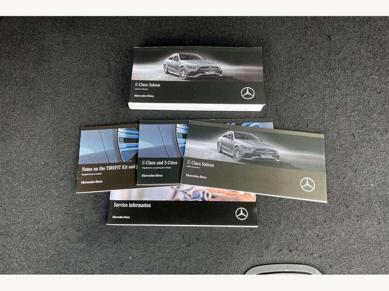 11.9" high resolution multimedia colour display, 12.3" digital instrument cluster display, Active blind spot assist, Active brake assist plus, Active lane keeping assist, AMG DYNAMIC SELECT with a choice of driving modes (Slippery, Comfort, Sport, Sport+, Individual), Attention assist, Cruise control with speedtronic variable speed limiter, E-call, Extended MBUX functions, Finger print sensor, Fluorescent jacket for driver, Head up Display, MBUX augmented reality for navigation, MBUX navigation premium, MBUX voice control activated by keywords "Hey Mercedes", Mercedes connect me, Mercedes me remote services, Outside temperature gauge, Pre-installation for digital key transfer, Remote boot release, Service indicator (ASSYST), Smartphone integration, Sports direct steer speed sensitive steering, Status display for rear seat belts in instrument cluster, 66l fuel tank with increased capacity, 9G TRONIC 9 speed automatic transmission, Agility control sports suspension and lowered by 15 mm, Diesel particulate filter, Burmester surround sound system, DAB Digital radio, MBUX multimedia system, Adaptive brake lights, Adaptive high beam assist plus, AMG body styling front apron, rear apron and side skirts, AMG front bumper with sporty air intakes and chrome elements, AMG rear bumper with high gloss chrome elements, AMG side skirts in vehicle colour, B-pillar trim in glossy black, Body coloured bumpers, Body coloured door mirrors, Chrome beltline trim, Daytime running lights, Digital light LED headlamps, Electric panoramic sliding sunroof, Electric windows with one touch opening/closing and obstruction sensors, Electrically adjustable and heated door mirrors, Green tinted glass, LED Indicators, LED tail lights, LED third brake light, Powerdomes on bonnet, Privacy glass, Radiator diamond grille with integrated Mercedes Benz star and louvre silver with chrome pins, Radio aerial integrated into rear window, Rain sensor with automatic windscreen wiper activation, Rear boot, Rear side wing doors, Two visible exhaust pipes integrated into rear bumper, 3 seat bench in 2nd row, 3 spoke flattened bottom AMG multifunction steering wheel in black nappa leather with chrome inserts and perforated leather in grip area, 40:20:40 split folding rear bench seat, AMG sports seats, Artico man-made leather upholstery, Audio and onboard settings control on multifunction steering wheel, Auto Mercedes-Benz child seat recognition sensor, Black air vents with silver chrome elements, Black floor mats with AMG lettering, Black roof liner, Door trim elements high gloss black with silver chrome surroundings and switches, Double cupholder in centre console, Electrically height/reach adjustable steering column, Folding rear seat backrest, Front and rear head restraints, Front centre armrest with storage compartment, Gearshift paddles on steering wheel, Heated front seats, Illuminated door sills with Mercedes Benz lettering, Illuminated glove compartment stowage, Interior lighting - 64 colour Ambient lighting, Overhead control unit in high gloss black, Rear top tether child seat ISOFIX attachment, Single front passenger seat, Sports pedals with stainless steel surfaces and rubber studs, Sunvisors with illuminated vanity mirrors, Thermotronic automatic 4 zone climate control, Interior lighting package - C Class, Memory package - C Class, Mirror pack - C Class, Parking package with 360 degree camera - C Class, Seat comfort pack - C Class, Stowage space pack - C Class, USB package - C Class, 3 rear 3 point seatbelts, Active bonnet pedestrian safety measure which detects an impact and raises bonnet, Adaptive brake system with HOLD function and brake drying in the wet, Anti-lock braking system (ABS), Black seat belts, Brake calipers with Mercedes-Benz lettering + perforated front brake discs, Child proof door locks, Drivers knee airbag, Drivers pelvis airbag, Dual stage driver/passenger airbags, Electric parking brake, Electronic Stability Programme (ESP), Front centre airbag between driver and front passenger seats, Front side airbags, Larger brake discs on front axle, Rear seatbelt warning indicator, Sports braking system with perforated front disc brakes, Tyre pressure monitoring system, Warning triangle and first aid kit, Window airbags for driver, front passenger and rear passenger, Central locking with interior switch, automatic locking and crash sensor with emergency opening function, Chrome surround in electric key, Keyless Go, URBAN GUARD vehicle protection (Thatcham Category 1) consisting of break-in, anti-theft alarm system (ATA), interior monitoring and tow-away protection, Artico man-made leather dashboard with contrast stitching, Centre console trim in anthracite line structure lime wood, 19" AMG 5 twin spoke light alloy wheels aerodynamically optimised painted in black with high sheen finish, Summer tyres, TIREFIT with tyre inflation compressor,