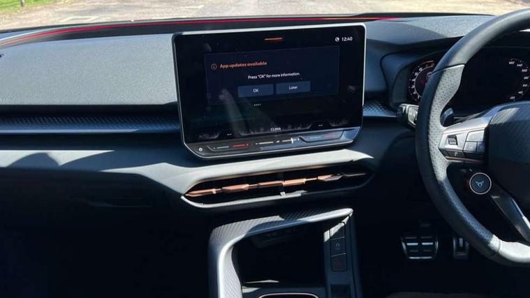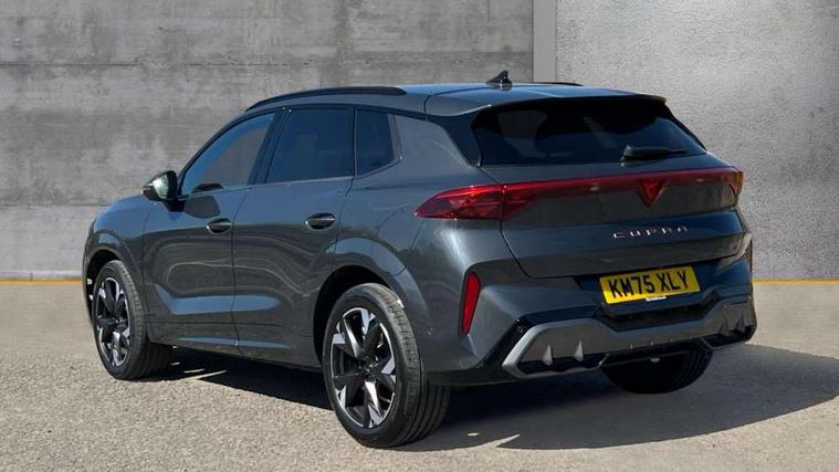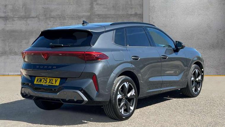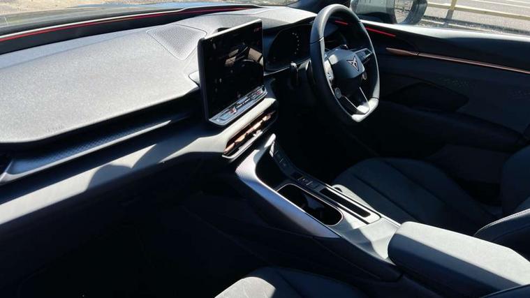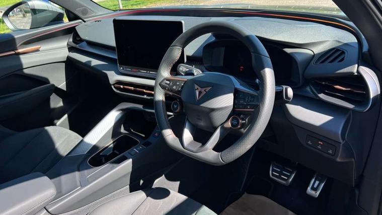 10.25" digital cockpit and configurable dashboard, Adaptive cruise control with follow-to-stop and speed limiter, Advanced driver alert system, Advanced lane assist with semi-automatic vehicle control in a medical emergency and traffic jam assist, Driving profile selection and conventional shock absorber, Dynamic road sign display, E-call, Electric tailgate with virtual pedal, Emergency steering support with turn assist, Front and rear parking sensors, Front assist (Forward collision warning with automatic braking) with multifunction camera and front cross traffic assist, Head up Display, Intelligent park assist, Media system with Nav - 12.9" touch display, voice control, full link phone (wired/wireless), DAB and Steering wheel mounted controls, Rear traffic assist, Side and exit assist, Speed sensitive power steering, Start/stop system with regenerative braking, Top view camera (front camera, rear camera, 2 side cameras), Wireless phone charger, Auto dimming rear view mirror, Black roof rails, CUPRA 3D rear lights with ceremony & swiping indicator and illuminated logo, Dark tinted rear windows, Daytime running lights with automatic headlight control and Coming and Leaving home function, Door mirrors with memory function and lowing function on passenger mirror, Dynamic headlight range control, Electric front/rear windows, Electrically adjustable, heated and folding door mirrors, Front fog lamps with cornering function, Heat reflecting windscreen, High beam assist, LED headlamps with signature "CUPRA LED", Rain sensing wipers, Rear fog light on one side, back up light on both sides, Rear side wing doors, Rear wash/wipe, Third brake light, Welcome lights (within exterior mirror housing), 3 seat bench in 2nd row, Black roof lining, Cupra sports pedals, Dinamica cloth upholstery, Driver seat memory function, Electrically adjustable front seats including lumbar support, Four x USB Type C ports (2 in front and 2 in rear), Front and rear head restraints, Front and rear reading lights X 4, Front centre armrest, Heated front seats, Heated leather wrapped multi function sports steering wheel with tiptronic, Illuminated interior front door sills, Isofix, Operating voltage 12V, Single front passenger seat, Smart wraparound interior lighting, Sunvisors with illuminated mirror, Three zone climate control with control panel in rear, Unsplit rear seat bench, split folding backrest, with centre armrest, Variable luggage/load compartment floor, 3 point seatbelts in front with pretensioner and electric height adjustment, 3 point seatbelts on all rear seats, Brake control system - ESC and brake booster, Child proof door locks, Driver and front passenger airbags, Electronic parking brake, Front and rear disc brakes, Front interaction airbag, Front passenger airbag deactivation switch, Front side airbags with curtain airbags, Pre-crash front and rear seat belt tensioner, window closure and hazard lights, Tyre pressure monitoring system, Visual and acoustic seat belt reminder, electric contact in front and rear, Anti theft alarm, Keyless locking and starting system with keyless access, Locking wheel bolts, Black decorative trims, Chrome interior detailing, 19" Spectrum exclusive machine alloy wheels, Tool kit,