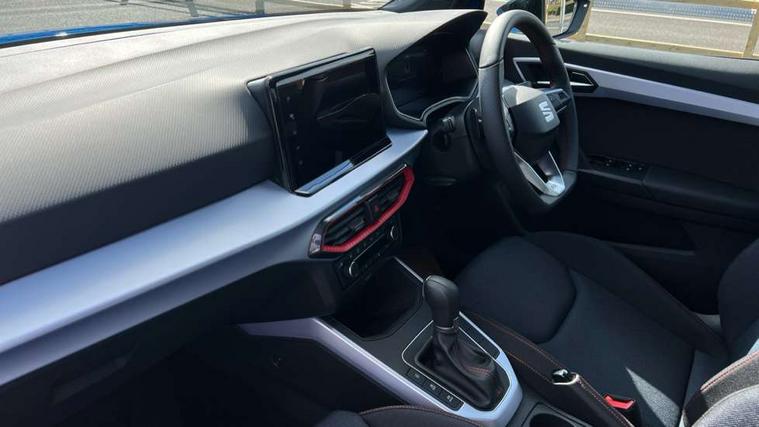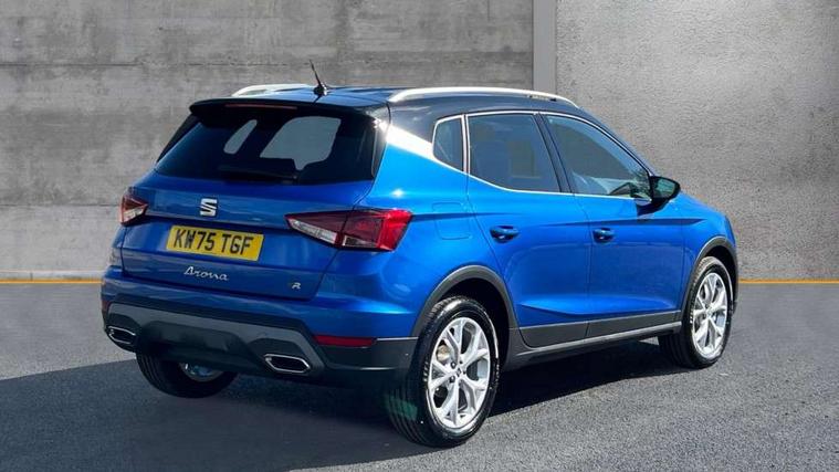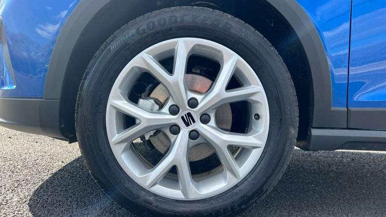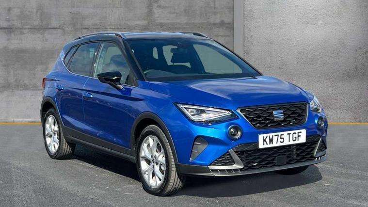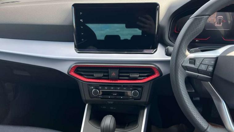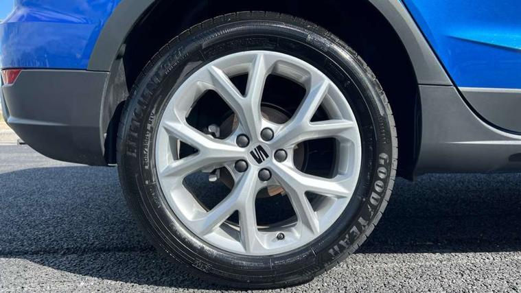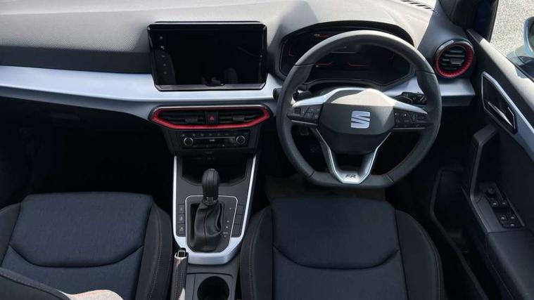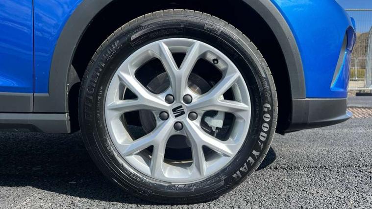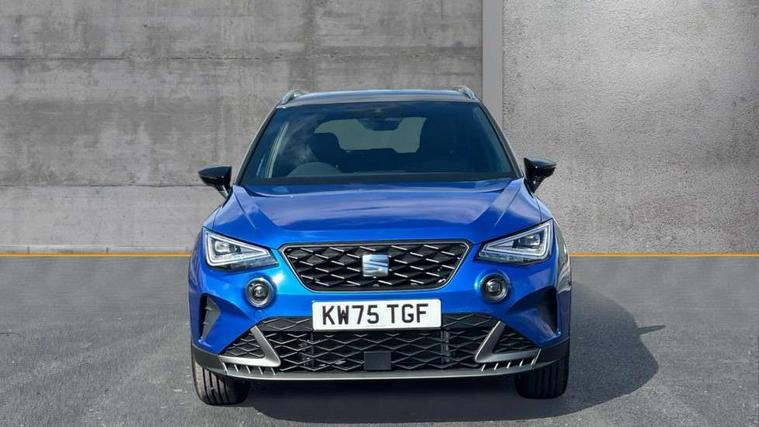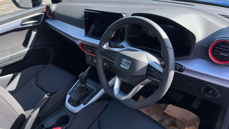 'Lights On' Reminder warning buzzer, 8" Digital cockpit, Digital clock, E-call, Electric speed sensitive power steering, Full link smartphone integration with mirror link, wireless apple carplay, Google android auto + USB Type C cable for apple and android devices, Lane keeping system, Low fuel warning light, Outside temperature display, RPM counter, SEAT Drive profile - Four different models normal-sport-eco-individual, steering response, throttle response and gear shifts mode, Trip computer, Wireless phone charger, 9.2" colour touchscreen with navigation system, voice control and USB port (type c), Bluetooth interface for hands free and audio streaming, DAB digital radio and AM/FM radio, Steering wheel mounted audio controls, Anti theft roof antenna, Auto dimming interior rear view mirror, Automatic activation of hazard warning lights, Body coloured bumpers, Body coloured door handle inserts, Chrome roof rails and window surrounds, Dark tinted rear windows, Electric front/rear windows, Electrically adjustable, heated and folding door mirrors, Front fog lights with cornering function and rear fog light, FULL LED automatic headlights with dynamic headlight range control, coming and leaving home, LED daytime running lights, LED rear tail lights and licence plate lights, Protective side mouldings, Rain sensing wipers, Rear side wing doors, Rear spoiler, Rear window wash/wipe, Roof colour door mirrors, Third brake light, Twin exhaust pipe styling hidden exhaust pipe, Visible VIN plate, 2 cupholders, 3 seat bench in 2nd row, 60/40 split folding rear seat, Aircare filter, Black interior roof, Cloth upholstery, Double boot floor, Driver sunvisor with covered mirror + card holder, Dual zone climate control, Front courtesy light with front reading lights, Gear shift indicator, Height adjustable front seats, Height/reach adjustable steering column, Illuminated air vent surrounds, Illuminated boot, Instrument lighting with brightness control, Interior ambient lighting, Interior light in footwell, central console and door panel, ISOFIX points in outer rear seats with top tether anchorage points, Passenger sunvisor with vanity mirror, Perforated flat bottomed leather steering wheel/gear knob/handbrake with red stitching and FR logo, Potentiometer, Single front passenger seat, Steering wheel mounted gearshift paddles, Two front and three rear height adjustable headrests, Interior chrome pack - Arona, Safe and driving pack (S) - Arona, 3 point seatbelts on all rear seats, ABS, Active front headrests, Child locks on rear doors, Driver and front passenger airbags with front passenger airbag de activation, front side and curtain airbags, Emergency Brake Assist (EBA) and front assist, Front and rear seatbelt reminder, Hill hold control, Multi-Collision braking, Tiredness recognition system, Traction control, Tyre pressure monitoring system, Alarm with back up horn with tow away protection, Deadlock, Electronic engine immobiliser, Locking wheel bolts, Remote central locking, Titan black dashboard, 17" Dynamic alloy wheels,