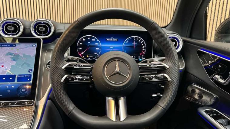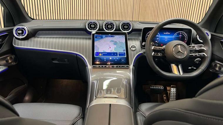 11.9" high resolution multimedia colour display, 12.3" Digital individually configurable instrument display, Acoustic presence indicator, Active lane keeping assist, Attention assist, Blind spot assist, Bluetooth interface for hands free telephone, Collision prevention assist plus, Direct steer speed sensitive steering, DYNAMIC SELECT with a choice of driving modes (ECO, Comfort, Sport and Individual), eCall emergency call system, ECO start/stop function, Fingerprint scanner, Fluorescent jacket for driver, Hard disc navigation, Head up Display, Instrument display in miles with English lettering, MBUX augmented reality for navigation, MBUX navigation premium, MBUX voice control activated by keywords "Hey Mercedes", Mercedes me connect, Multi function trip computer, Outside temperature display, Remote and charging services plus, Remote boot release, Road sign recognition system, Service indicator (ASSYST), Smartphone integration, Status display for rear seat belts in instrument cluster, Tailgate, Traffic sign assist, Wireless charging system for mobile devices in the front, 1 x type 2 and 3 phase 4m straight wallbox cable, 49 litre fuel tank, 4MATIC permanent four wheel drive, 7.4 kW monophase on board charger, 9G TRONIC plus automatic transmission, Alternating current charging system (AC charging), DC Charging system, Petrol Particulate Filter (PPF), Residual engine heat utilisation, Self levelling suspension, Burmester 3D surround sound system, DAB digital radio tuner, MBUX extended functions, Pre installation for Mercedes Benz Link, Sound personalisation, Adaptive brake lights, Adaptive high beam assist plus, Aluminium look running boards with rubber studs, AMG bodystyling front apron, rear apron and side skirts, AMG Line exterior, Auto headlights, Black roof rails, Body colour bumpers, Body colour door mirrors, Digital light LED headlights, Electric panoramic glass sunroof, Electrically adjustable door mirrors, EQ Hybrid badging on front wings, Front and rear electric windows, Headlight washers, Heat and noise insulating acoustic glass, Heat insulating dark tinted glass, Heated rear window, High level LED brake light, Integrated LED daytime running lights, LED indicator lights, LED rear fog lights, LED tail lamp, Motor way mode function and locator lighting, Radiator grille with Mercedes Benz pattern and integreated Mercedes star and louvre in dark grey matt with chrome inlay and black frame, Rain sensor windscreen wipers, Range adjustable headlights, Rear side wing doors, Rear wiper, Transparent Bonnet, Two chrome plated tailpipe trim elements, Variable front intermittent wipers, Welcome and follow-me home light functionality, Wheel arch liners in the vehicle colour, 3 seat bench in 2nd row, 40:20:40 split folding rear seats, Ambient lighting premium with projection of brand logo, AMG floor mats, AMG line interior, Artico man-made leather upholstery, Audio and onboard settings control on multifunction steering wheel, Automatic child seat recognition sensor, Black fabric roof lining, Comfort seats, Double cup holder in centre console, Easy-pack removable load compartment cover, Electrically height/reach adjustable steering column, Front centre armrest with stowage compartment, Front head restraints, Galvanised steering wheel gearshift paddles, Heated front seats, Heated steering wheel, Illuminated door sill panels with Mercedes Benz lettering, Illuminated glove compartment, Instrument panel and beltlines in ARTICO manmade leather in nappa look, Multicontour and climatised front seats, Multifunction sports steering wheel in nappa leather, Partition net, Rear centre headrest, Rear head restraints, Rear top tether child seat ISOFIX attachment, Single front passenger seat, Sports pedals with stainless steel surfaces and rubber studs, Sun visors, THERMATIC automatic climate control, Anti theft protection package - GLC, Boot comfort package - GLC, Easy tailgate pack - GLC, Exterior chrome package - GLC, Interior chrome package - GLC, Interior lighting pack - GLC, Keyless-Go comfort package - GLC, Memory pack - GLC, Mirror pack - GLC, Night package - GLC Urban Edition, Parking package with 360 degree camera - GLC, Stowage space package - GLC 300e/300de, USB Plus Pack - GLC, 3 rear 3 point seatbelts, Anti-lock braking system (ABS), ASR traction control, Automatic front passenger airbag deactivation, Black seat belts, Brake calipers with Mercedes-Benz lettering + perforated brake discs, Child proof door locks, Dual-stage airbags - driver and front passenger, driver knee bag and window bags for driver, front passenger and rear passengers, Electronic parking brake, Electronic stability programme (ESP) with curve dynamic assist and cross wind assist, Front and rear seatbelt reminder, Front passenger seat occupancy sensor, Front seatbelt pretensioners, Hill start assist, Tyre pressure monitoring system, Warning triangle and first aid kit, Automatic door locking, Guard 360 degree vehicle protection plus, Interior protection/immobiliser, Remote central locking, Black open pore aluminium lines wood trim with centre console in black fine structure, 20" AMG multi spoke light alloy wheels in painted black with high sheen finish, Summer tyres, TIREFIT with tyre inflation compressor,