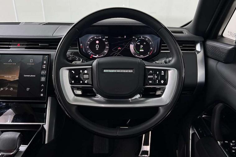13.1" Touchscreen, 3D surround camera inc frwd traffic detection, vehicle clearance guidance, 3D view, clearsight ground view, manoevure light, 360 parking aid, wade sensing, All Terrain Info Centre, All wheel steering, Android Auto, Apple car play, Blind spot assist, Bluetooth connectivity streaming, Configurable programs, Driver condition response, Eco mode, Electric power assisted steering (EPAS), Emergency call service, Front and rear parking aid, Head up Display, Interactive driver display, Lane keep assist, Park assist, Powered gesture tailgate/boot lid, Rear collision monitor, Rear traffic monitor, Remote, Traffic sign recognition with adaptive speed limiter, Wi-Fi Enabled with data plan, Wireless device charging with phone signal booster, 7 kW onboard charger, 8 speed automatic transmission, Active damper technology system, Adaptive dynamics, Adaptive off-road cruise control, All Wheel Drive (AWD), Automatic access height, Electronic active differential with torque vectoring by braking, Electronic air suspension with dynamic response pro, Home charging cable 5m Mode 2 including plugs, Public charging cable 5m Mode 2 including plugs, Terrain Response 2 Auto, Twin speed transfer box, Digital Audio Broadcast radio-DAB, Meridian 1600W signature sound system, Pivi pro including smart settings, Connected navigation pro, nuance speech, USB socket, Acoustic laminated windscreen, Animated directional indicators, Automatic headlights, Automatic levelling headlights, Centre high mounted stop light, ClearSight interior rear view mirror, Digital LED headlights with signature DRL and image projection, Electric windows with one touch open/close and anti trap, Engine cover, Flush deployable exterior door handles, Front and rear recovery eyes, Front fog lights, Headlamp power wash, Heated rear window, Heated washer jets, Illuminated metal treadplates with Autobiography script, Laminated front and rear side glass, LED tail lights, No towing, Power fold, auto-dimming, heated door mirrors with approach lights, Rain sensing windscreen wipers, Rear boot, Rear fog lights, Rear side wing doors, Side repeater indicators in mirror, Solar attenuating windscreen, Trailer stability assist, Winter wiper park position, 12V power sockets, 3 seat bench in 2nd row, Air quality sensor, Auto folding loadspace cover, Bright metal pedals, Cabin air purification pro, Cabin lighting, Customer configurable single point entry, Driver and passenger front seat armrests, Easy boot loading, Ebony Carpet, Electric rear side window sunblinds, Front and rear cupholders, Front and rear grab handles, Front centre console refrigerator compartment, Front head restraints, Gearshift paddles, Heated steering wheel, Hook in load space, Loadspace light, Luggage tie down in loadspace, Multifunction steering wheel, Rear centre armrest, Rear head restraints, Rear ISOFIX, Single front passenger seat, Soft close doors, SV bespoke carpet mats, Tailgate event suite with leather cushions, Three zone climate control, Twin blade sunvisors with Illuminated vanity mirrors, Upper and lower glovebox, Online pack with data plan - Range Rover, 3x3 point rear seat belts, Anti-lock braking system (ABS), Black brake calipers, Brake hold function, Cornering brake control (CBC), Customer configurable autolock, DSC - Dynamic Stability Control, Electronic brake force distribution, Electronic parking brake, Electronic traction control, Emergency brake assist, Emergency braking, Front airbags with passenger seat occupant detector, Front side airbags, Hill descent control, Hill launch assist, Illuminated seat belt buckles, Low traction launch, Occupant protection assist, Power operated child locks, Roll stability control, Tyre pressure monitoring system (TPMS), Immobiliser, Intrusion sensor and alarm, Keyless entry, Locking wheel nuts, Remote central locking, Noble chrome controls,