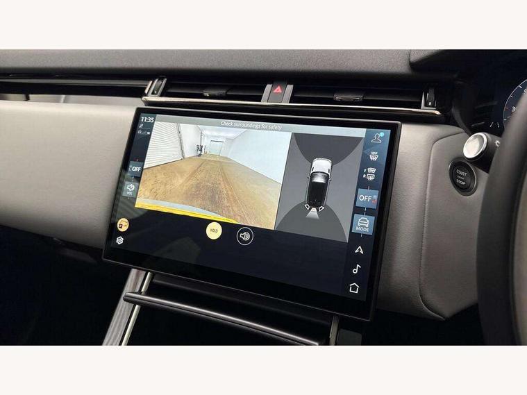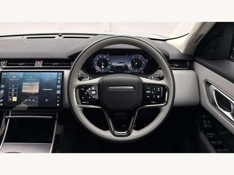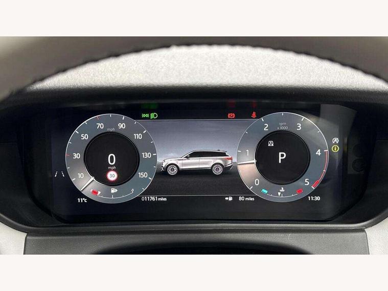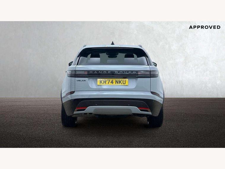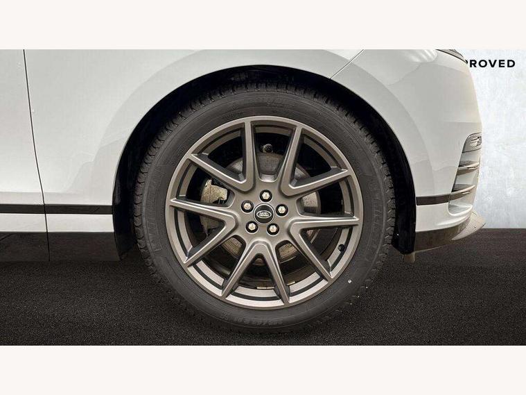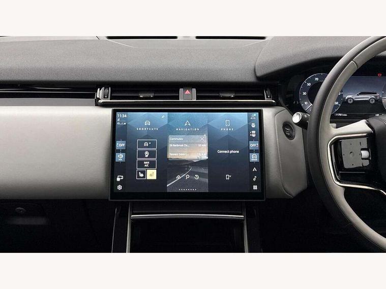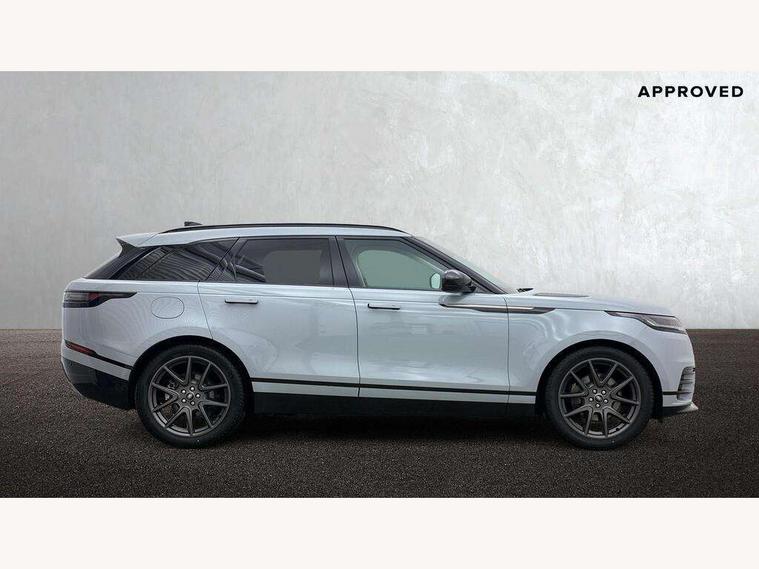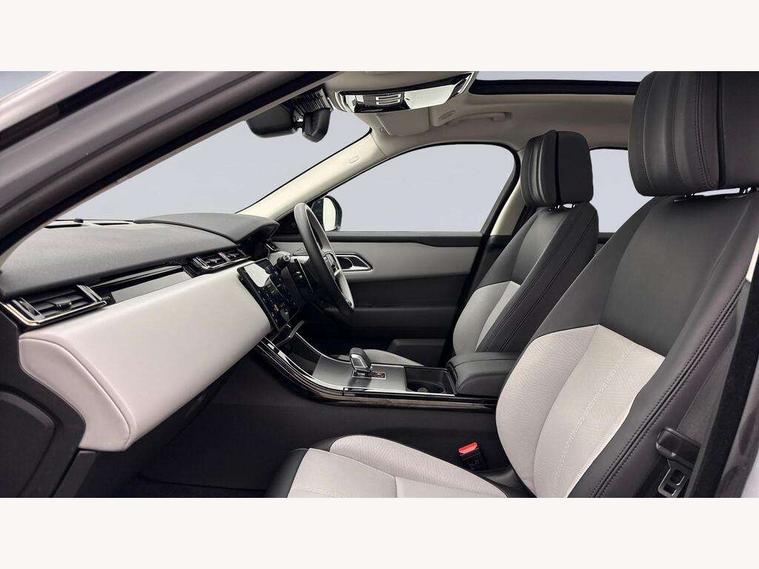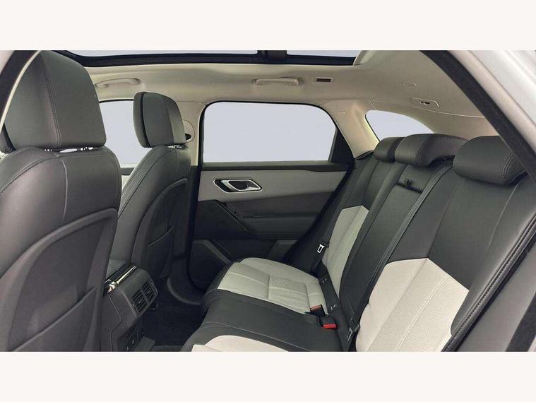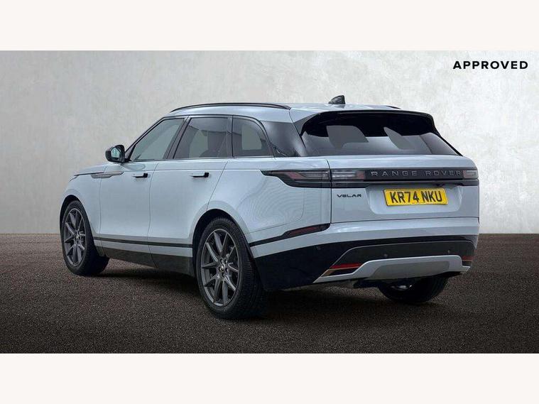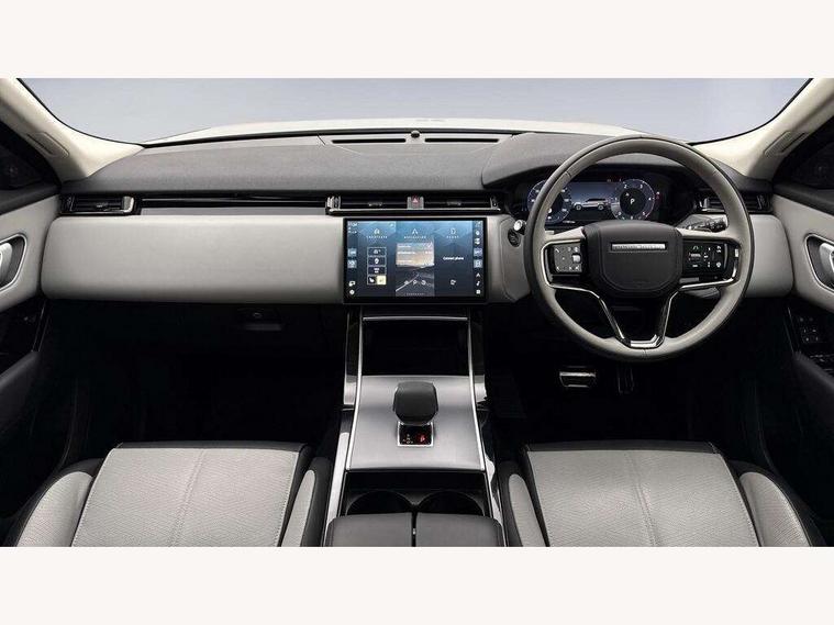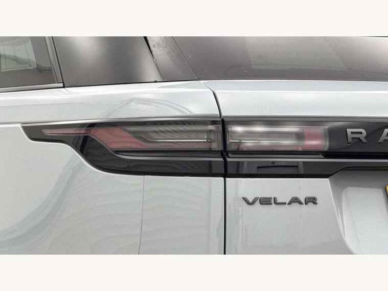Adaptive cruise control with steering assist, Android Auto, Apple CarPlay, Blind spot assist, Bluetooth connectivity, Brake pad wear indicator warning light, Driver condition monitor, eCall emergency call system, Front and rear parking aid, InControl remote, Land Rover InControl apps, Lane keep assist, Pivi pro with connected navigation, Rear collision monitor, Rear traffic monitor, Service indicator, Speed proportional electronic power assisted steering (EPAS), Traffic sign recognition with adaptive speed limiter, Trip computer, Voice control system, Wireless device charging, 8 speed automatic transmission, Adaptive dynamics, All terrain progress control, Electronic air suspension, Open differential with torque vectoring by braking, Single speed transfer box, DAB radio, Steering wheel mounted controls, 3rd brake light, Acoustic laminated windscreen, Auto dimming interior rear view mirror, Automatic headlamp levelling, Automatic headlights, Body coloured bumpers, Boot protection plate, Electric windows with one touch open/close and anti trap, Flush deployable exterior door handles, Follow me home headlights, Heated rear window with timer, Heated washer jets, Heated windscreen, Metal front tread plates, Metal load space scuff plates, Pixel LED headlights with signature DRL, Power fold, auto-dimming, heated door mirrors with memory and approach lights, Rain sensor windscreen wipers, Rear animated directional indicators, Rear fog lights, Rear side wing doors, Rear wash/wipe, Tailgate/boot lid spoiler, Trailer stability assist, Velar badge, 3 seat bench in 2nd row, Ambient lighting, Bright metal pedals, Carpet mats, Driver/passenger sunvisors with illuminated vanity mirrors, Ebony morzine headlining, Electrically adjustable steering column, Extended leather upgrade, Heated steering wheel, Isofix system on outer rear seats, Loadspace cover, Overhead lighting console, Overhead stowage for sunglasses, Passive front headrests, Rear air vents, Rear centre headrest, Single front passenger seat, Twin front cupholders, Twin sliding front centre armrest, Online pack with data plan - Velar, Power socket pack 2 - Velar, 355mm Front and 325mm Rear brakes, 3x3 point rear seatbelts, Anti-lock braking system (ABS), Cornering brake control, Curtain airbags, Customer configurable autolock, Door side intrusion beams, Driver airbag, DSC - Dynamic Stability Control, Electronic brake force distribution, Electronic parking brake, Electronic traction control, Emergency braking, Front and rear seatbelt reminder, Hill descent control, Hill launch assist, Low traction launch, Passenger airbag, Power operated child locks, Rear airbags, Roll stability control, Side airbags, Tyre pressure monitoring system (TPMS), Global lock and unlock switch on driver door, Immobiliser, Intrusion sensor, Keyless entry, Lock only switch on front passenger door, Locking wheel nuts, Perimetric alarm, Remote central locking, All season tyres,