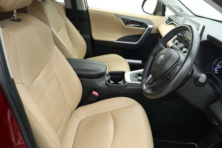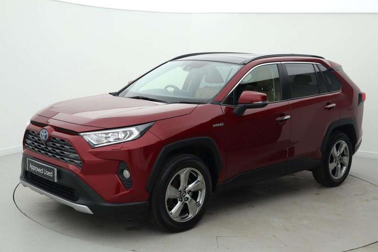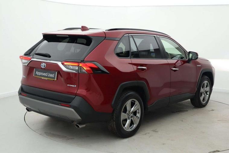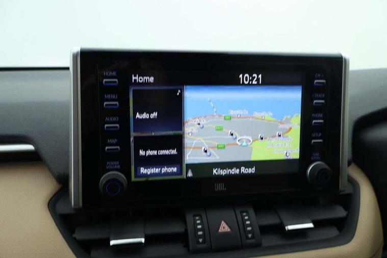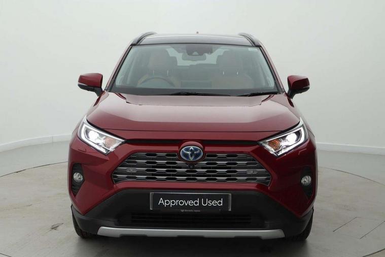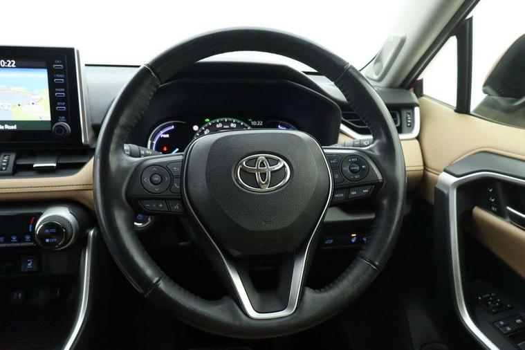 7" colour TFT display, Adaptive cruise control with lane trace assist, Adjustable speed limiter, Blind spot monitoring with rear cross traffic alert, Bluetooth system, Cyclist Detection, Drive mode selector, eCall emergency call system, ECO-driving indicator, Electric power steering, Hybrid system indicator, Lane departure warning system, Lights on warning, Low screen washer fluid warning, Night Time Pedestrian Detection, Pedestrial detection, Power boot opening and closing, Rear parking camera, Rear parking sensors, Remote boot door release in cabin, Tachometer, Touch 2 Go navigation system including 3D maps and voice control, Traffic sign recognition, Trip computer, Voice control system, Vehicle Stability Control (VSC), 6 speakers, 8" Multimedia display touch screen, Auxiliary socket for external MP3 player, DAB audio, Steering wheel mounted audio controls, Toyota touch media system, USB connection, Auto dimming interior mirror, Auto high beam, Automatic headlamp levelling, Automatic headlights, Automatically retractable door mirrors, Black roof rails, Body colour door handles, Body colour door mirrors, Body colour rear spoiler, Body coloured bumpers, Body coloured Shark-fin antenna, Door mirror puddle lights, Electric adjustable door mirrors, Emergency brake-light signal (EBS), Follow me home headlights, Front fog lights, Headlight cleaners, Heated door mirrors, LED daytime running lights, LED High mounted stop lamp, LED rear lights, Meshed shape upper front grille, Power front windows, Power rear windows, Privacy glass, Projector LED headlights, Rear screen wiper - intermittent, Rear windscreen defogger, Silver front under-run, Silver rear under-run, Trailer sway control, Turning signal integrated indicators in door mirrors, Windscreen wiper de-icer, 3 rear headrests, 60/40 split fold rear seat back, Boot light, Clean air filter, Driver and front passenger personal light, Driver and front passenger Whiplash Injury Lessening seats, Driver and passenger sunvisors with illuminated vanity mirrors, Driver seat memory function, Dual sided deck board in boot, Dual zone automatic air conditioning, Floor mats, Folding rear centre armrest, Front and rear bottle holders, Front centre armrest, Front footwell lights, Front headrests, Front seat and rear pockets, Front/rear roof mounted assist grips, Grey roof lining, Heated driver and front passenger seats, Heated steering wheel, Isofix child seat preparation, Leather gear shift with chrome surround, Leather upholstery, Light blue ambient lighting on front cupholders and open tray, Manual telescopic and tilt 3-spoke leather steering wheel with Chrome insert, Manually reclining and sliding front passenger seat, Pollen filter, Power height-adjustable sliding reclining and lumbar support for driver seat, Rear coat hooks, Rear door armrests, Rear passenger air vents, Reclining rear seats, Satin chrome interior door handles, Sunglasses holder, Parking pack - Rav4, 3x3 point rear seatbelts, ABS/EBD, Adjustable front driver and passenger seat belt extender, Brake assist function, Child proof door locks, Collision mitigation braking system, Driver/Front Passenger airbags, Driver/front passenger side airbags, Drivers knee airbag, Electronic parking brake, Electronic Stability Programme (ESP), Emergency brake light system (EBS), Front and rear curtain airbags, Front and rear seatbelt reminder, Hill start assist, Passenger airbag cut-off device, Seatbelt pretensioners with load limiters, Traction control, Tyre pressure warning, Alarm/immobiliser, Glass-breaking alarm sensors, Light - on and Key in reminder, Remote central locking, Smart entry + Smart start, Speed sensitive auto door locking, Tilt detection sensors, Piano black centre console with silver insert, Soft-touch black lower dashboard, Soft-touch black upper dashboard with silver insert, Full size spare wheel,