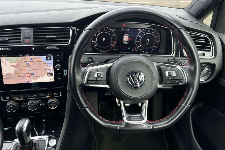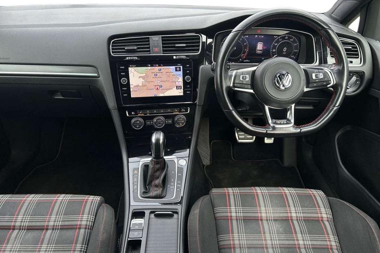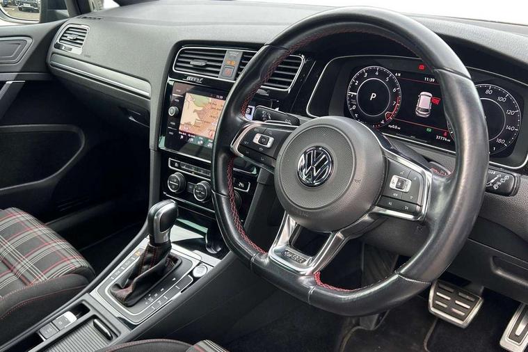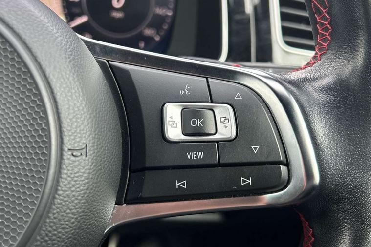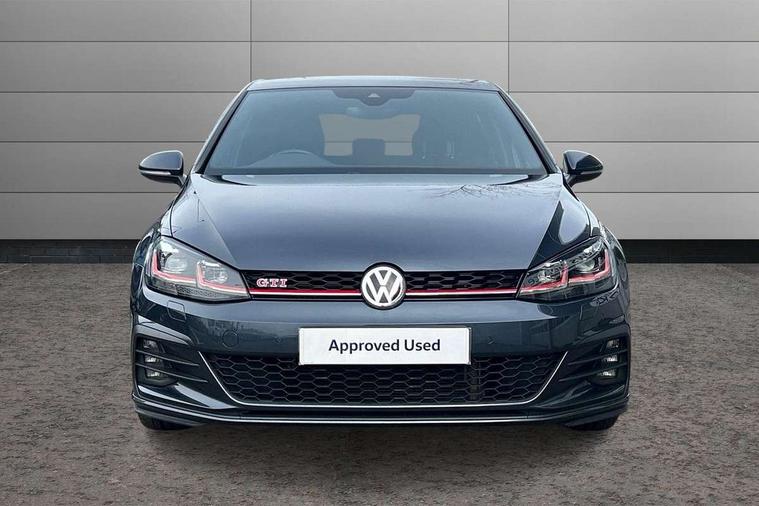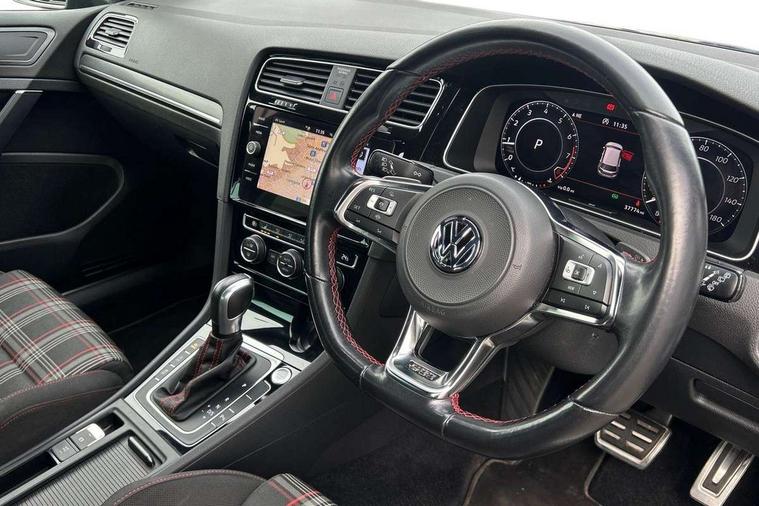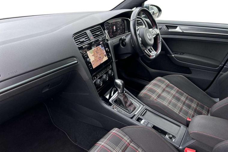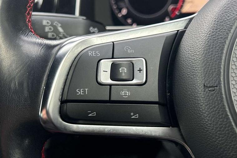 'Lights On' Reminder warning buzzer, ACC - Adaptive cruise control with front assist, forward collision warning, distance monitoring, city emergency brake and speed limiter, Active information display - 12.3" high resolution TFT display, Bluetooth telephone and audio connection for compatible devices, Brake pad wear indicator warning light, Driver alert system, Driving Mode Selection with four preset modes - Eco, normal, sport or individual modes, Multifunction computer with visual gear change recommendation for fuel consumption, Progressive steering, Push tank flap, Rear view camera, Speed limit display, Speedo, rev counter, electronic odometer, trip, service interval display, exterior temperature and fuel gauge, Stop/start system, Think blue trainer driver tips and journey analysis, Unique GTI instrument cluster, Warning buzzer and light for front seatbelts unfastened, Anti-tramp function, Battery regeneration during braking, Mechanical limited slip differential, Composition media system, DAB Digital radio receiver, Driver Personalisation profile selection, MP3/WMA compatability, Multi device interface (MDI) via USB connection, Premium USB cable in choice of either Apple or Android smartphone compatibility, SMS Functionality, Title and cover art display, USB and SD card connectivity, Volkswagen media control, 3D-LED tinted rear light clusters with indicator sweep function, Black front air intake and radiator grille with chrome insert, Body colour door handles, Body colour door mirrors with integrated indicators, Body colour rear roof spoiler, Dusk sensor + automatic driving lights, Electric front windows, Electric rear windows, Electrically adjustable and heated door mirrors, Extended sill strips flared, Front and rear unique GTI badging in red, Fully galvanised body, GTI logo in red on front and back, GTI logo lettering on front wings on right and left, Heated rear windscreen, High level 3rd brake light incorporating LED Technology, Honeycomb front air intake - Black, Honeycomb radiator grille with red stripe, LED daytime running lights incorporating red stripe, LED front fog lights, LED headlights with dynamic light assist, Rear fog lamp, Rear number plate lights incorporating LED technology, Rear window aerial, Rear window wash/wipe with intermittent wipe, Reflectors in all doors, Uniquely shaped front/rear bumpers, Windscreen wipers/ intermittent wipe + 4 position delay, 12V socket in luggage compartment, 3 rear headrests, 4 load lashing points in luggage compartment, 60/40 split folding rear seat backrest, Bag hook in luggage compartment x 2, Black rear diffuser with chrome exhaust tailpipes in left and right, Black roof lining, Climate control - 2 zone electronic air conditioning with automatic air recirculation and allergy filter, Cooled glovebox, Cover for storage compartment in centre, Dust/pollen filter, Front + rear carpet mats, Front centre armrest with storage compartment and two rear air vents, Front seat back storage pockets, Grab handles front x 2, rear x 2 with integrated coat hooks, Height and reach adjustable steering wheel, Illuminated vanity mirrors, Interior light delay, Isofix preparation for 2 rear child seats, Leather gear knob and handbrake grip, Load through provision with rear centre armrest and cupholders x2, Luggage compartment lighting, Overhead storage box, Stainless steel pedals, Storage box in luggage compartment, Storage compartment in roof console with cover, Storage compartments in centre console, Storage compartments in front doors, Storage compartments in rear doors, Stowable luggage compartment cover, Sun visors, Three spoke multifunction leather steering wheel with GTI logo and red stitching including gearknob gaiter, Variable boot floor, height adjustable and removable, Ambient lighting pack - Golf, Convenience Pack - Golf, Mirror pack - Golf, Winter pack - Golf, 3 rear three point seatbelts, Airbags - Driver's and front passenger's, curtain airbag, Driver's knee, front side impact and passenger's airbag deactivation switch, Anti-lock Braking System (ABS) with Hydraulic Brake Assist (HBA), Automatic post collision braking system, Child locks on rear doors, Driver/Passenger optimised head restraints, Electronic parking brake with auto hold, Electronic stability control (ESC) including Electronic differential lock (EDL) and ASR (Traction control) with deactivation via infotainment system, Front ventilated disc brakes and rear disc brakes, Larger diameter brake discs and GTI logo on red brake calipers, Pre crash preventive occupant protection, Three point height adjustable front seatbelts with tensioners, Tyre pressure loss indicator, Alarm with interior protection and deactivation via infotainment system, Electronic engine immobiliser, Keyless entry with start/stop button on centre console, Chrome plated air vent surround, Chrome plated electric mirror adjustment switch surround, Chrome-plated light switch surround, Honeycomb black decorative inserts, Piano black decorative inserts in centre console, Steel space saver spare wheel,