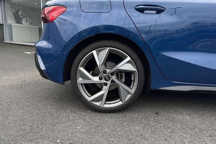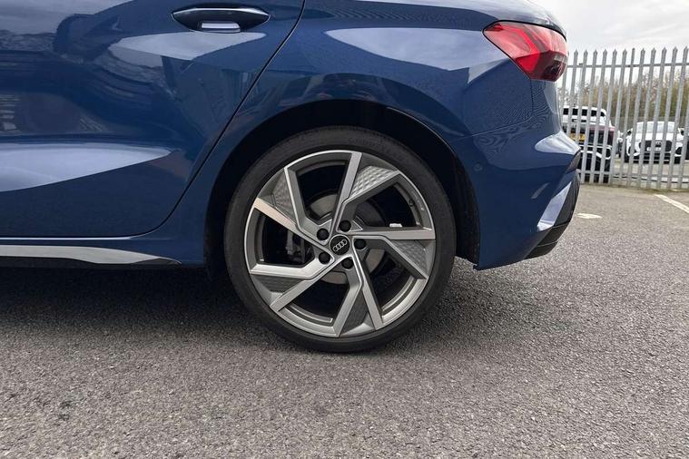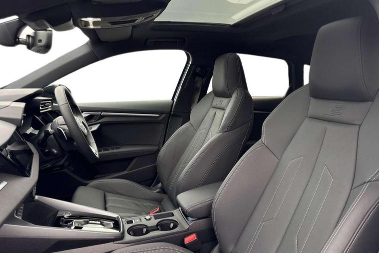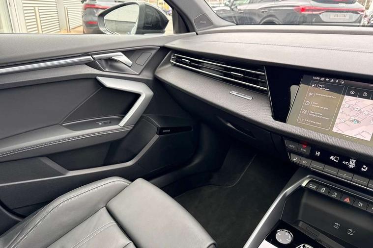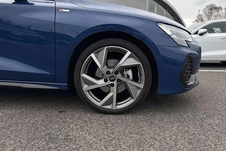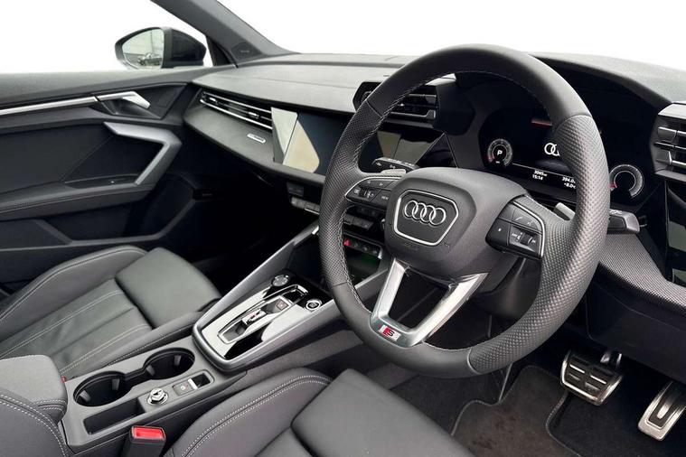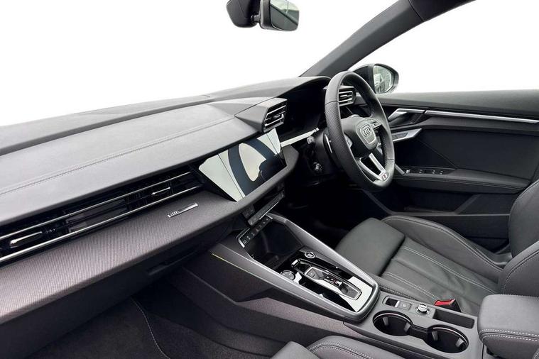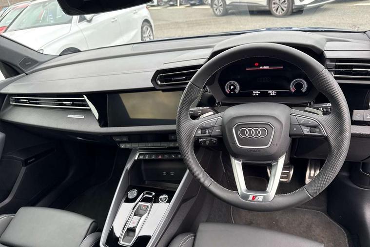 Adaptive cruise control (ACC), Adjustable speed limiter, Audi drive select (Auto, Comfort, Dynamic, Efficiency and Individual), Audi virtual cockpit plus - 12.3" full HD resolution dynamic digital instrument cluster, Automatic start/stop system with recuperation, Bluetooth interface, Camera based traffic sign recognition, Collision avoidance assistant, Driver attention and fatigue detection, e-Call (emergency call), Electromechanical power speed sensitive steering, Emergency assist, Intersection assist, Lane departure warning system, MMI Navigation Plus with high resolution 10.1" colour touch screen display, Park Assist with parking system Plus, Reversing camera, Service indicator, Smartphone interface with app store includes wireless Apple carplay, Android auto and Amazon alexa integration, Trip computer, Voice control system with natural language interaction, Diesel particulate filter, Sports suspension, Audi Phonebox light with wireless charging, Audi sound system - 10 loudspeakers including centre loudspeaker and subwoofer, DAB Digital radio, USB ports with charging function in the rear, Acoustic glass windscreen, All weather light, Anthracite grey Audi rings (front and rear), Audi beam uses LEDs to project the Audi logo onto the ground as you exit your A3, Auto dimming frameless rear view mirror, Automatic dynamic range control, Black accents front and rear bumpers, Black accents in the area of the Audi single frame grille, Black accents window trims strips, Dipped beam, main beam, position light and turning light, Electrically adjustable/heated/folding/auto dimming door mirrors with integrated LED indications + kerb view function for passenger side, Exterior model badging, Front and rear side air inlets in grained matt black with dark liquid chrome frame, Front electric windows, Front radiator grill in high gloss dark chrome, Heat insulating glass windscreen, Illuminated door sills with aluminium inserts at the front with S logo, Intersection light, Invisible tailpipe, LED 3rd brake light, LED brake lights, LED daytime running x3, LED headlights with LED rear lights and dynamic rear indicators, LED rear number plate lights, LED reverse light, LED tail lights, Light and rain sensors, Manoeuvring light, Motorway light, Privacy glass - dark tinted rear window, rear door and side windows, Rear diffuser and grill in grained matt black with inlay in dark liquid chrome, Rear electric windows, Rear side wing doors, Rear wiper, S roof spoiler, Side sill trim in dark liquid chrome, Static cornering light, 12V socket and storage compartment in front centre console, 3 seat bench in 2nd row, 3 spoke flat bottomed leather multifunction sport steering wheel with gear shift paddles, 3-zone deluxe automatic air conditioning, 4 way electrically adjustable lumbar support for driver and front passenger, 40/20/40 split folding rear seat bench, Black cloth headlining, Black front and rear floor mats, Front and rear centre armrest in artificial leather with contrasting stitching on armrests and instrument panel, Front and rear headrests, Heated front seats, Height and reach adjustable steering wheel, i-Size child seat mounting on the front passenger side and outer rear seats, i-Size and top tether on the outer rear seats, Manual boot compartment lid, Manually adjustable front seats, Rear centre armrest with cupholder, S badging on the steering wheel, Seat side bolsters, Single front passenger seat, Stainless steel pedals and front footrest in black, Twin leather upholstery with front sports seats S embossed logo, Aluminium interior elements pack - A3, 3x3 point rear seat belts, Driver and front passenger airbag with passenger airbag deactivation, Electronic Stabilisation Control (ESC) including ABS, ASR and EDL, First aid kit with warning triangle and 2 safety vests, Front side airbags with head airbags and interaction airbag, Hill hold assist, Pre-sense front with pedestrian and cyclist detection, Seatbelt monitoring, Tyre pressure loss indicator, Anti theft alarm, Anti-theft wheel bolts, Electronically operated child locks, Immobiliser, Black dashboard,
