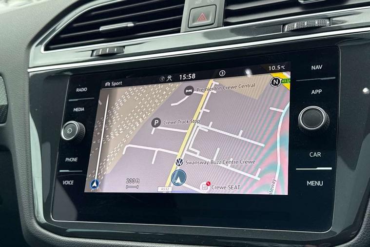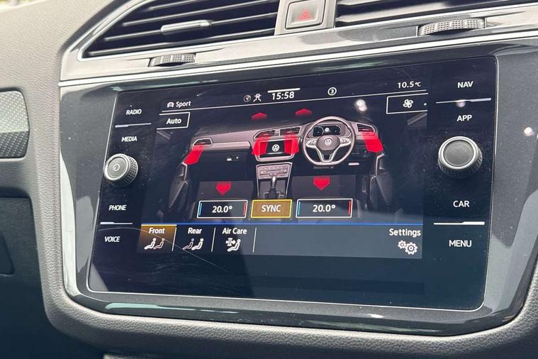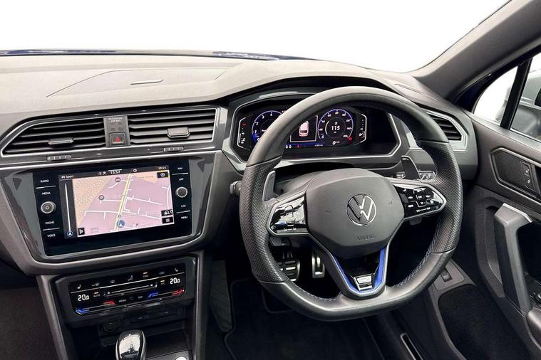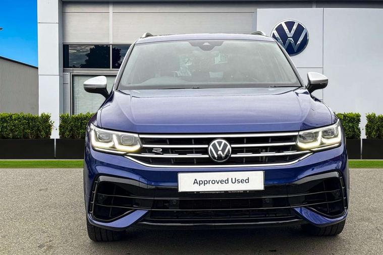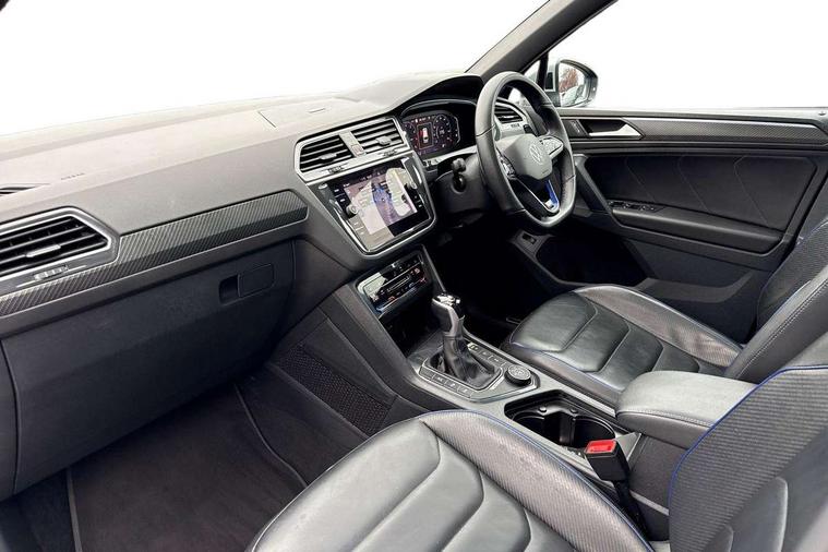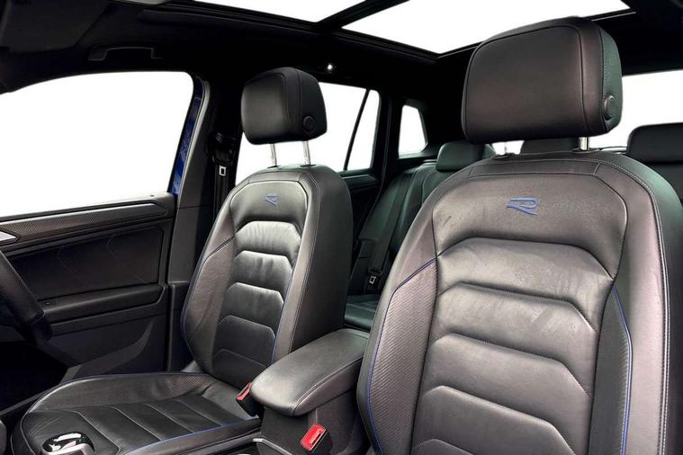 Adaptive cruise control ACC stop and go including speed limiter, App-Connect incl. App-Connect Wireless for Apple CarPlay and Android Auto, Bluetooth phone integration system, Distance control assist, Driver alert system, Driver profile selection, Dynamic road sign display, eCall emergency call system, Electromechanical speed sensitive power steering, Engine start/stop button, Instrument cluster mph speedometer Great Britain, Lane keeping system Lane Assist, Lights on warning, Motorised electric tailgate operated via key fob, drivers door and foot movement under tailgate, Multifunction front facing camera, Outside temperature display, Premium multifunction display with multi colour display, Rev counter, Revision / skills operating concept travel assistant, Service interval indicator, Speed limit display, Start/stop system with regenerative braking, Tailgate/trunk lid unlocking from outside, Trip computer, Warning sound and light for doors and tailgate open, ACC - Adaptive chassis contol with adaptive dampers, All wheel drive - 4Motion, Battery regeneration during braking, XDS electronic differential lock for improved traction and handling, 4 X 20 watt output, 8 Speakers, Diversity antenna for FM reception, SD card slot, Simultaneous pairing of 2 compatible mobile devices, SMS functionality - read, compose and send SMS messages using touch-screen display, Title and cover art display, USB C ports, Auto dimming interior rear view mirror, Automatic headlight control system, Body colour door handles, Body coloured door mirrors with integrated indicators, Chrome matt mirror covers, Chrome moldings on the side windows, Coming/leaving home lighting function, Dynamic headlight range control, Front and rear electric windows, Front illuminated door sills with R logo, Heated rear window, High level 3rd brake light, IQ light-Adv high beam, Dynamic light assist for LED matrix headlamp+LED separate DRL+DCL, dark red rear LED tech, Poor weather light+ cornering light, Laminated safety glass windshield, heat and sound insulating, LED rear number plate lights, License plate carrier in front and rear, Poor weather light and cornering light, Privacy glass for rear side windows and rear window, R-Logo light projection, R-Logo on radiator grille with side panels and rear, R-specific diffuser, painted black with cut out for trailer hitch, R-Specific front and rear bumpers, Rain sensor windscreen wipers, Rear fog lamp, Rear side wing doors, Rear spoiler in R style, Rear windscreen washer and wiper with interval delay, Side and rear windows in heat insulating glass, Silver anodised roof rails, Trailer Stability Programme, Windscreen wipers/ intermittent wipe + 4 position delay, 12V outlet in center console rear and in luggage compartment, 12V outlet in front and tray, 2 cup holders in front, 2 LED front reading lights, 2 LED rear reading lights, 3 bench rear seats in 2nd row, 3 rear headrests, 4 load lashing points, 40:20:40 split folding rear seats, Air Care Climatronic 3 zone automatic climate control with enhanced air filter and controls in the rear, Backrest release for left front seat, Black headlining, Climate control unit rear with touch function, Door and side trim panel in foam film, insert in leatherette, Floor mats with R-Logo and stitching, Front centre armrest, Front footwell illumination, Front seats head restraints (x-adjustment), Height adjustable front seats, Height/reach adjust steering wheel, Instrument lighting white adjustable panel illumination, Interior light with delay, Isofix Preparation 2 Rear child seats, Leather gear knob, Lighting door sill trim at front with R Logo, Lockable cooled glovebox, Luggage compartment lighting, Luggage net, Pedals and footrest in stainless steel, R Specific key caps, R-specific sport skin with R Logo in active Info dsiplay, R-taster (direct selection of race mode/ flap control), Rear bench seat asymetrically split folding, longitudinally movable and folding with load-through hatch and center armrest, Remote unlocking for rear seat backrest, Removable luggage cover, Removable rear headrests, Safety optimised front head restraints, Single front passenger seat, Sliding/reclining rear seats, Standard rear seat release, Storage compartment in driver's door, Storage compartment in passenger's door, Storage compartment in rear doors, Storage compartments in luggage area left and right, Storage tray on dashboard, Sun visors with illuminated vanity mirrors, Top sports seats integrated headrest, blue R-Logo in front seats, seat centre panels and outer rear seats in fabric inner side bolster art Velors, Variable boot floor, height adjustable and removable, Easy open and close pack with safelock - Tiguan, 3 point seat belt for centre rear seats, 3 point seat belts with seat belt pretensioners for the outer rear seats, Active bonnet, Curtain airbags for front and rear passengers, Driver/Front Passenger airbags, Drivers knee airbag, Electronic parking brake with auto hold, Electronic Stability Control with driver steering recommendation, ABS, ASR, EDL, EDTC and trailer stabilization, Front assist with autonomous emergency braking (for Adaptive Cruise Control ACC up to 130 mph), Front disc brakes, Front passenger airbag deactivation, Front side airbags, Height adjustable front 3 point seatbelts + pretensioners, Hill hold control, Manual child proof rear door locks, Pedestrian monitoring system, Power assisted brakes, Proactive passenger protection system in combination with front assist, Rear disc brakes, Rigid safety cell with front and rear crumple zones, Two tone horn, Tyre pressure monitoring system, Warning sound and light for front seat belts if unfastened, Anti theft alarm system with interior monitoring, backup horn and towing protection, Anti theft wheel bolts, Central locking system with safelock radio remote control and 2 remote control folding keys, Electronic engine immobiliser, Tool kit, Tyre mobility kit Includes 12V compressor and tyre sealant,