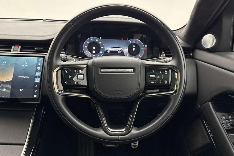 11.4" touch screen, 3D 360 degree surround camera with wade sensing, Adaptive cruise control, Android Auto, Apple car play, Blind spot assist, Bluetooth connectivity, Brake pad wear indicator warning light, Driver condition monitor, eCall emergency system, Eco mode, Electronic power assisted steering (EPAS), Front and rear parking aid, InControl remote, Interactive driver display, Land Rover InControl apps, Lane keep assist, Pivi pro connected includes diamond pivi variant, smart settings, connected navigation pro, nuance speech licence, Powered tailgate/boot lid, Rear collision monitor, Rear traffic monitor, Tailgate, Traffic sign recognition with adaptive speed limiter, Voice control system, Wireless device charging, All terrain progress control, Diesel exhaust fluid (DEF) large tank, Efficient Driveline, Large fuel tank, Terrain Response 2, Digital Audio Broadcast radio-DAB, Meridian surround sound system with 650W subwoofer and 14 speakers, Steering wheel mounted controls, Acoustic laminated windscreen, Auto headlights, Automatic headlight levelling, ClearSight interior rear view mirror, Electric windows with one touch open/close and anti trap, Flush deployable exterior door handles, Front and rear recovery eyes, Heated rear window with timer, Heated washer jets, Heated windscreen, Pixel LED headlights with signature DRL and LED tail Lights, Power fold, auto-dimming, heated door mirrors with approach lights and auto dimming driver side, Rain sensing windscreen wipers, Rear animated directional indicators, Rear fog lights, Rear side wing doors, Rear wiper, Side repeater indicators in mirror, Sliding panoramic roof with powered sunblind, Tailgate spoiler, Third brake light, Winter wiper park position, 14 way driver memory electric front seats with 2 way manual headrests + 4 way lumbar support, bolsters, 40:20:40 split folding rear seats with centre headrest and armrest, Ambient interior lighting, Bright metal pedals, Carpet mats, Customer configurable single point entry, Electrically adjustable steering column with memory function and easy entry/exit, Front and rear cupholders, Heated steering wheel, Isofix system on outer rear seats, Overhead lighting console, Overhead stowage for sunglasses, Passive front head restraints, Rear air vents, Rear head restraints, Satin chrome gearshift paddles, Single passenger seat, Sunvisors with illuminated vanity mirrors, Twin sliding front centre armrest, Power socket pack 2 - Evoque, 3 rear 3 point seatbelts, Anti-lock braking system (ABS), Brake hold function, Customer configurable autolock, DSC - Dynamic Stability Control, Electronic brake force distribution, Electronic parking brake, Electronic traction control, Emergency braking, Front and rear seatbelt reminder, Hill descent control, Hill launch assist, Low traction launch, Occupant protection assist, Passenger seat occupant detector, Power operated child locks, Roll stability control, Six airbags - Driver and passenger airbags/driver knee airbag/front side airbag and curtain airbags, Torque vectoring brake, Tyre pressure monitoring system, Alarm, Immobiliser, Intrusion sensor, Keyless entry, Locking wheel nuts, All season tyres,