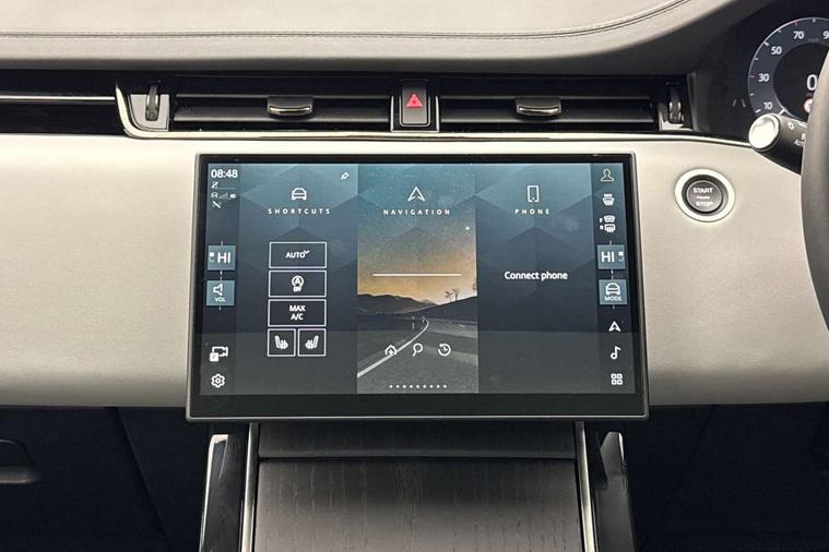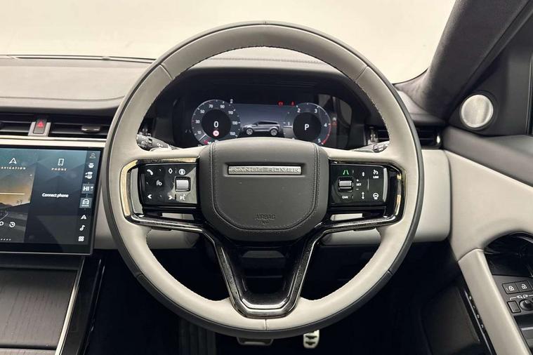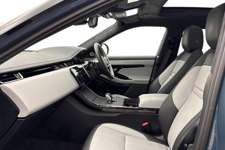 11.4" touch screen, 3D 360 degree surround camera with wade sensing, Adaptive cruise control, Android Auto, Apple car play, Blind spot assist, Bluetooth connectivity, Brake pad wear indicator warning light, Driver condition monitor, eCall emergency system, Eco mode, Electronic power assisted steering (EPAS), Front and rear parking aid, InControl remote, Interactive driver display, Land Rover InControl apps, Lane keep assist, Pivi pro connected includes diamond pivi variant, smart settings, connected navigation pro, nuance speech licence, Powered tailgate/boot lid, Rear collision monitor, Rear traffic monitor, Tailgate, Traffic sign recognition with adaptive speed limiter, Voice control system, Wireless device charging, All terrain progress control, Diesel exhaust fluid (DEF) large tank, Efficient Driveline, Large fuel tank, Terrain Response 2, Digital Audio Broadcast radio-DAB, Meridian surround sound system with 650W subwoofer and 14 speakers, Steering wheel mounted controls, Acoustic laminated windscreen, Auto headlights, Automatic headlight levelling, ClearSight interior rear view mirror, Electric windows with one touch open/close and anti trap, Flush deployable exterior door handles, Front and rear recovery eyes, Heated rear window with timer, Heated washer jets, Heated windscreen, Pixel LED headlights with signature DRL and LED tail Lights, Power fold, auto-dimming, heated door mirrors with approach lights and auto dimming driver side, Rain sensing windscreen wipers, Rear animated directional indicators, Rear fog lights, Rear side wing doors, Rear wiper, Side repeater indicators in mirror, Sliding panoramic roof with powered sunblind, Tailgate spoiler, Third brake light, Winter wiper park position, 14 way driver memory electric front seats with 2 way manual headrests + 4 way lumbar support, bolsters, 40:20:40 split folding rear seats with centre headrest and armrest, Ambient interior lighting, Bright metal pedals, Carpet mats, Customer configurable single point entry, Electrically adjustable steering column with memory function and easy entry/exit, Front and rear cupholders, Heated steering wheel, Isofix system on outer rear seats, Overhead lighting console, Overhead stowage for sunglasses, Passive front head restraints, Rear air vents, Rear head restraints, Satin chrome gearshift paddles, Single passenger seat, Sunvisors with illuminated vanity mirrors, Twin sliding front centre armrest, Power socket pack 2 - Evoque, 3 rear 3 point seatbelts, Anti-lock braking system (ABS), Brake hold function, Customer configurable autolock, DSC - Dynamic Stability Control, Electronic brake force distribution, Electronic parking brake, Electronic traction control, Emergency braking, Front and rear seatbelt reminder, Hill descent control, Hill launch assist, Low traction launch, Occupant protection assist, Passenger seat occupant detector, Power operated child locks, Roll stability control, Six airbags - Driver and passenger airbags/driver knee airbag/front side airbag and curtain airbags, Torque vectoring brake, Tyre pressure monitoring system, Alarm, Immobiliser, Intrusion sensor, Keyless entry, Locking wheel nuts, All season tyres,