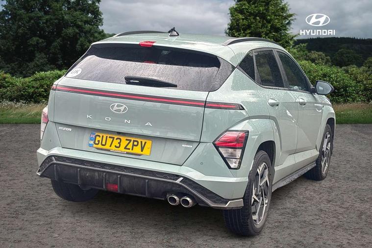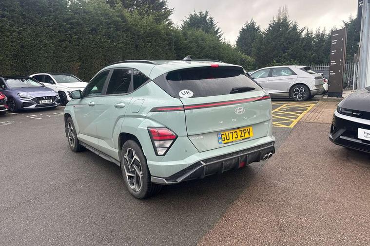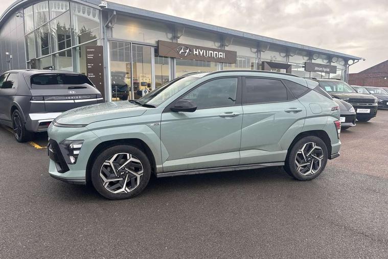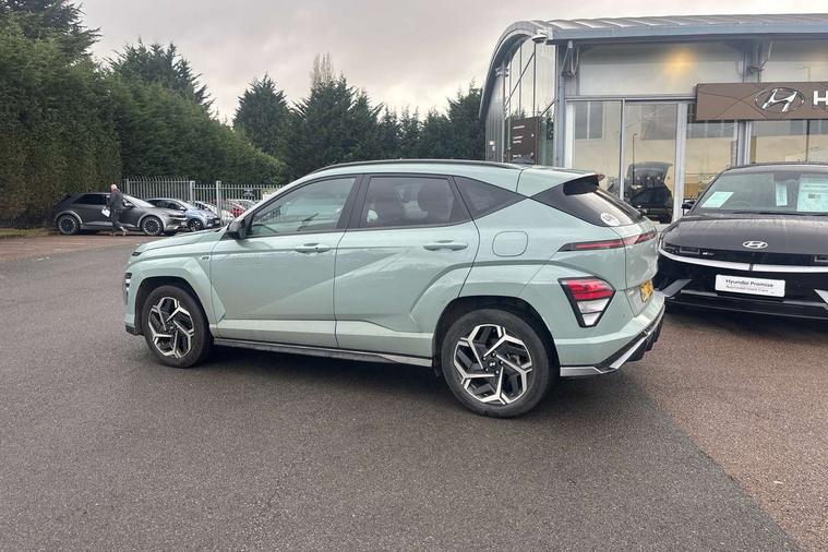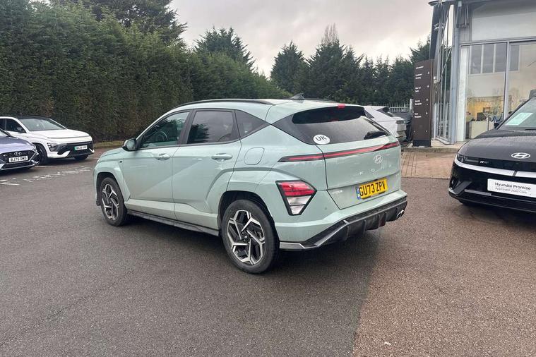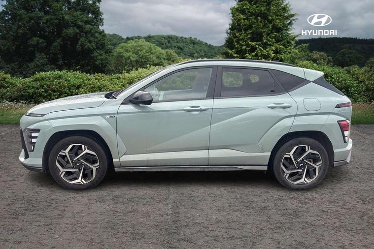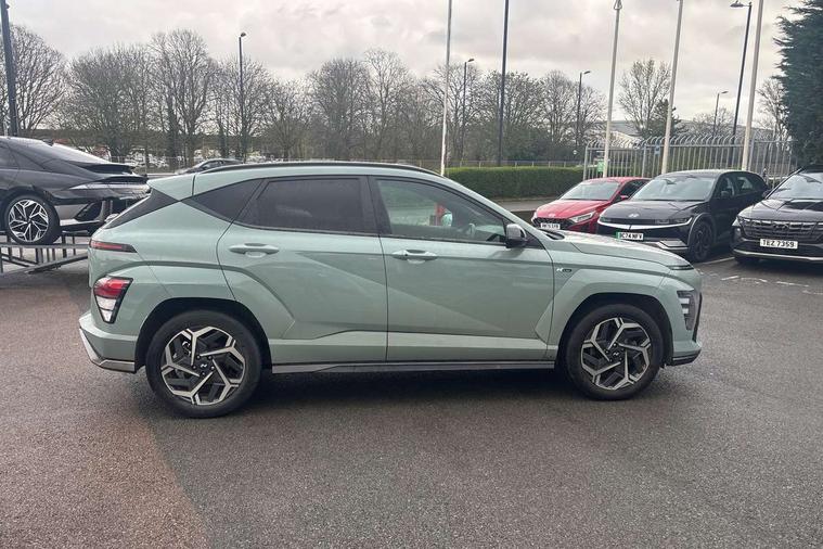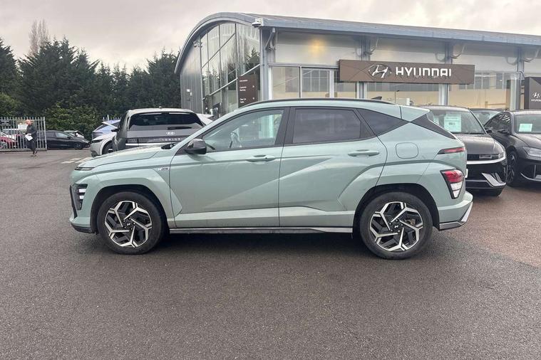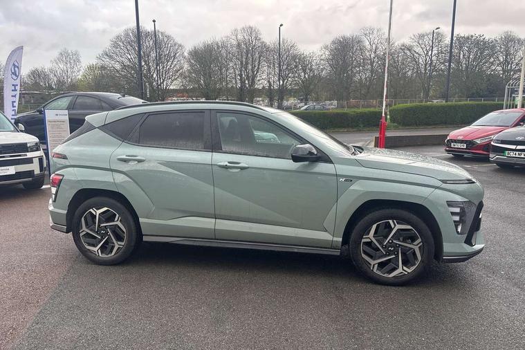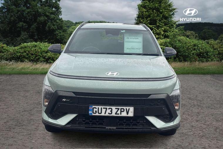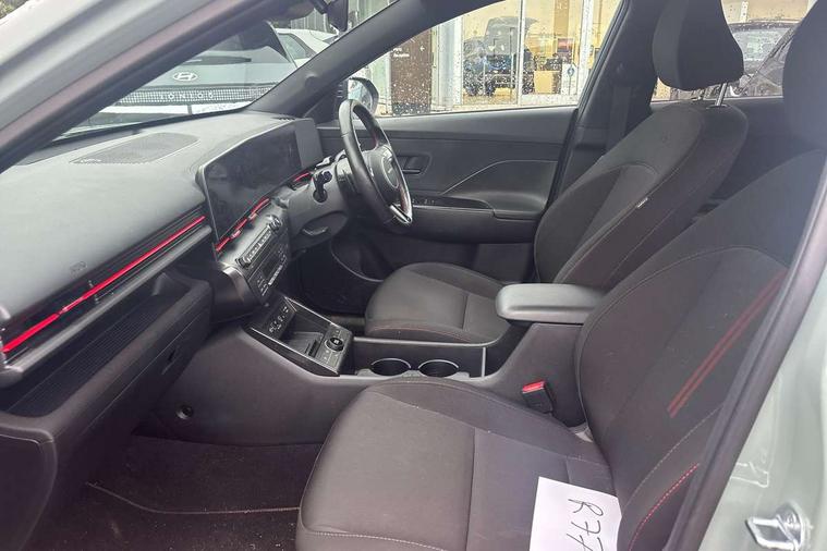 12.3" touchscreen centre console display satellite navigation with bluelink, live services and mapcare, Bluetooth connectivity with voice recognition, Digital clock, Driver status monitor (DSM), Driver supervision instrument cluster with 12.3" LCD display, eCall emergency call system, Feature on demand - Enabled, Forward collision avoidance assist (FCA 1.5) - Car, pededstrian, cycle and junction turning, Front parking sensor, HDA - Highway Drive Assist Level 1.5, Height adjustable power tailgate, Intelligent speed limit assist, Lane follow assist, Lane keep assist, Leading vehicle departure alert (LVDA), Parking system with rear camera and guidance system, PAS, Rear parking sensor, Roadside assistance, Smart cruise control with stop and go functionality, Smartphone integration compatible with Apple CarPlay and Android Auto, Windscreen washer fluid sensor and warning indicator, Wireless phone charging pad, 2 front USB C and 2 rear USB C charging points, DAB Digital radio, Speakers - Front, rear and tweeters, Steering wheel audio, phone and cruise controls, Auto dimming rear view mirror, Automatic headlights with dusk sensor, Automatic windscreen wipers with rain sensor, Body colour bumpers, Body colour exterior door handles, Body coloured wheel arch inserts, Door mirror LED indicator lights, Electric front windows with anti-trap mechanism and one touch control, Electric rear windows, Electrically adjustable and heated door mirrors, Full LED MFR headlights, Gloss black door mirrors, LED daytime running lights, LED upper and lower rear lights, Power folding door mirrors, Privacy glass - Rear windows and tailgate, Rear roof spoiler with integrated LED brake light, Rear side wing doors, Rear wiper, Roof rails, Solar glass with front door glass and windscreen, Tinted glass in front and rear doors, Windscreen auto defog function, 12V power outlet in front console, 2 zone climate control, 3 seat bench in 2nd row, 40/20/40 split folding rear seat, Adjustable head restraints, Aluminium pedals, Ambient lighting, Driver and passenger front seat pockets, Driver's seat lumbar support, Driver/passenger manual seat height adjustment, Driver/passenger sunvisors and illuminated vanity mirrors, Floor mats, Heated front seats, Heated rear seats, Heated steering wheel, Height/reach adjustable steering column, Isofix rear child seat fastenings, Leather wrapped steering wheel, LED centre interior light, LED front interior light, Luggage compartment LED lighting, Luggage shelf, Metal paint effect interior door handles, N Line cloth upholstery, Parcel shelf, Rear centre armrest, Rear centre console with air vents, Shift by wire SBW, Single front passenger seat, Vertical adjustment rear head restraints, N Line exterior design pack - Kona, Trailer wiring package - Kona, Airbag - front, front side, curtain and centre front airbag, Anti-lock brake system (ABS), Childproof rear door locks, Downhill brake control, EBD + Brake Assist, Electric parking brake, Electronic stability control, Fasten seatbelt reminder, Fixed 3 point for second row centre passenger seatbelt, Front seatbelt pretensioners, Height adjustable front seatbelts, Hill start assist control (HAC), Passenger airbag deactivate switch, Rear seat alert, Traction control, Tyre pressure monitoring system, Alarm/immobiliser, Deadlocks, Folding key, Locking wheel nuts, Remote central locking, Smart key with keyless entry and engine start/stop button, Five year annual vehicle health checks, Temporary mobility kit (TMK),