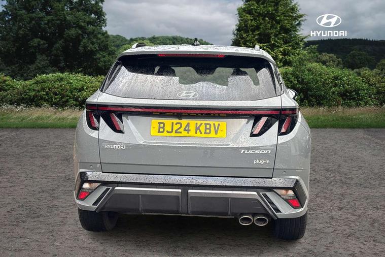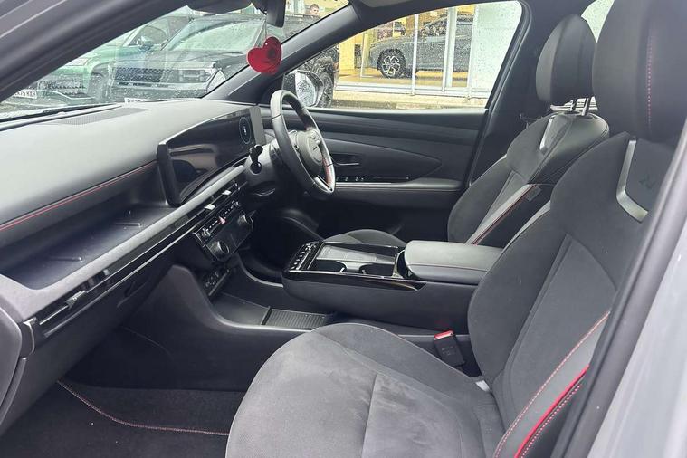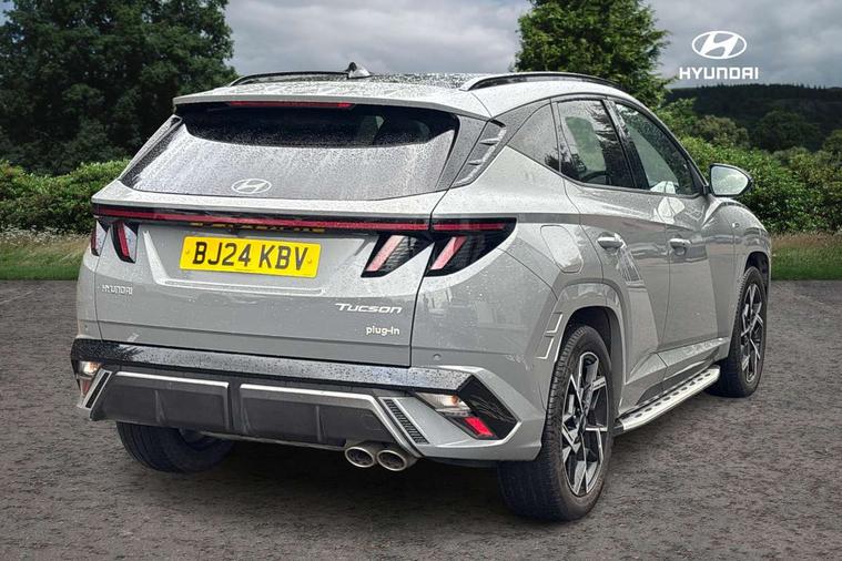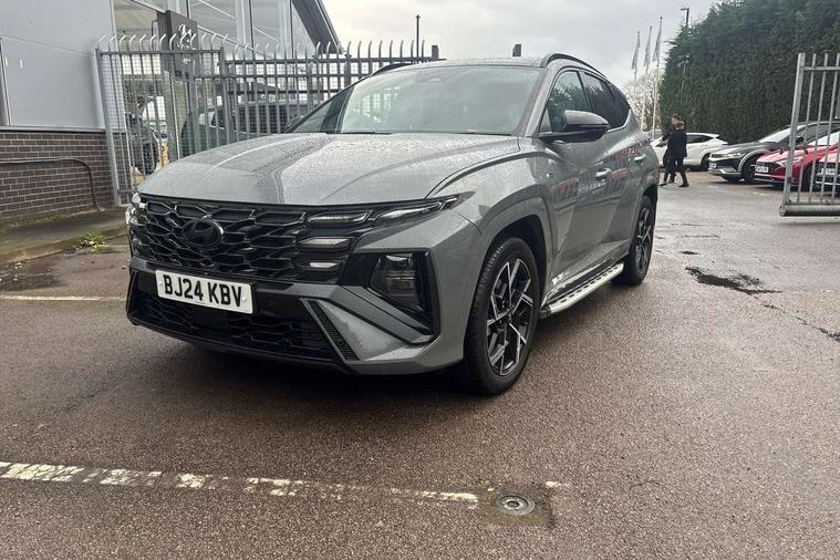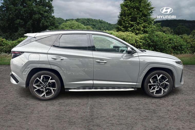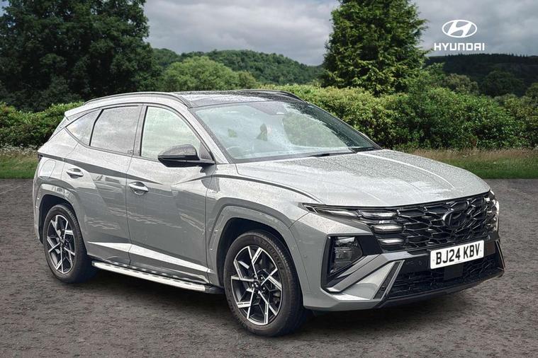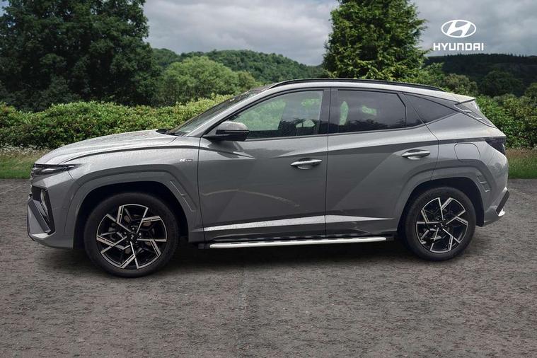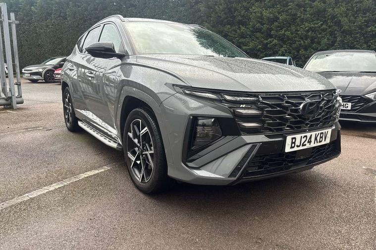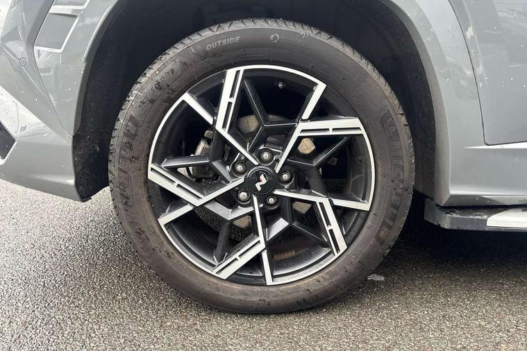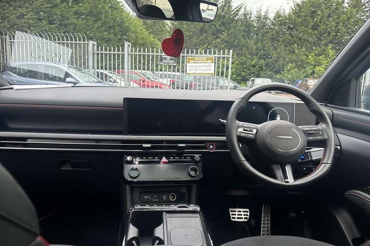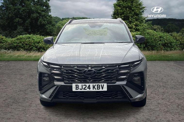 12.30" LCD display with driver's supervision instrument cluster, 12.30" widescreen navigation with bluelink and mapcare, Blind spot view monitor, Bluetooth system, Cruise control - smart adaptive speed control with stop and go function, Digital clock, Drive mode selector, Driver attention warning, E-call, Emergency stop signalling system, Forward Collision Avoidance Assist (FCA) - Car, Pedestrian and Cycle, Forward Collision Avoidance Assist Junction Turning (FCAJX), Front and rear parking sensors, Front, rear and side parking distance warning, Head up Display, Highway Driving Assist (HDA), Hyundai road side assistance, Intelligent speed limit assist, Lane follow assist, Lane keep assist, Over the air updates(OTA), Parking collision avoidance assist (PCA), PAS, Rear camera and guidance parking system, Rev counter, Smart power tailgate, Surround view monitor, Tailgate open warning light, Trip computer, Trip odometer, Voice recognition, Water temperature gauge, Windscreen washer fluid sensor and warning indicator, Wireless Apple CarPlay/Android Auto, Wireless phone charging pad, 2 front and 2 rear USB-C ports, DAB Digital radio, Krell premium audio system with 8 speakers and subwoofer, Steering wheel mounted audio/phone controls, Adjustable intermittent front windscreen wipers with aero wiper blade, Auto dimming rear view mirror, Automatic defog system, Automatic headlights with dusk sensor, Automatic windscreen wipers with rain sensor, Body colour bumpers, Body colour door mirrors with integrated indicators, Body colour exterior door handles, Body coloured wheel arches, Electric tilt/slide panoramic sunroof, Electrically adjustable, heated and power folding door mirrors, Follow me home headlights, Front and rear electric windows with anti-trap mechanism and one touch control, Front fog lights, Glossy black bumper mouldings, LED daytime running lights, LED rear lights, Matrix LED headlights, Positioning Lights - LED, Privacy glass - Rear windows and tailgate, Rear side wing doors, Rear wash/wipe with intermittent wipe setting, Roof rails, Soft touch rear door paneling, Third brake light, Tinted glass with windscreen shade band, Trailer stability assist, 12V power outlets in front console and luggage compartment, 3 seat bench in 2nd row, 40/20/40 split folding rear seat, 64 colours interior ambient lighting, Adjustable head restraints (Up and down), Cupholders in rear armrest, Door courtesy lights, Driver and passenger sunvisors with illuminated LED vanity mirrors, Driver's seat electric adjustments, Dual zone climate control, Front and rear door pockets, Front armrest with storage box, Front centre console and door bottle holders, Front passenger's seat electric adjustments, Heated front seats, Heated rear seats, Heated steering wheel, Height/reach adjustable steering column, Illuminated/air conditioned glove compartment, ISOFIX child seat anchorage points attached on outer rear seats, Leather wrapped steering wheel and gear knob, LED interior lighting, Luggage compartment lighting, Luggage cover, Luggage hooks, Luggage net, Map and reading lights, Metal pedals, N Line Leather/faux textile suede upholstery, Rear seat remote folding function, Rear side window sunblind, Reclining rear seats, Retractable load cover, Single front passenger seat, Sunglasses holder, Touch sensitive climate controls with temperature dials, TUCSON branded metal door scuff plate, Underfloor boot compartment, Ventilated front seats, N Line design package - Tucson, N Line interior design package - Tucson, Trailer wiring package - Tucson, 3x3 point rear seatbelts, Active bonnet, Airbag - Front, front side, curtain and centre front airbags, Anti-lock brake system (ABS), Brake assist function, Childproof rear door locks, Curtain airbag roll over sensor, Downhill brake control, Electric parking brake, Electronic stability control, Front and rear seatbelt reminder, Front passenger airbag deactivation switch, Front seatbelt pretensioners, Hill start assist control (HAC), Multi-Collision braking, Outer rear seatbelt height adjustment, Seatbelt height adjustment for front seats, Traction control, Tyre pressure monitoring system with individual tyre pressure display - TPMS, Vehicle stability management, Deadlocks, Immobiliser, Locking wheel nuts, Remote control central locking, Smart key with keyless entry and engine start/stop button, Speed sensitive auto door locking, Thatcham category 1 alarm, 19" Alloy wheels, Tyre repair kit,