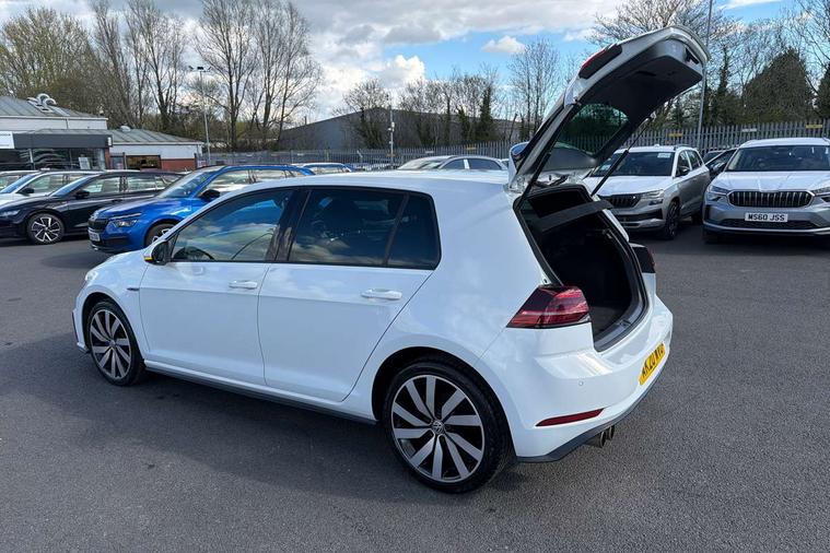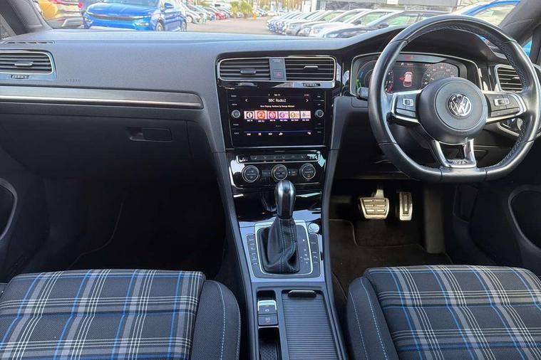 'Lights On' Reminder warning buzzer, ACC - Adaptive cruise control with front assist, forward collision warning, distance monitoring, city emergency brake and speed limiter, Active information display - 12.3" high resolution TFT display, Bluetooth telephone and audio connection for compatible devices, Brake pad wear indicator warning light, Car net app connect combined functionality of Apple CarPlay, Android Auto and MirrorLink, USB connection, audio and voice control, Discover navigation, 8"colour touch screen, 2D/3D European map data, Radio/CD, infotainment system via smartphone or tablet, Car-Net Guide and inform, Driver alert system, Driver profile selection, Driving Mode Selection with four preset modes - Eco, normal, sport or individual modes, Lane assist with dynamic light assist and traffic sign recognition, Multifunction computer with visual gear change recommendation for fuel consumption, Progressive power assisted steering, Push tank flap, Rear view camera, Speed limit display, Speedo, rev counter, electronic odometer, trip, service interval display, exterior temperature and fuel gauge, Stop/start system, Think blue trainer driver tips and journey analysis, Ultrasonic front and rear optical and audible parking sensors, Warning buzzer and light for front seatbelts unfastened, Battery regeneration during braking, Lowered sports suspension, XDS electronic differential lock, 4 X 20 watt output, 8 speakers, Composition media system, DAB Digital radio receiver, MP3/WMA compatability, Multi device interface (MDI) via USB connection, Premium USB cable in choice of either Apple or Android smartphone compatibility, SMS Functionality, Title and cover art display, USB and SD card connectivity, Volkswagen media control, 3D-LED tinted rear light clusters with indicator sweep function, Automatic coming/leaving home lighting function, Black front air intake and radiator grille with chrome insert, Black rear diffuser, Body colour bumpers, Body colour door handles, Body colour door mirrors with integrated indicators, Dusk sensor + automatic driving lights, Electric front windows, Electric rear windows, Electrically adjustable and heated door mirrors, Fully galvanised body, GTE logo on front and back, Heated rear windscreen, High level 3rd brake light incorporating LED Technology, LED headlights with dynamic light assist, Rear fog lamp, Rear tinted glass 65% light absorbing from B pillar backwards, Rear window aerial, Rear window wash/wipe with intermittent wipe, Reflectors in all doors, Sill extensions, Tailgate with integrated rear roof spoiler, Unique front C Signature LED daytime running light, Windscreen wipers/ intermittent wipe + 4 position delay, 12V socket in luggage compartment, 3 rear headrests, 4 load lashing points in luggage compartment, 60/40 split folding rear seat backrest, Bag hook in luggage compartment x 2, Black rear diffuser with chrome exhaust tailpipes in left and right, Black roof lining, Climate control - 2 zone electronic air conditioning with automatic air recirculation and allergy filter, Cooled glovebox, Cover for storage compartment in centre, Driver/front passenger seat height adjustment, Dust/pollen filter, Front + rear carpet mats, Front centre armrest with storage compartment and two rear air vents, Front cupholders x 2, Front seat back storage pockets, Front sport seats, Grab handles front x 2, rear x 2 with integrated coat hooks, GTE Badging, GTE radiator grille with blue stripe, Height and reach adjustable steering wheel, Illuminated vanity mirrors, Instrument lighting white adjustable panel illumination, Interior light delay, Isofix preparation for 2 rear child seats, Jacara cloth upholstery, Load through provision with rear centre armrest and cupholders x2, Luggage compartment lighting, Lumbar support for driver's and front passengers seat, Overhead storage box, Stainless steel pedals, Storage box in luggage compartment, Storage compartment in roof console with cover, Storage compartments in centre console, Storage compartments in front doors, Storage compartments in rear doors, Stowable luggage compartment cover, Sun visors, Three spoke multifunction leather steering wheel with GTE logo and blue stitching including gearknob gaiter, Variable boot floor, height adjustable and removable, Ambient lighting pack - Golf, Convenience Pack - Golf, Mirror pack - Golf, Winter pack - Golf, 3 rear three point seatbelts, Airbags - Driver's and front passenger's, curtain airbag, Driver's knee, front side impact and passenger's airbag deactivation switch, Anti-lock Braking System (ABS) with Hydraulic Brake Assist (HBA), Automatic post collision braking system, Blue brake callipers, Child locks on rear doors, Driver/Passenger optimised head restraints, Electronic parking brake with auto hold, Electronic stability control (ESC) including Electronic differential lock (EDL) and ASR (Traction control) with deactivation via infotainment system, Front ventilated disc brakes and rear disc brakes, Pre crash preventive occupant protection, Three point height adjustable front seatbelts with tensioners, Tyre pressure loss indicator, Alarm with interior protection and deactivation via infotainment system, Electronic engine immobiliser, Keyless entry with start/stop button on centre console, Chrome plated air vent surround, Chrome plated electric mirror adjustment light switch surround, Honeycomb black decorative inserts, Piano black decorative inserts in centre console, Unique GTE instrument cluster, 18" Marseille alloy wheels with anti theft wheel bolts, Tyre repair kit,