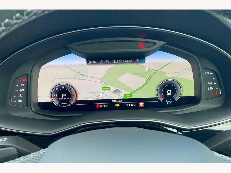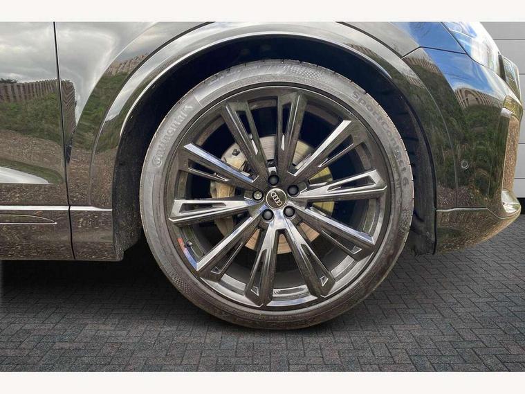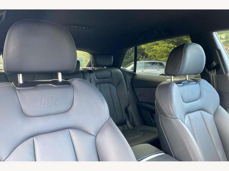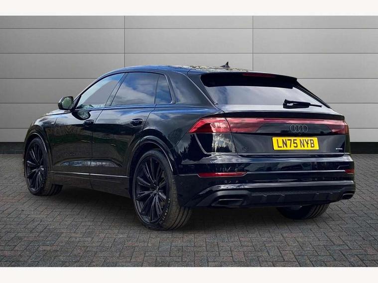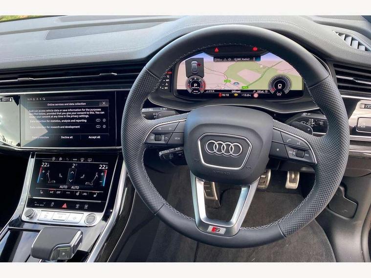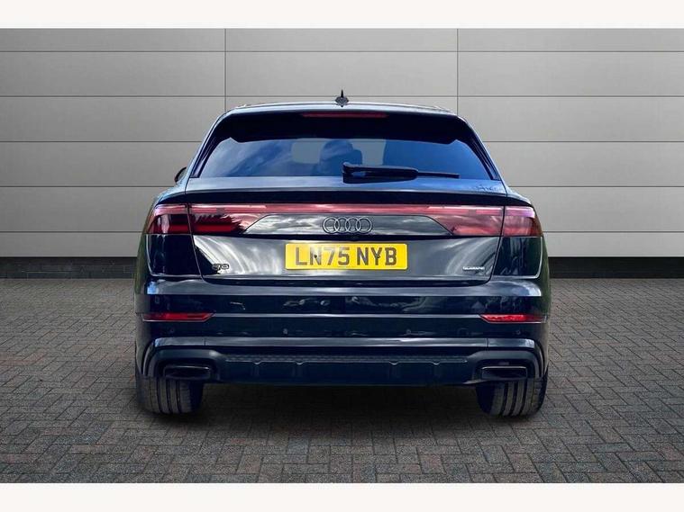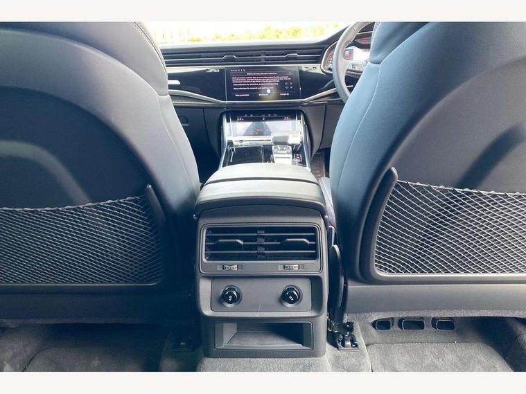 10.1" and 8.6" Dual colour touchscreens, Audi application store, Audi connect safety and service (e-call), Audi connect with Amazon Alexa Integration, Audi drive select, Audi parking system plus includes 360 degree display with front and rear sensors, Audi phone box light with wireless charging, Audi virtual cockpit - 12.3" high resolution LCD display with fully customisable instrument cluster, Automatic start/stop system, Bluetooth, Electro-mechanical PAS, Low washer fluid indicator, MMI navigation plus with MMI touch, Natural voice recognition, On board computer, Operating buttons in black, glass look with haptic feedback, Power operated tailgate, Rear view camera, Service interval indicator, Smartphone interface includes wireless Apple carplay/Android Auto, 48V Mild hybrid technology, Adaptive sport air suspension, Diesel particulate filter, Quattro all wheel drive with self locking centre differential, Audi music interface with 2 USB ports with charge and data functions, Audi sound system with 6 channel amplifier, 180 watt amplifying capacity and 10 loudspeakers including subwoofer, Aux-in socket, DAB Digital radio, 3rd brake light, Audi beam, Auto dimming frameless rear view mirror, Black exhaust tailpipes, Black single frame mask, Coming/leaving home lighting function, Electric front+rear windows, Electrically folding auto dimming/adjustable/heated door mirrors with memory function, LED side indicators and kerb view function for passenger side, Headlight washers, Heat insulating glass in windshield, LED rear light plus, LED signature daytime running lights, Loading edge protection in stainless steel, Matrix LED headlights with dynamic front and rear indicators, Platinum grey front spoiler lip and diffuser insert with honeycomb grille in black, Privacy glass - dark tinted rear and rear side windows from B-pillar backwards, Rain and light sensors, Rear side wing doors, Rear wiper, Singleframe grille surround in matte platinum grey, 2 zone automatic climate control, 3 bench rear seats in 2nd row, 4-way lumbar support for front seats, 40:20:40 split folding rear bench seat, Black cloth headlining, Comfort front centre armrest, Driver seat memory function, Electrically adjustable front seats, Front head restraints, Front/rear floor mats, Heated front seats, ISOFIX child seat mounting for front passenger seat and 2 outer rear seats with top tether child seat mounting for all 3 rear seats, LED interior ambient lighting, Luggage compartment sill protection in stainless steel, Rear centre armrest with 2 cupholders, Rear headrests, Seat cushion displaceable by 100mm in the ratio 60:40, Single front passenger seat, Stainless steel pedals, Sunvisors with illuminated vanity mirrors, Black styling pack plus - Q8, 3 point seatbelts on all seats, Audi pre sense front, Convenience key with safelock, Driver and front passenger, front side and curtain airbags, Electromechanical parking brake, Electronic Stability Control (ESC) including ABS, ASR and EDL, Front passenger airbag deactivation, Hill descent control, Hill hold assist, Predictive pedestrian protection, Seatbelt monitoring, Traction control, Tyre pressure loss indicator, Warning triangle and first aid kit, Anti theft alarm with tow away protection, Anti-theft wheel bolts and wheel loosening detection, Electronically operated child lock, Immobiliser, Keyless go with remote central locking, Polished oak trim with grey finish inlay, Tool kit, Tyre repair kit,