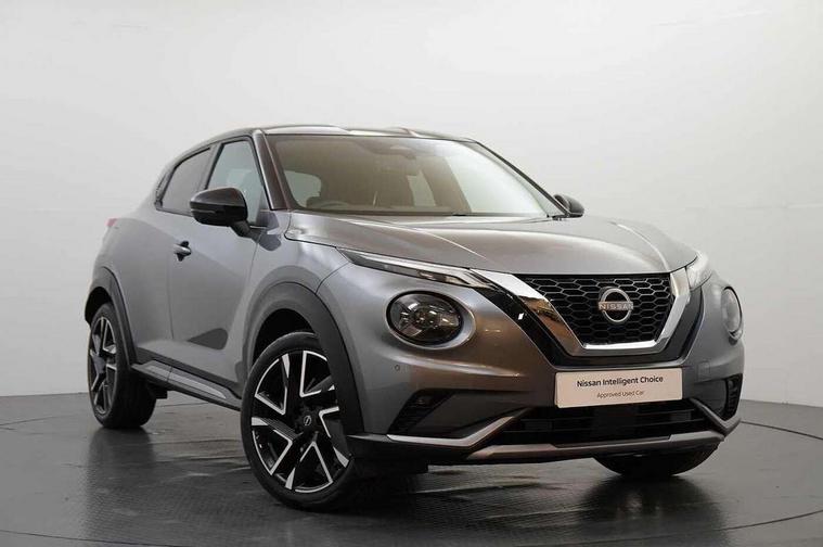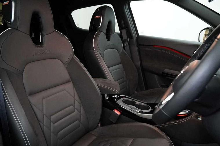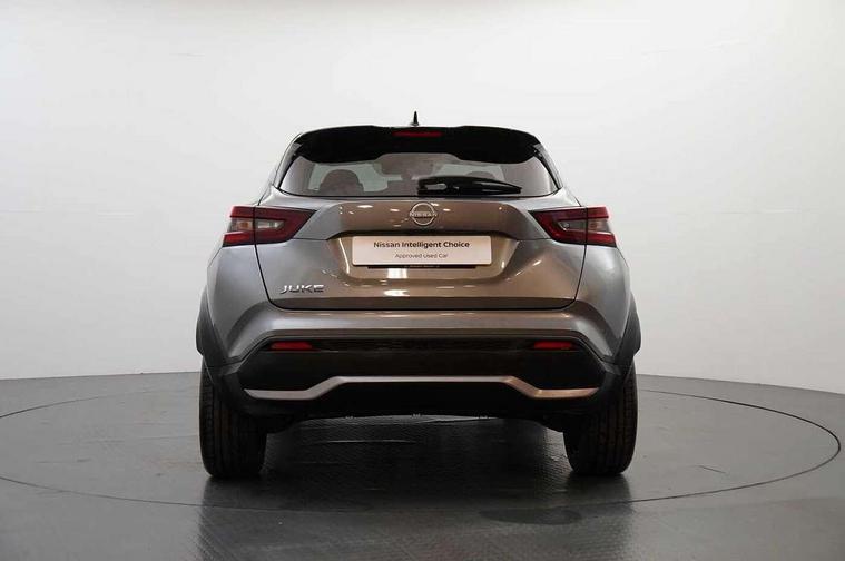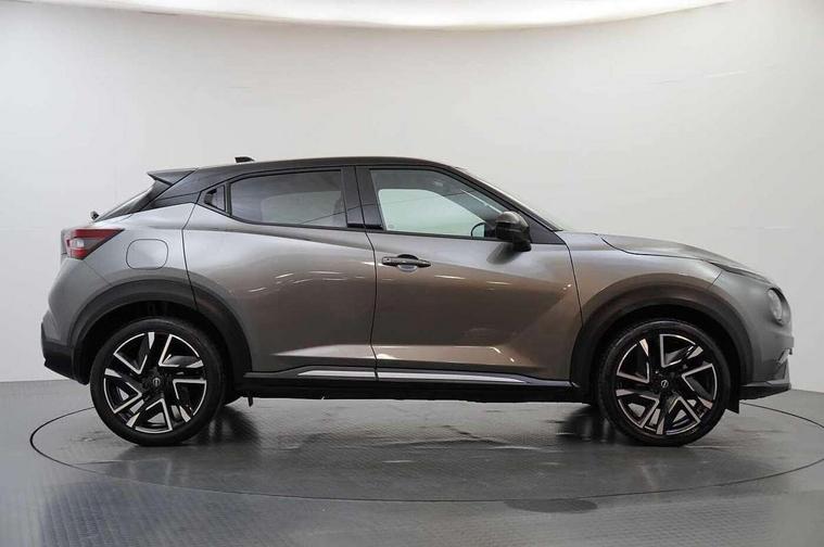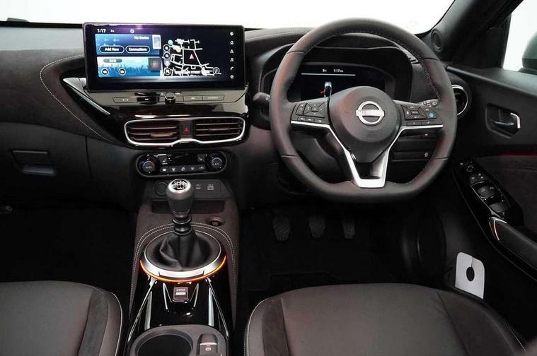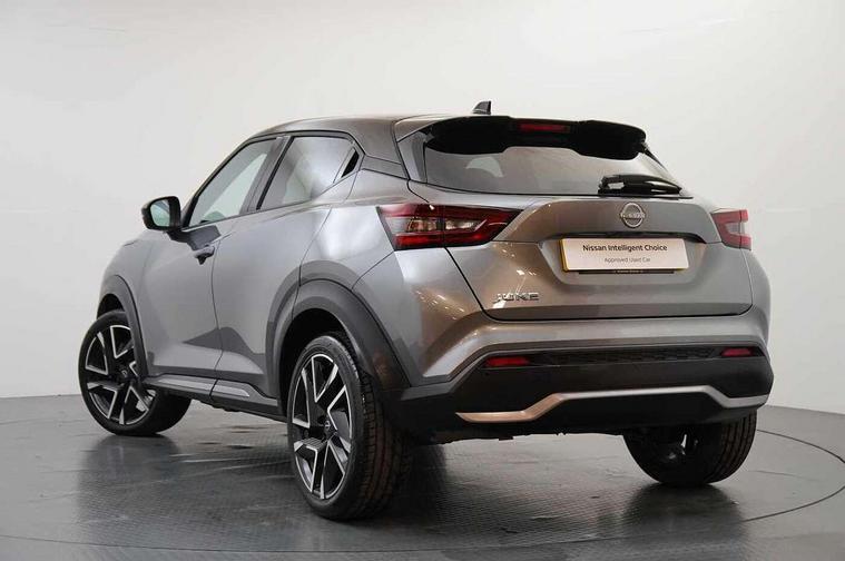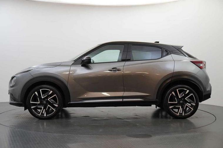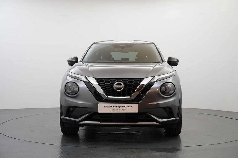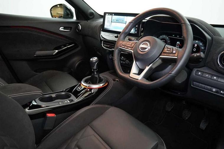 12.3" full colour TFT screen combimeter, Drive modes select (Eco, normal and sport), Emergency and breakdown call, Front parking sensor, Idle start/stop system, Intelligent driver alert system, Intelligent lane intervention, Lane departure warning system, Nissan connect 12.3" touch screen entertainment system, Nissan connect nav with TomTom traffic, Nissan connect services and Wifi connection, Outside temperature sensor, Power Steering, Rear parking sensor, Stop/start button, Traffic sign recognition, Trip computer, Voice recognition, Wireless Apple CarPlay and Google Android auto, Wireless Smartphone charger, 10 Bose speakers 6 speakers and 2 headrest speakers for driver/passenger seats, 2 X Rear console USB port, Bluetooth system, USB, Aux-in and 12V socket, Bose personal sound stage control, DAB Digital radio, Auto dimming frameless rear view mirror, Automatic hazard signal with emergency stop signal, Body colour door handles, Electrically adjustable door mirrors with integrated indicators, Follow me home headlights, Front and rear electric window with one touch driver window, Heated and auto folding door mirrors, High beam assist, LED 3rd brake light, LED daytime running lights, LED front fog lights, LED headlamps, LED rear fog lamp, LED rear lamps, One touch passenger window, Rain sensor windscreen wipers, Rear privacy glass, Rear side wing doors, Rear wiper, Roof spoiler, Shark fin roof antenna in solid Black, Three blink turn signal, 3 height adjustable rear headrests, 3 seat bench in 2nd row, 60/40 split folding rear seat, Automatic climate control, Card holder on driver sunvisor, Door ambient lighting, Driver seat back pocket, Driver side rear coat hanger, Driver/passenger sunvisors and vanity mirrors, Front and rear cabin lights, Front armrest, Front door pockets with bottle holders, Front head restraints, Front/rear passenger grab handles, Gear console ambient circle lighting, Height adjustable driver's seat, Internal chrome door handles, Leather gearshift knob, Leather steering wheel, Luggage board, Luggage space lighting, Monoform sporty seats, Multifunction steering wheel, Passenger seat back pocket, Rear door bottle holders, Single front passenger seat, Synthetic leather kneepad, Telescopic steering wheel adjustment, Two cupholders in front centre console, Two rear isofix child seat anchorage points with top tether, Welcome light and console tray ambient lighting, Advanced safety shield pack - Juke Manual, Heat pack with height adjustable passenger seats - Juke, Interior personalisation pack - Juke, Satin grey exterior personalisation pack - Juke, ABS with EBD and brake assist, Active ride control, Active Trace Control, Driver and passenger airbags, Driver and passenger side airbags, Electric handbrake with auto hold function, Electronic Stability Programme (ESP), Front and rear curtain airbags, Height adjustable seatbelts, Hill start assist, Intelligent emergency braking with pedestrian and cyclist recognition, Rear door child safety locks, Seatbelt reminder for driver/front passenger and rear seats, Three 3 point rear seatbelts, Traction control, Tyre pressure monitoring system, VDC Dynamic Vehicle Control, Alarm, Immobiliser, Intelligent key and start push button with walk away lock and approach unlock functions, Remote central locking, 19" Alloy wheels with deep 3D effect,