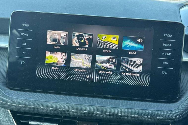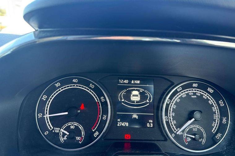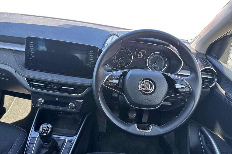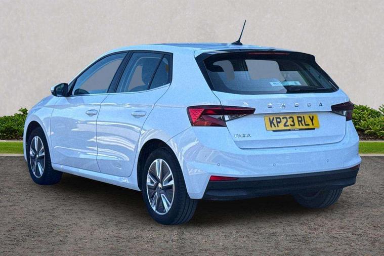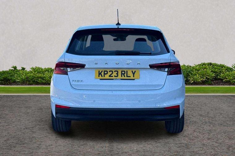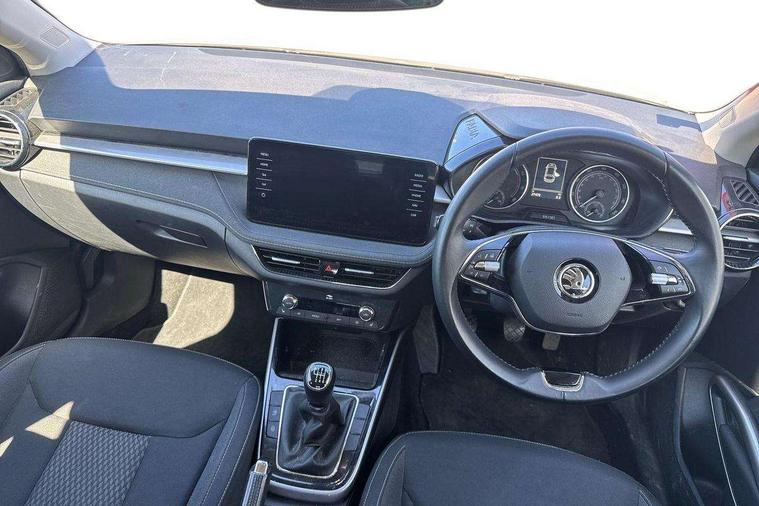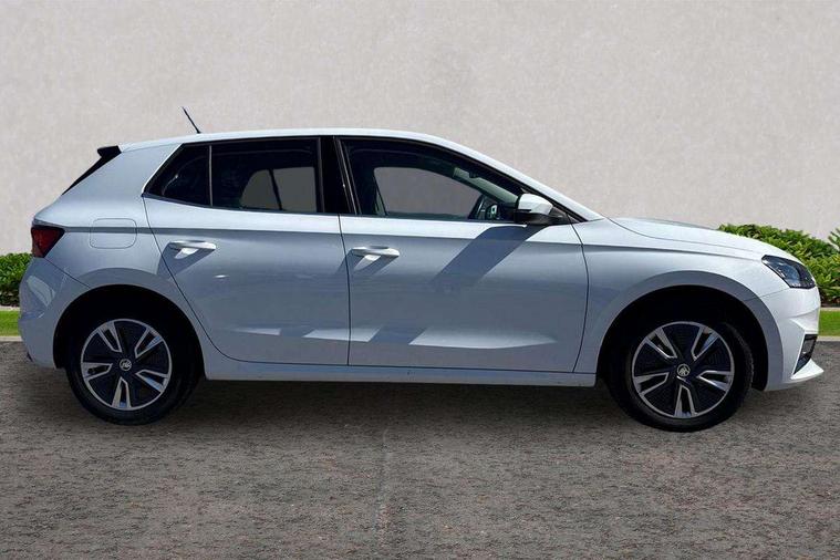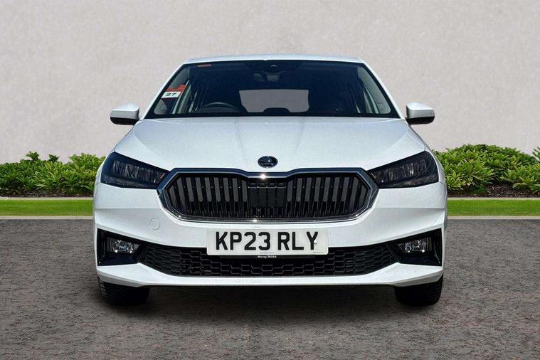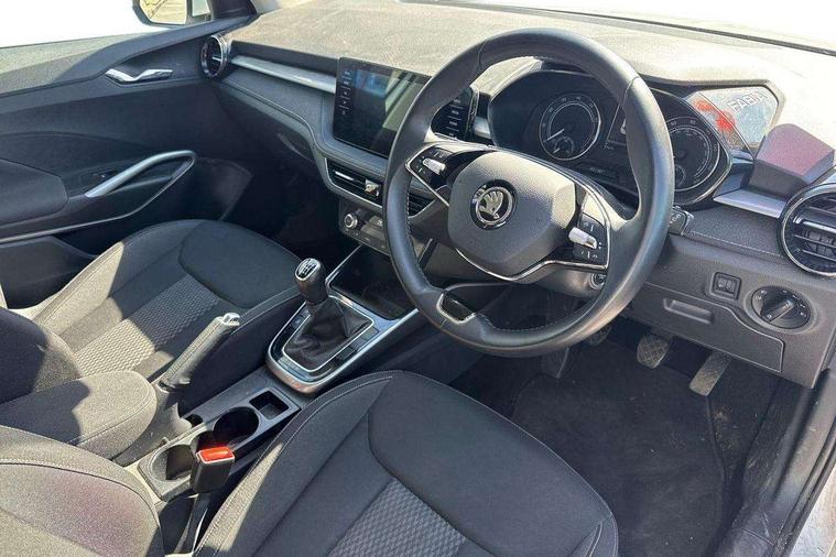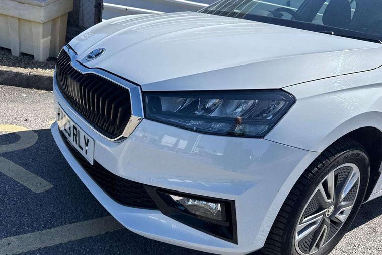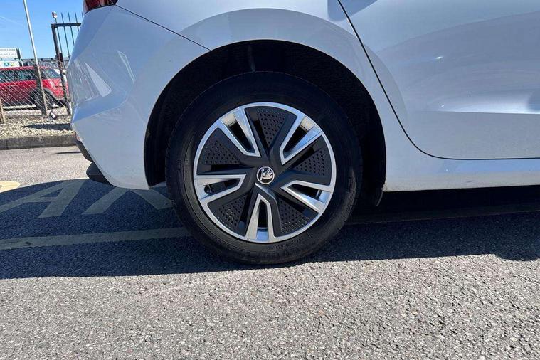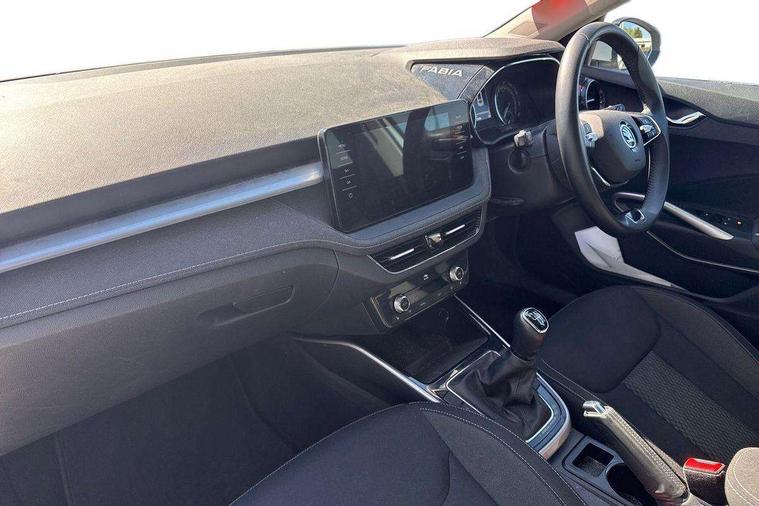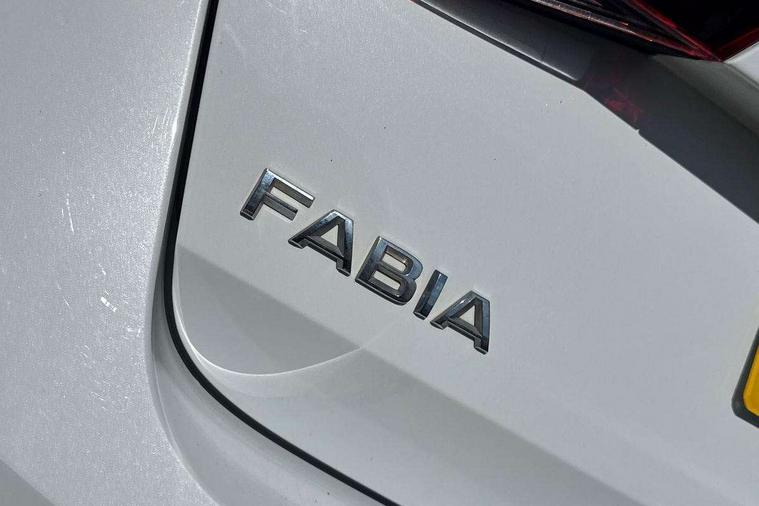 Bluetooth connection, Driver alert system - DAS, Electromechanical power steering, Exterior temperature gauge, Service interval indicator, 2x USB-C in the front (for data transmission and charging), 6 Speakers (4 in front and 2 in rear), Auxiliary socket for external MP3 player, DAB digital radio reception, Web radio, Auto dimming rear view mirror, Basic rear light, Body colour door mirrors, Body coloured bumpers, Chrome window surround, Door mirror integrated indicators, Electrically adjustable and heated door mirrors, Front and rear electric windows, Front window wiper intermittent control, Headlight range control - Automatic, Ice scraper in fuel cap, LED daytime running lights with coming and leaving home feature, Rear LED fog light, Rear side wing doors, Rear window wiper with washing nozzles, Roof mounted spoiler, SKODA tailgate lettering in chrome, Third brake light, 3 rear headrests, Backrest split and folding, Central console with fixed cup holder and storage box, Chrome handbrake release button, Comfort seats, Fabric upholstery, Front centre armrest, Gearshift knob/handle in leather, Hand brake lever handle in leather, Height adjustable front headrests, Height adjustable front seats, Height adjustable steering wheel, ISOFIX and TopTether anchorage points to the outer rear seats, ISOFIX and TopTether on the front passenger seat, Luggage compartment lighting, Manually adjustable lumbar support in front seats, Pollen filter, Rear seat bench unsplit, Removable cup holder, Single front passenger seat, Storm grey headlining, Sun visors with mirror and airbag label on passenger side, Textile floor mats, Ticket holder, Umbrella in drivers door, Ambient lighting pack 2 - Fabia Hatchback, 3-point height adjustable front seats belts with pretensioner and force limiter, Automatic warning lights in case of crash, Driver and passengers airbag with switch off function, e-Call+, ESC including ABS, MSR, ASR, EDS, HBA and XDS, Front and rear seat belt warning, FRONT ASSIST (AEB City and AEB Inter Urban), Front side airbags, Head airbags, One tone horn, Pedestrian protection, Three rear 3-points safety seat belts with pretensioner and force limiter including stop function for outer rear seat belts, Tyre pressure monitoring system, Anti-theft alarm system including immobiliser, interior monitoring, backup horn, and towing protection, Chrome edged air vents, Satin black door and side trim panel in front, Anti-theft wheel bolts protection, Super-low rolling resistance tyres,