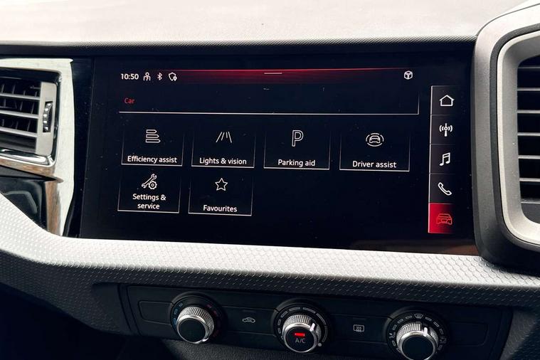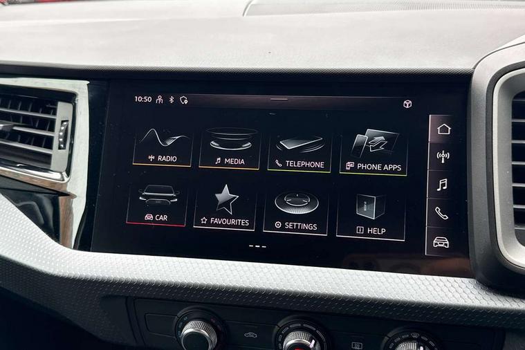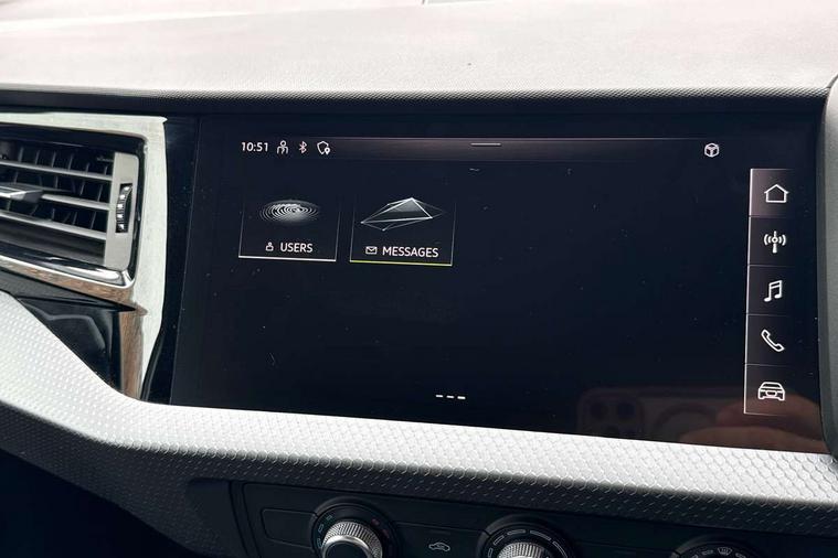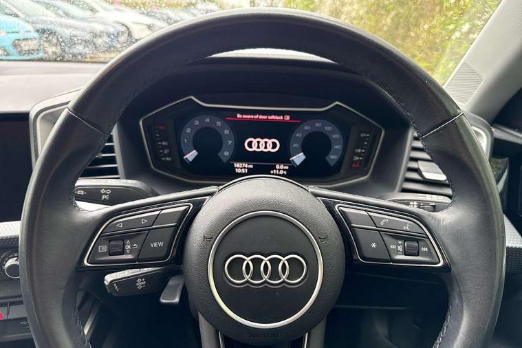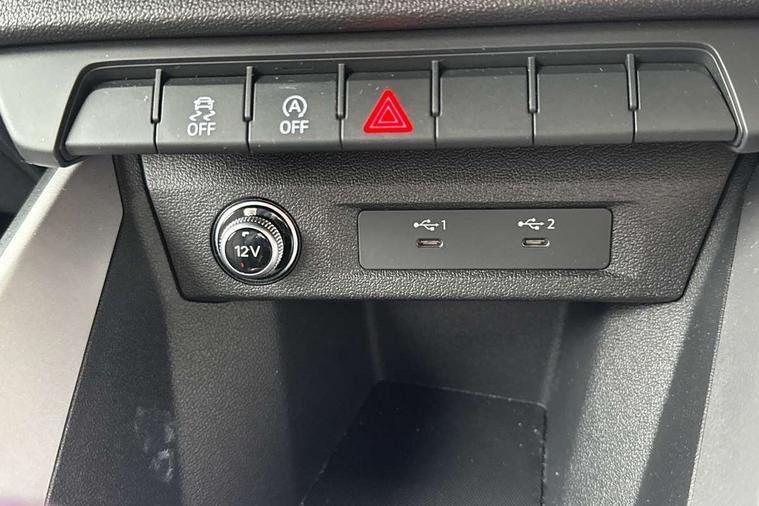 10.25" Digital instrument cluster display classis style instrument dials + speed, odometer, time, outside temperature, telephone menu + fuel level warning, Audi smartphone interface with connect compatible smartphone via USB directly MMI display + Nav, music, third party apps controlled via MMI controller, Automatic start/stop system, Bluetooth interface, Cruise control, Driver's information system, Electromechanical power steering, Emergency e-call, Lane departure warning system, Rear parking sensor, Service interval indicator, Speed limiter, Voice control system, Washer fluid level indicator, Dynamic suspension, 2 x USB type C connection points, 6 passive loudspeakers, DAB Digital radio, MMI radio plus with 10.1" colour MMI display screen and MMI touch, Auto dimming rear view mirror, Body coloured bumpers, Body coloured door mirrors, Electric front and rear windows, Electrically adjustable, heated, folding door mirrors with integrated LED side indicator, Front side air inlets in grained matt black and C frame in anthracite black, Heat insulating glass windscreen and side windows, Heated rear windscreen, High level LED brake light, LED headlights with LED rear lights + dynamic rear indicators + headlight adjustment and high beam, turning light + LED daytime running lights, Radiator grille and rear diffuser in matt anthracite black, Radiator protective grille frame in matt aluminium silver, Rain and light sensors, Rear fog lights, Rear side wing doors, Rear wiper, Side front spoiler lips in grained matt black, 12V socket in centre console with two cup holders, 3 rear seats with headrests, 3 seat bench in 2nd row, 3 spoke leather multifunction plus steering wheel, 40:60 Split folding rear seat or folded fully, Black front and rear floor mats, Door sill trims with aluminium inlay, Driver and passenger seat with manual height adjust with forward and backwards adjustment, Front head restraints, Front passenger seat, Grey cloth headlining, Height and reach adjustable steering wheel, ISOFIX child seat mounting for front passenger and outer rear seats including top tether attachment point of outer rear seats, Leather gear knob with aluminium trim, Leather handbrake grip, Luggage compartment light with front and rear reading lights, Manual air conditioning, Manually adjustable lumbar support in front seats, Novum cloth upholstery with front sport seats, Luggage compartment pack - A1, 3x3 point rear seatbelts, Audi pre-sense front with pedestrain and cyclist recognition, Brake assist function, Driver and front passenger airbag with front side and head airbags, Electronic Stability Control including ABS, EBD, ASR and EDL, Front passenger airbag deactivation switch, Hill hold assist, Manual rear child locks, Seatbelt height adjustment for front seats, Seatbelt monitoring, Tyre pressure warning light, Warning triangle and first aid kit, Anti theft alarm, Anti theft wheel bolts and loose wheel warning, Immobiliser, Remote central locking with 2 foldaway keys, Aluminium trim for control switches, air vents and digital instrument cluster, Black dashboard, Silver grey accent areas including air vents, door handle recesses and centre console in diamond paint finish, Slate grey inlays polygon structure in fine paint finish,