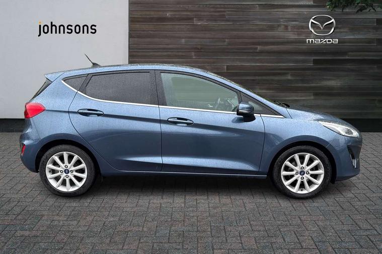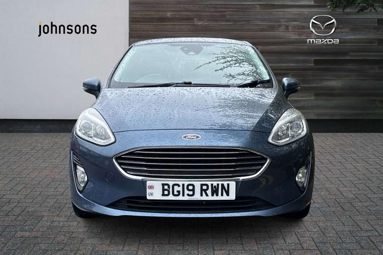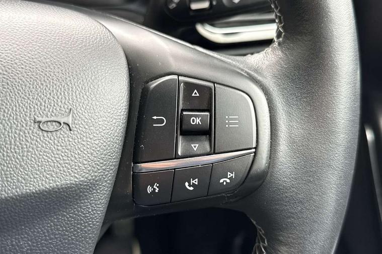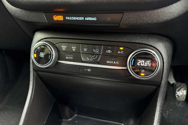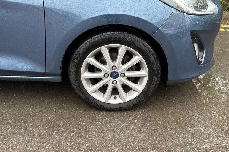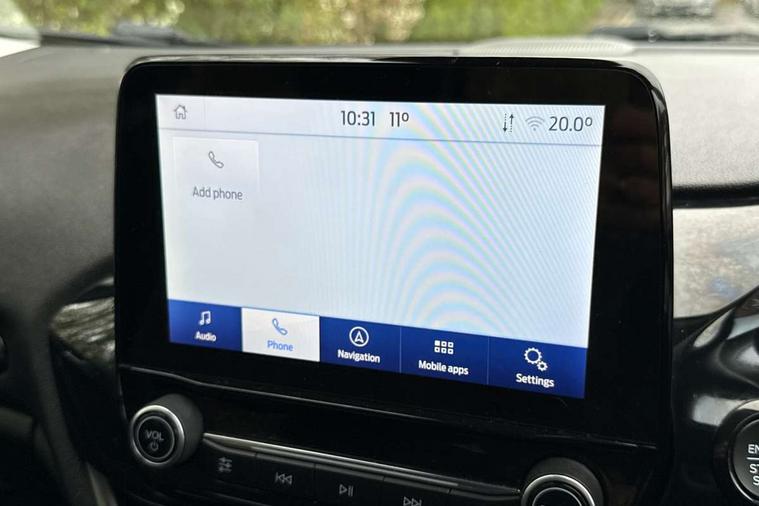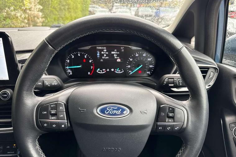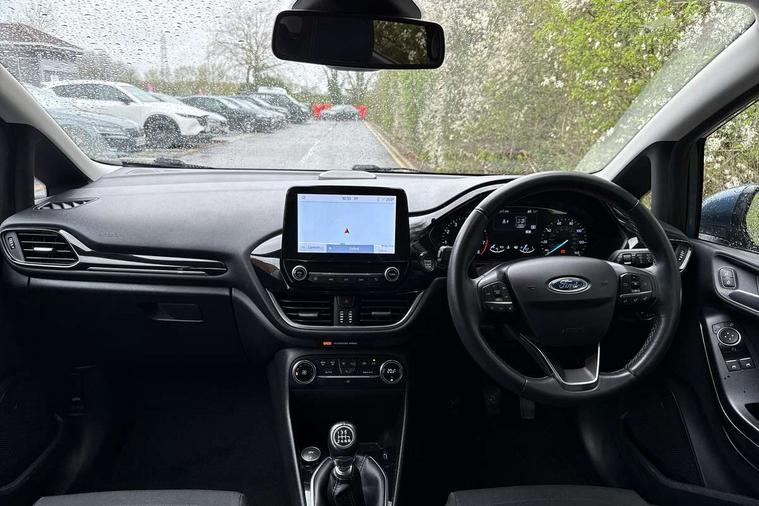 Bluetooth system, Electric power steering, Ford easy fuel, Trip computer, 2 USB ports, Auxiliary input socket, DAB Digital radio, Steering wheel mounted controls, Auto dimming rear view mirror, Automatic headlights, Body colour bumpers, Body colour door handles, Body colour electric adjustable heated door mirrors with integral indicators, Body colour rear spoiler, Chrome beltline trim, Chrome lower window surround, Cornering front fog lights, Electric front windows/one touch facility, LED Night signature to rear lights, LED rear lights, Power foldable door mirrors with puddle lights, Quickclear heated windscreen, Rain sensing wipers and auto dimming rear view mirror, Rear privacy glass, Rear wiper, Tinted glass, Upper front grille chrome surround, 12V Accessory socket in centre console, 3 spoke leather trimmed steering wheel with audio control, 60/40 split folding rear seat, Adjustable head restraints, Ambient lighting, Boot carpet, Centre console with armrest and illuminated cupholders, Chrome inner door handles, Cloth upholstery, EATC - Electronic Auto Temperature control, Footwell illumination, Front and rear velour floor mats, Front map reading lights, Front seat and rear pockets, Height adjustable driver's seat, Illuminated glovebox, Leather gear knob, Leather trimmed handbrake handle, Load area light, Luxury woven headliner, Overhead console with sunglasses holder, Pollen filter, Rake/reach adjustable steering wheel, Rear centre head restraint, Driver assistance pack - Fiesta/Titanium/Titanium X/Active B+O/Active X/ST-Line X, NCAP Pack - Fiesta, 3 point seatbelts on all rear seats, ABS+EBA, Curtain airbags, Driver and passenger airbags, Drivers knee airbag, Electronic stability control with hill start assist, Front passenger airbag deactivation, Front side airbags, Seatbelt warning, Tyre pressure monitoring system, MyKey system, Remote central locking & engine immobiliser, Thatcham Cat.1 alarm,