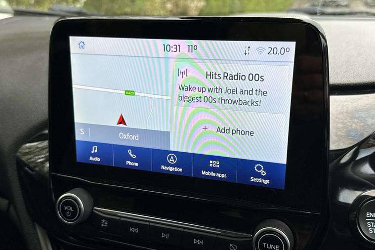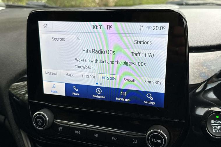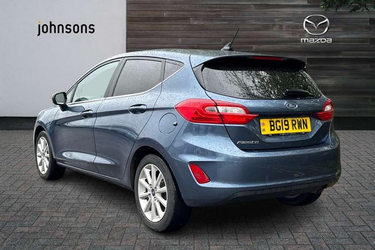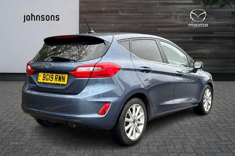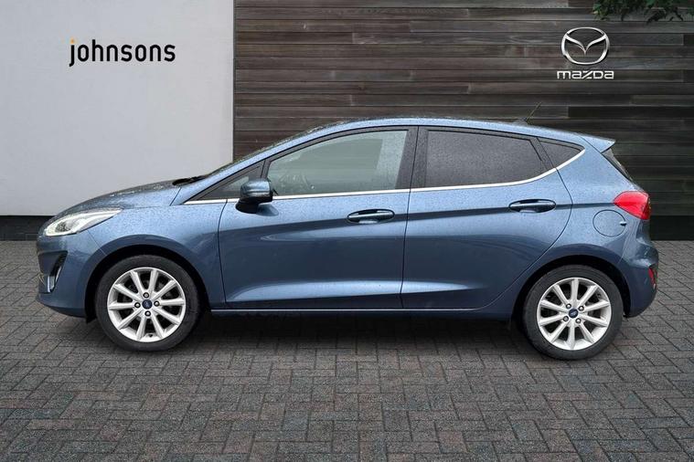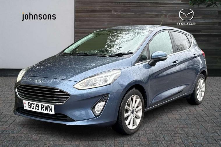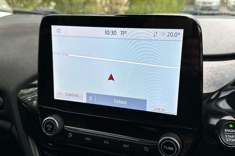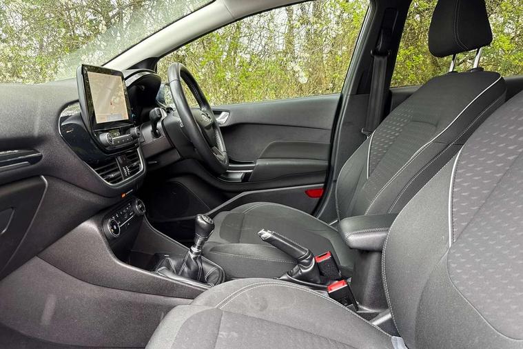 Bluetooth system, Electric power steering, Ford easy fuel, Trip computer, 2 USB ports, Auxiliary input socket, DAB Digital radio, Steering wheel mounted controls, Auto dimming rear view mirror, Automatic headlights, Body colour bumpers, Body colour door handles, Body colour electric adjustable heated door mirrors with integral indicators, Body colour rear spoiler, Chrome beltline trim, Chrome lower window surround, Cornering front fog lights, Electric front windows/one touch facility, LED Night signature to rear lights, LED rear lights, Power foldable door mirrors with puddle lights, Quickclear heated windscreen, Rain sensing wipers and auto dimming rear view mirror, Rear privacy glass, Rear wiper, Tinted glass, Upper front grille chrome surround, 12V Accessory socket in centre console, 3 spoke leather trimmed steering wheel with audio control, 60/40 split folding rear seat, Adjustable head restraints, Ambient lighting, Boot carpet, Centre console with armrest and illuminated cupholders, Chrome inner door handles, Cloth upholstery, EATC - Electronic Auto Temperature control, Footwell illumination, Front and rear velour floor mats, Front map reading lights, Front seat and rear pockets, Height adjustable driver's seat, Illuminated glovebox, Leather gear knob, Leather trimmed handbrake handle, Load area light, Luxury woven headliner, Overhead console with sunglasses holder, Pollen filter, Rake/reach adjustable steering wheel, Rear centre head restraint, Driver assistance pack - Fiesta/Titanium/Titanium X/Active B+O/Active X/ST-Line X, NCAP Pack - Fiesta, 3 point seatbelts on all rear seats, ABS+EBA, Curtain airbags, Driver and passenger airbags, Drivers knee airbag, Electronic stability control with hill start assist, Front passenger airbag deactivation, Front side airbags, Seatbelt warning, Tyre pressure monitoring system, MyKey system, Remote central locking & engine immobiliser, Thatcham Cat.1 alarm,