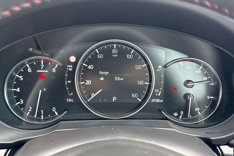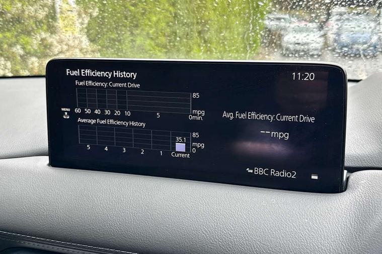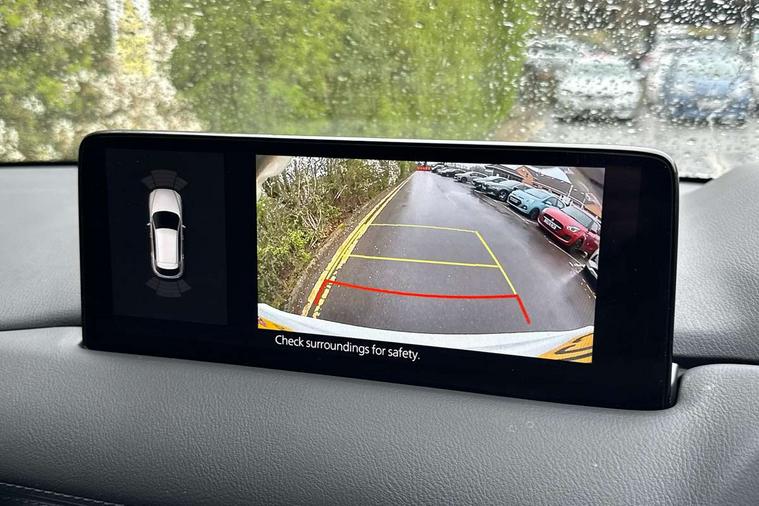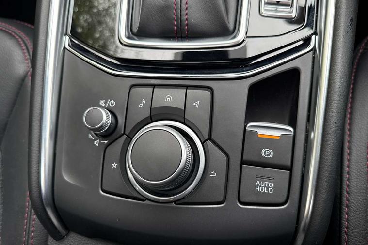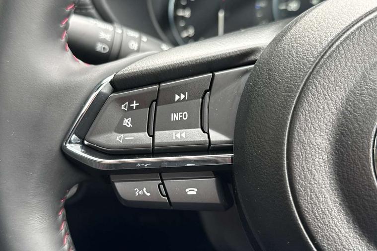 10.25" display with Mazda Connect infotainment, 7" colour TFT display, Advanced blind spot monitoring, Bluetooth connectivity with voice control, Collision prevention assist, Connected services, Cruising Traffic Support, Drive mode selector, Electric power steering, Emergency stop signalling system, Engine start/stop button, Forward collision warning, Front and rear parking sensors, Integrated navigation system, Intelligent speed assist, Lane departure warning system, Lane keep assist, Power liftgate, Qi wireless phone charging, Radar cruise control with Stop and Go, Rear cross traffic alert, Reversing camera, Service indicator, Traffic sign recognition (TSR), Trip computer, Windscreen projected colour active driving display (HUD) with memory, Wireless apple car play/android Auto, Cylinder Deactivation, i-stop, AM/FM radio, Bluetooth audio streaming, Bose premium sound system with 10 speakers, DAB Digital radio, Multimedia Commander including separate volume dial, Steering wheel mounted audio controls, Adaptive front lighting system, Auto dimming rear view mirror, Automatic headlights, Black honeycomb door trim decoration panel, Black honeycomb interior decoration panel, Body colour roof spoiler, Coming/leaving home lighting function, Door mirror integrated indicators, Dual large chrome tailpipes, Dusk sensitive headlamps, Electric front/rear windows with one touch auto up/down, Front grille in gloss black finish, Front grille in gloss black with red accent + gloss black signature wing, Gloss black B and C pillars garnish, Gloss black door mirrors, Gloss black front and rear lower bumper mouldings, Gloss black tire arch and side mouldings, High beam assist, Intermittent rear wash/wipe, LED auto levelling, LED daytime running lights, LED front fog lights, LED Headlights, LED third brake light, Power folding and heated door mirrors, Power tilt/slide sunroof, Privacy glass (rear side windows only), Rain sensing front wipers, Rear side wing doors, Red front grille accent, Red stitching and accents on door trim, knee pad, console lid, steering wheel, shift boots, Scuff plates, Shark fin antenna, Signature LED rear combination lights, Variable intermittent front wash/wipe, Windscreen wiper de-icer, 12v electrical power outlet, 3 seat bench in 2nd row, 3 stage heated front seats, 40:20:40 Karakuri fold-flat seat system, 6 way electric adjustable passenger seat, 8 way electric driver seat with lumbar support + memory, Black roof lining, Cargo room flat floor board with waterproof undertray, Driver seat power slide, recline and height adjustment, Driver, Front passenger and two rear grab handles with coat hooks, Driver/passenger front seatback pockets, Driver/passenger sunvisors + illuminated vanity mirrors (drivers with ticket holder), Dual zone climate control, Folding centre armrest with 2 cup holders, Front and rear door pockets, Front centre storage with two cupholders, Front passenger seat power slide, recline and height adjustment, Heated steering wheel, Humidity sensor, Illuminated glovebox, Interior dome light with integral spotlight, ISOFIX child seat anchorage points attached on outer rear seats, Karakuri tonneau cover, Leather upholstery, Leather wrapped steering wheel and gear knob, Luggage compartment LED lighting, Luggage compartment power outlet, Paddle shifts, Rear air vents, Rear headrests, Rear seat recline, Roof mounted sunglasses holder, Single front passenger seat, Three height adjustable head restraints, Tilt/height adjustable steering wheel, USB Connectivity (2x front Type-C, 2x rear Type-B), White interior LED illumination lighting, 3 point front seatbelts with pre-tensioners, 3 rear 3 point seatbelts, ABS, Advanced Smart City Brake Support - SCBS, Child locks on rear doors, Driver and front passenger side airbags, DSTC-Dynamic Stability and Traction Control, Dual front airbags, Electronic brake force distribution, Electronic parking brake with auto hold, ESP, Front and rear curtain airbags, Front passenger airbag deactivation, G-Vectoring control, Hill hold assist, Seatbelt reminder front and rear, Single stage passenger airbags, Smart brake support with forward obstruction warning, Tyre pressure monitoring system, Automatic door locking when moving off, Deadlock, Immobiliser, Power door locks, Remote central locking, Smart keyless entry, Thatcham Cat.1 alarm, 19" Black alloy wheels, Tyre repair kit,