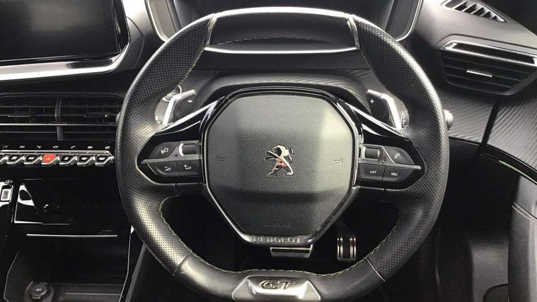 Blind spot monitoring, Bluetooth telephone facility, Connected 3D navigation, Driver attention warning, e-Toggle driving selector, Exterior temperature indicator with ice warning, Lane keep assist, Mirror screen with mirror link, apple carplay and android auto, Multi function trip computer, PEUGEOT i-Cockpit with 10" capacitive colour touchscreen, PEUGEOT i-Cockpit with compact steering wheel, PEUGEOT i-Cockpit with configurable 3D headup instrument panel, PEUGEOT SOS and assistance, Smart phone docking station, Speed limit recognition and recommendation, Start/stop system, Visio Park 1 with 180 degree Colour reversing camera, 2 front USB socket with USB-C, 2 USB sockets in rear, DAB Radio (Digital Audio Broadcasting), Voice recognition for radio, navigation and telephony features, 2 X Rear number plate lights, Acoustic windscreen, Automatic front windscreen wipers, Automatic hazard light activation upon heavy brake application, Black diamond roof, Black front wing trim with gloss black detail and GT badging, Body coloured exterior door handles, Chrome Lion Badge front and rear, Dark tinted rear side and tailgate windows, Diamond black mirror shells, Diamond black rear spoiler (roof), Electric, heated, and power folding door mirrors, Frameless electrochrome interior rear view mirror, Front bumper - Silver lower trim, Full LED headlights with smartbeam assist, Gloss black finish on B pillar, Gloss black longitudinal roof rails, Gloss black rear cluster connecting strip, Gloss black roof bars, Gloss black window surround, GT model designation badging on tailgate, Headlights left on audible warning, LED daytime running lights with 3 claw headlight with distinctive tooth design, LED front fog lamps with remote cornering function, LED side indicator lights integrated into door mirrors, LED third brake light, Model designation badges front and rear, One touch electric front/rear windows with pinch protection, Radiator grille - Dark chrome chequered and gloss black edge trim, Radiator grille - gloss black top edge trim, Rear full LED 3D peugeot signature claw effect lights with daylight function, Rear reversing lights, Rear side wing doors, Rear windscreen wiper triggered automatically in reverse gear, Stainless steel door sill scuff plates, Tailgate with heated rear windscreen and wiper blade, Trailer Stability Programme, Twin chromed exhaust pipes, Variable front intermittent wipers, Welcome lighting, Wheel arch extensions, 1/3 to 2/3 split folding rear seats, 12v power outlet - front, 12V socket, 3 seat bench in 2nd row, 8 Colour personalisable ambient lighting, Aluminium pedals, Automatic air conditioning with pollen and active carbon filter, Central front armrest with storage compartment, Driver and front passenger sport seats, Electric power steering with reach and rake adjustable steering column, Front and rear carpet mats in black with lime green stitch detail, Front centre armrest, Front LED interior light with 2 reading spotlights and rear interior light with timer, Front passenger seat manual adjustment - height, longitudinal and back rest angle, High centre console, ISOFIX child seat mounting points on passenger seat, Lime green contrast stitching to front centre console, door panels and dashboard facia, Mistral full-grain perforated leather steering wheel with Lime Green stitch detail and satin chrome 'GT' emblem, Modular boot floor, Multifunction steering wheel, Paddle shifts, Piano keys: Gloss black and chrome toggle switches to access main functions of the vehicle and touchscreen functions, Roof lining - Mistral black, Seatbelt unfastened on the move audible and visual alert for front and rear seats, Single front passenger seat, Switch for Push Button Start finished in black with chrome surround, Drive assist Plus pack - 2008, Visibility pack - 2008, 2x 2nd row ISOFIX child seat mountings, ABS (Anti-lock Braking System) with EBD (Electronic Brakeforce Distribution) and EBA (Emergency Braking Assistance), Acoustic vehicle alerting system, Active safety brake with night function/cyclists/pedestrians, Adaptive driver and front passenger airbags with passenger airbag deactivation function, Child locking functionality on rear doors, Driver/front passenger side airbags, Electric parking brake, ESP (Electronic Stability Program) + Hill Start Assist, Front and rear curtain airbags, Front and rear disc brakes, Front and rear three-point retractable seatbelts, with force limiters, Front optimised safety headrests and rear retractable headrests (x3), height adjustable, Tyre pressure sensor, Alarm system with anti-lift sensor, Automatic door locking when moving off, Deadlocks, Electronic code immobiliser, Exterior door lock x1 (Left-hand or passenger’s side), Peugeot Open and Go (keyless entry and push button start), Remote central locking, Carbon effect Dashboard, front and rear door panel finish,