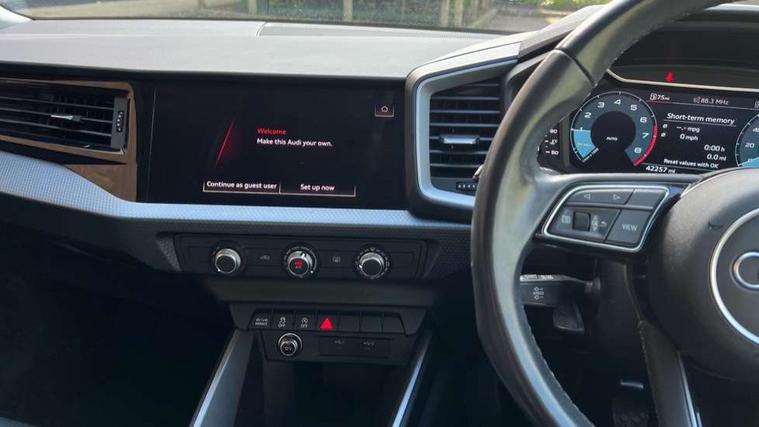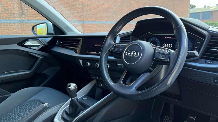 10.25" Digital instrument cluster display classis style instrument dials + speed, odometer, time, outside temperature, telephone menu + fuel level warning, Audi drive select - power steering assistance + engine, Audi smartphone interface with connect compatible smartphone via USB directly MMI display + Nav, music, third party apps controlled via MMI controller, Automatic start/stop system, Bluetooth interface, Cruise control, Driver's information system, Electromechanical power steering, Emergency e-call, Lane departure warning system, Rear parking sensor, Service interval indicator, Speed limiter, Voice control system, Washer fluid level indicator, Dynamic suspension, 2 x USB type C connection points, 6 passive loudspeakers, DAB Digital radio, MMI radio plus with 10.1" colour MMI display screen and MMI touch, Auto dimming rear view mirror, Body coloured bumpers, Body coloured door mirrors, Electric front and rear windows, Electrically adjustable, heated, folding door mirrors with integrated LED side indicator, Front side air inlets in grained matt black and C frame in anthracite black, Heat insulating glass windscreen and side windows, Heated rear windscreen, High level LED brake light, LED headlights with LED rear lights + dynamic rear indicators + headlight adjustment and high beam, turning light + LED daytime running lights, Radiator grille and rear diffuser in matt anthracite black, Radiator protective grille frame in matt aluminium silver, Rain and light sensors, Rear fog lights, Rear side wing doors, Rear wiper, Side front spoiler lips in grained matt black, 12V socket in centre console with two cup holders, 3 rear seats with headrests, 3 seat bench in 2nd row, 3 spoke leather multifunction plus steering wheel, 40:60 Split folding rear seat or folded fully, Black front and rear floor mats, Door sill trims with aluminium inlay, Driver and passenger seat with manual height adjust with forward and backwards adjustment, Front head restraints, Front passenger seat, Grey cloth headlining, Height and reach adjustable steering wheel, ISOFIX child seat mounting for front passenger and outer rear seats including top tether attachment point of outer rear seats, Leather gear knob with aluminium trim, Leather handbrake grip, Luggage compartment light with front and rear reading lights, Manual air conditioning, Manually adjustable lumbar support in front seats, Novum cloth upholstery with front sport seats, Luggage compartment pack - A1, 3x3 point rear seatbelts, Audi pre-sense front with pedestrain and cyclist recognition, Brake assist function, Driver and front passenger airbag with front side and head airbags, Electronic Stability Control including ABS, EBD, ASR and EDL, Front passenger airbag deactivation switch, Hill hold assist, Manual rear child locks, Seatbelt height adjustment for front seats, Seatbelt monitoring, Tyre pressure warning light, Warning triangle and first aid kit, Anti theft alarm, Anti theft wheel bolts and loose wheel warning, Immobiliser, Remote central locking with 2 foldaway keys, Aluminium trim for control switches, air vents and digital instrument cluster, Black dashboard, Silver grey accent areas including air vents, door handle recesses and centre console in diamond paint finish, Slate grey inlays polygon structure in fine paint finish,