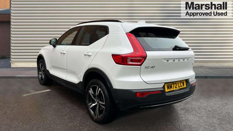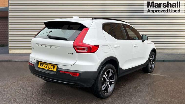 12.3" Progressive Driver Display, 9" centre console portrait touch screen, Adjustable steering wheel force, Bluetooth hands free telephone kit, E-call, eCall emergency call system, Front park assist, Google automatic services - Nav with google maps, apple carplay/android auto, voice recognition with google assistant, Hands free power tailgate, Lane keep assist with driver alert control, Oncoming Lane Mitigation, Rear park assist, Speed limiter, Speed sensitive steering, Wireless/Inductive Mobile Phone Charging, Dynamic chassis, DAB Digital radio, High performance sound, 8 speakers/250W, front USB and 2 rear type C USB, Steering wheel mounted remote controls, Adaptive brake lights with high level LED brake lights, Auto dimming interior mirror, Automatic headlamp levelling, Automatic LED Headlights + Active high beam incorporating daytime running lights, Front aluminium tread plates, Front and rear electric windows, High gloss black front and rear skid plate, High gloss black mesh front grille with high gloss black surround, High gloss black window trim, Home safe and approach lighting, Integrated roof rails in high gloss black, LED front fog lights, Puddle lights, Rain sensor with automatic windscreen wiper activation, Rear side wing doors, Rear wiper, Roof antenna, Roof spoiler, Visible VIN plate, 12V socket in front tunnel console and luggage compartment, 2-Zone electronic climate control with CleanZone air quality system and pollen filter, 3 seat bench in 2nd row, 3 Spoke tailored steering wheel with chrome trim, 60/40 versatile split folding rear seat, A-pillar parking ticket holder, Ambient front door and instrumental panel lighting, Centre console cupholders and storage, Flexible load floor and grocery bag holder, Floor mats, Front door pocket and front cupholder illumination, Front footwell illumination, Front headrests, Front reading light and theatre lighting, Front seat cushion extensions, Front tunnel pocket, Glovebox bag hook, Height adjustable passenger seat, Height/reach adjustable steering column, High gloss centre tunnel deco, Illuminated glovebox, Illuminated luggage compartment, Illuminated tailgate, Illuminated vanity mirrors, Integrated waste bin, Isofix attachments on outer rear seats, Load protection net, Multi directional lumbar support, Power driver seat with memory + exterior mirrors memory, Rear armrest / integral cup holders / storage tray, Rear headrests, Rear reading and courtesy lights, Single front passenger seat, Underfloor cargo storage, Climate pack - XC40, 3x3 point rear seatbelts, City safety with steering support with Pedestrian + cyclist + front collision warning with full auto brake and rear auto brake, Drivers knee airbag, Dual stage driver/passenger airbags, Electronic parking brake with auto hold, First aid kit, Front and outer rear seatbelt reminder and pretensioners, Front seats SIPS airbags, Hill descent control, Hill start assist, Inflatable curtain, Passenger airbag cut-off device, Power child locks on rear doors, Road sign information display, Run off Road Mitigation, Run off Road Protection, SIPS (Side Impact Protection System), Slippery road and hazard light alert, Stability and Traction Control with Spin control, Engine Drag Control and Corner Traction Control, Tyre pressure monitoring system, Vehicle deceleration control with Anti-lock Brake System, Electronic Brake Distribution and Emergency Brake Assist, Warning triangle, WHIPS whiplash protection system - front, Anti-theft alarm including immobiliser/volume sensor + level sensor, Care key with user defined top speed, Key integrated remote control central locking + fuel flap with deadlocking system and auto open/close power windows, Keyless drive includes keyless entry and keyless start, Locking wheel nuts, Private locking for tailgate,