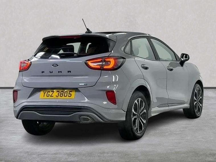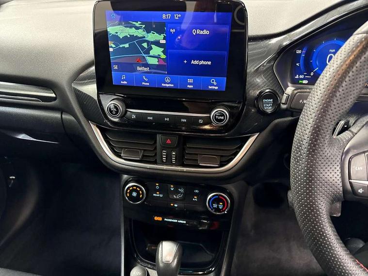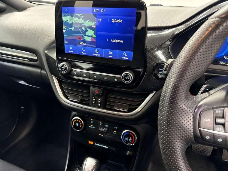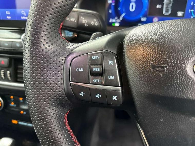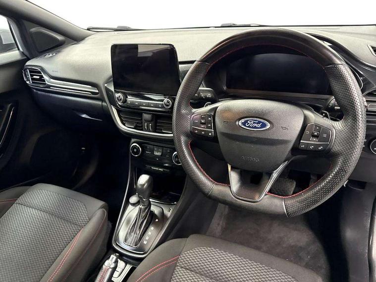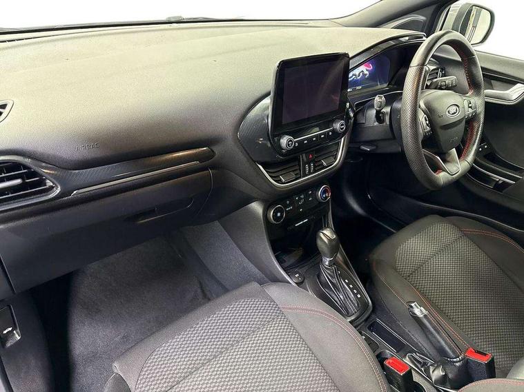 Driver impairment monitor, Emergency call service, Ford easy fuel, Full digital 12.3" instrument cluster, Lane keeping aid with lane departure warning, Power assist steering, Power start button, Rear parking sensor, Selectable drive modes(Normal, Eco, Sport, Slippery and Trail), Speed sign recognition, Sport suspension, Automatic headlights with auto high beam, Automatic rain sensing wipers, LED rear lamps, Power foldable heated door mirrors with puddle lamps, Projector headlamps with LED day time running lights and front fog lamps, Quickclear heated windscreen, Rear side wing doors, Rear wiper, ST-Line body styling kit with unique grille and large body colour rear spoiler, Third brake light, 3 seat bench in 2nd row, Centre console with armrest and stowage, Ford megabox extended bootspace, Front and rear head restraints, Front floor mats, Manual 2 way passenger seat adjustment, Manual 4 way driver seat adjust with lumbar adjustment, Single front passenger seat, ST- Line cloth trim with red stitching, ST-Line flat bottomed sensico leather steering wheel with leather handbrake and aluminium gear knob, Ford SYNC 3 navigation pack - Puma, 3 rear seatbelts, Child safety lock, Electronic stability control (ESC) and hill start assist, Pedestrian/cyclist detection & post-collision braking, Pre collision assist system, Tyre pressure monitoring system (TPMS), Thatcham alarm,