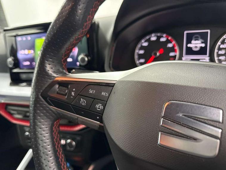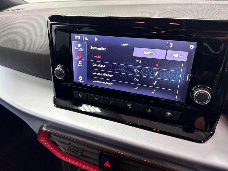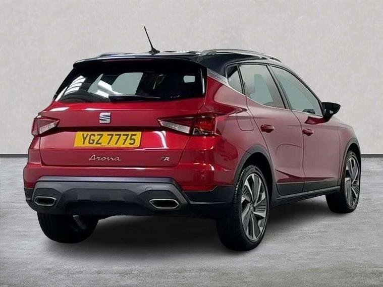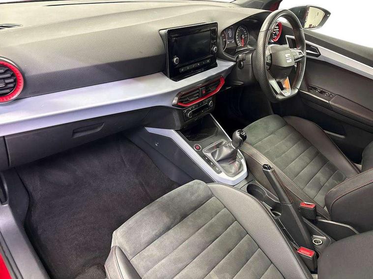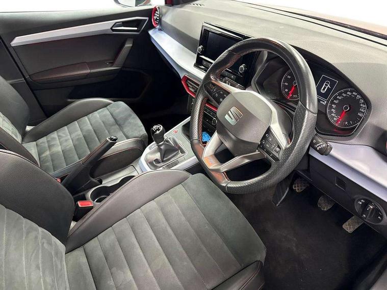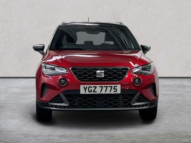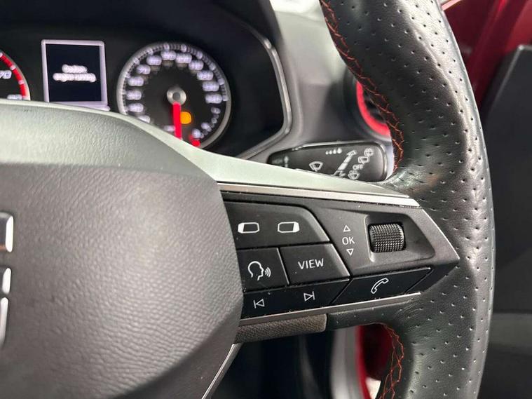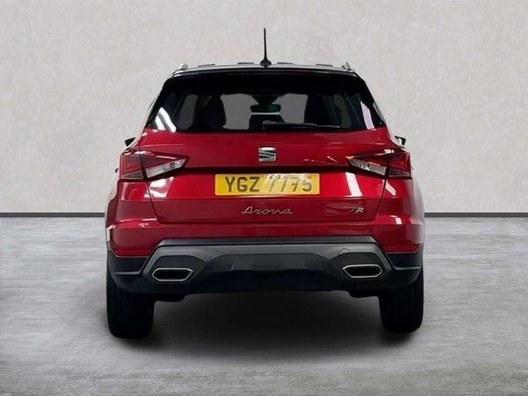 'Lights On' Reminder warning buzzer, Analogue cockpit with physical dials, Digital clock, E-call, Electric speed sensitive power steering, Full Link Smartphone Integration with Mirror Link, Apple Car Play, Google Android Auto with USB Type C cable for Apple and Android compatibility, Lane keeping system, Low fuel warning light, Outside temperature display, Rear parking sensor, RPM counter, Seat connect with safety, service and remote, SEAT Drive profile - Four different models normal-sport-eco-individual, steering response, throttle response, Trip computer, Wireless phone charger, Bluetooth interface for hands free and audio streaming, DAB digital radio and AM/FM radio, Media system with 8.25" colour touchscreen with USB port (type c), Steering wheel mounted audio controls, Anti theft roof antenna, Automatic activation of hazard warning lights, Body coloured bumpers, Body coloured door handle inserts, Chrome roof rails and window surrounds, Dark tinted rear windows, Dimming rear view mirror, Electric front/rear windows, Electrically adjustable and heated door mirrors, Front fog lights with cornering function and rear fog light, FULL LED automatic headlights with dynamic headlight range control, coming and leaving home, LED daytime running lights, LED rear tail lights and licence plate lights, Protective side mouldings, Rear side wing doors, Rear spoiler, Rear window wash/wipe, Roof colour door mirrors, Third brake light, Twin exhaust pipe styling hidden exhaust pipe, Visible VIN plate, Windshield wiper with intermittent control and potentiometer, 2 cupholders, 3 seat bench in 2nd row, 60/40 split folding rear seat, Aircare filter, Black interior roof, Double boot floor, Driver sunvisor with covered mirror + card holder, Dual zone climate control, Front comfort seats, Front courtesy light with 2x front and 2x rear reading lights, Gear shift indicator, Height adjustable front seats, Height/reach adjustable steering column, Illuminated boot, Instrument lighting with brightness control, Interior ambient lighting, Interior light in footwell, central console and door panel, ISOFIX points in outer rear seats with top tether anchorage points, Microsuede cloth upholstery, Passenger sunvisor with vanity mirror, Perforated flat bottomed leather steering wheel/gear knob/handbrake with red stitching and FR logo, Single front passenger seat, Two front and three rear height adjustable headrests, Interior chrome pack - Arona, 3 point seatbelts on all rear seats, ABS, Active front headrests, Child locks on rear doors, Driver and front passenger airbags with front passenger airbag de activation, front side and curtain airbags, Electronic stability control, Emergency Brake Assist (EBA) and front assist, Front and rear seatbelt reminder, Hill hold control, Multi-Collision braking, Tiredness recognition system, Traction control, Tyre pressure monitoring system, Alarm with back-up horn, Electronic engine immobiliser, KESSY Keyless entry and go, Locking wheel bolts, Remote central locking + deadlocks, Tow away protection, Titan black dashboard,