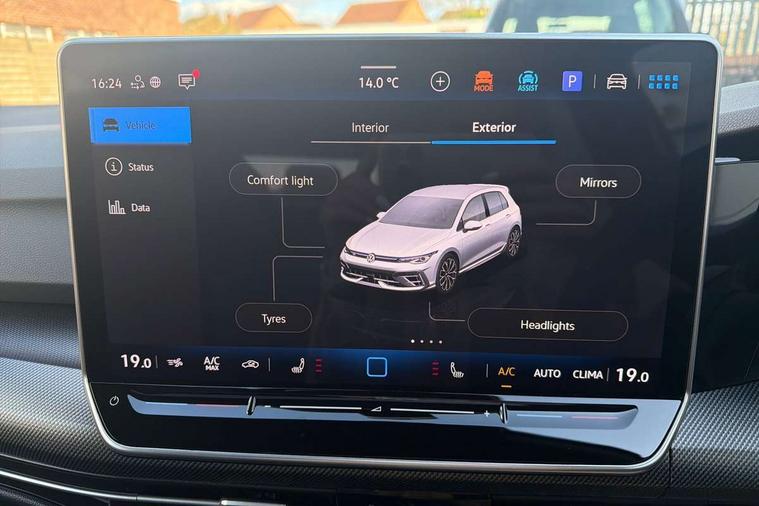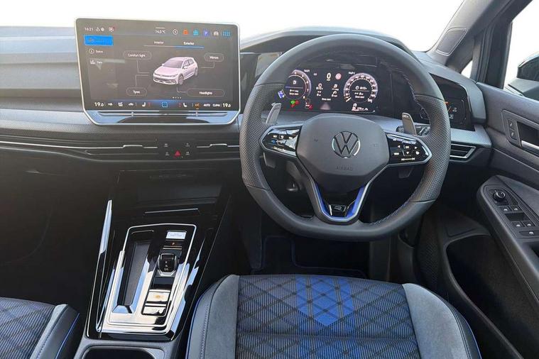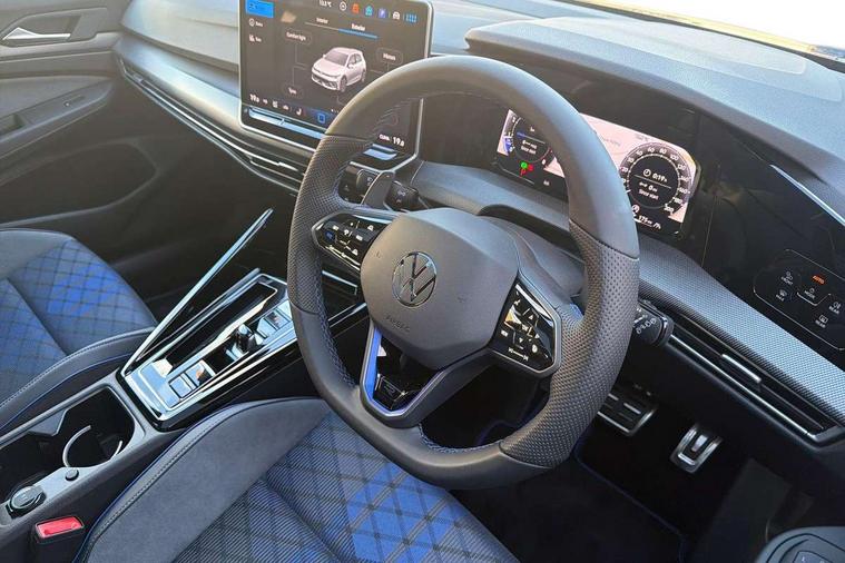 Activated carbon canister, Adaptive cruise control (ACC), Advanced driver attention and drowsiness monitor, Dynamic road sign display, E-Sim card for online connectivity, eCall emergency call system, Electronic maximum speed limit increased to 270 km/h, includes driving Modes 'drift' and 'special', larger roof spolier and GPS laptimer + G-Meter, Multi-color Digital cockpit pro, selection of different info profile possible, Multifunction front facing camera for distance control, Navigation system, Oncoming vehicle braking when turning including swerve support, Progressive steering, Side assist blind spot lane change system, rear traffic alert and exit warning system, Speed limiter, Speedo, rev counter, electronic odometer, trip, service interval display, exterior temperature and fuel gauge, Traffic jam assist, Voice enhancer and voice control, Warning signal and warning light for front and rear seatbelts not fastened, We connect plus preparation, We connect preparation, Wireless app connect, All wheel drive - 4Motion, Petrol Particulate Filter, Start-stop system with battery regeneration (recuperation - energy recovery during braking), XDS electronic differential lock for improved traction and handling, 2 USB C ports in front, 2 USB charging sockets on the centre console in the rear charging capacity upto 45W, Digital radio reception (DAB), Diversity antenna for FM reception, Gaming platform via car app, Infotainment system with 12.9" display, Mobile phone interface with inductive charging feature, 3rd brake light, Auto dimming rear view mirror, Automatic headlamp activation with Coming home and Leaving home feature, Black badge on B-pillar, Black mirror caps, Black strips on radiator grille and headlights, Body colour door handles, Darkened headlights, Darkened R Logos and VW logos in front, rear and on fender, Exterior mirrors convex on the left and aspherical on the right, Front and rear electric windows, Front fog lamps and cornering light, Heat insulating windshield made of laminated glass, Illuminated lighting animation with wake up/goodbye scenario, LED matrix headlights with ambient light V2, advanced high beam, dynamic range contol with cornering, LED rear lamp with indicator, poor weather, LED separate daytime running light, Light assist with High beam control, R name plate, Rain sensor, Rear fog light on one side and reversing lights on both sides, Rear side wing doors, Rear tinted glass 65% light absorbing from B pillar backwards, Rear windscreen washer and wiper with interval delay, Remote electrically foldable door mirrors, puddle lights and reverse activated passenger's door mirror, Welcome light with surround lighting, 12V socket in front centre console, 12V socket in luggage compartment, 3 rear head restraints, 3 seat bench in 2nd row, 30 colour ambient lighting, illuminated center console storage compartment in front, Air care climatronic 3 Zone automatic climate control with rear air conditioning control panel, Aluminium gearshift handle, Brushed stainless steel pedals, Chrome plated radiator grille inserts, air vent surrounds and light switch surrounds, Entry lights, Front + rear black carpet mats, Front centre armrest, Integrated front head restraints, ISOFIX anchors for child seats on outer rear bench seats and on front passanger seat compatible for i-Size, Luggage compartment lighting, Rear cupholder and loadthough, Single front passenger seat, Soul black instrument panel, Soul black roof lining, Split folding backrest with centre armrest and unsplit rear seat bench, Sun visors with illuminated vanity mirrors, Driver assistance pack - Golf Estate/Hatchback Auto, R styling pack - Golf, Technology park and comfort pro package - Golf Hatchback, 3 point height adj front seatbelts + pretensioners, 3 rear three point seatbelts, ABS, Autonomous emergency braking front assist with pedestrian and cyclist monitoring, Child locks on rear doors, Driver and front passenger airbag with front passenger airbag deactivation, Electronic parking brake with auto hold, ESC (Electronic Stability Control), Extended pedestrian protection measures, Front and rear black brake calipers with darkened R-logo, Hill start assist, Rear disc brakes, Two tone horn, Tyre pressure loss indicator, Volkswagen roadside assistance, Anti theft wheel bolts, Preparation for alcohol interlock, Sporty vehicle dynamics, Tool kit for tyre mobility set, Tyre mobility kit Includes 12V compressor and tyre sealant, Wheel hub cover with darkened R-logo,