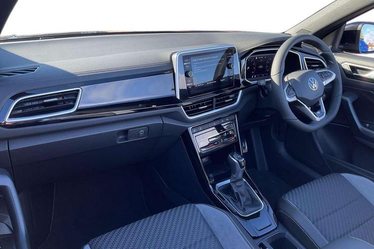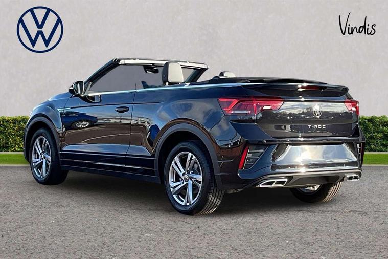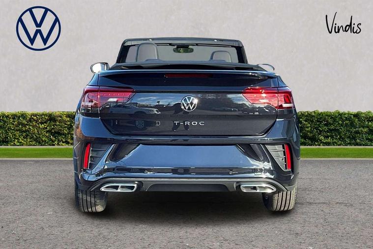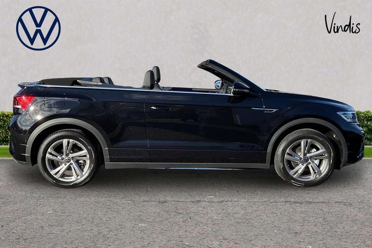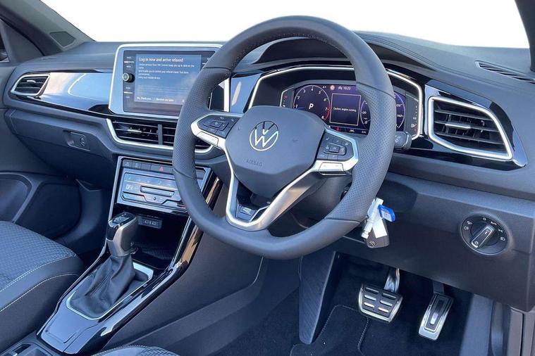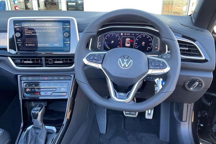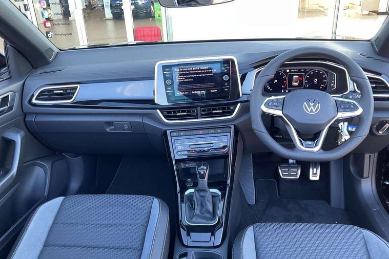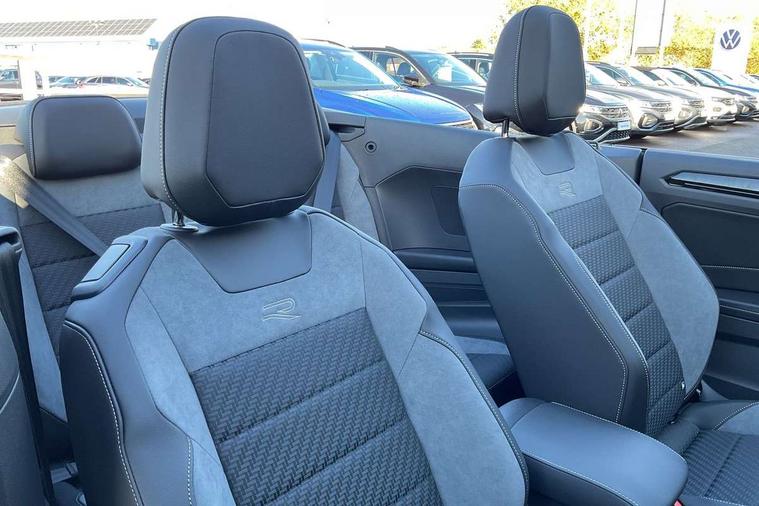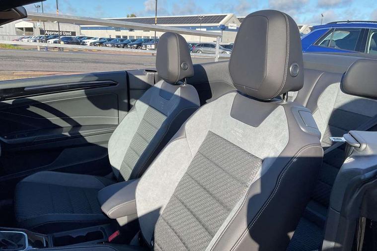 Adaptive cruise control and speed limiter, Advanced driver attention and drowsiness monitor, Brake pad wear indicator, Car information display, Digital Cockpit Pro with 10.25" Display, Driver tips and journey analysis, Dynamic road sign display, Emergency call service, Modified key software - reduce switch off time for key status change to Long no motion, Multifunction computer with visual gear change recommendation for fuel consumption, Multifunction front facing camera, Online services, Park assist including front and rear parking sensors, Speedo and rev counter, electronic odometer, trip, service interval display and exterior temperature gauge, Start/stop system with brake energy recovery, Tailgate/trunk lid release from outside, Warning sound and light for front seatbelts unfastened, Wireless App-Connect for apple Carplay and android Auto, Digital radio reception (DAB), Diversity antenna for FM reception, Mobile phone interface with inductive charging feature, Music playback - MP3, WMA and AAC files, SMS functionality - read, compose and send SMS messages using touch-screen display, Title and cover art display, USB-C Interface and USB charging socket, We Connect and We Connect Plus functionality, Ambient lighting with logo projection, Auto dimming interior rear view mirror, Automatic hazard lights activation under emergency braking, Automatic headlight control with LED separate daytime running lights with coming/leaving home function, Black roof, Body colour door handles, Body colour rear boot spoiler, Chrome effect left and right trapezoid exhaust tailpipe fascia surround, Chrome trim on upper and lower radiator grille, Dark red rear combination lamps in LED technology, Dusk sensor, Exterior mirrors aspherical on driver side, convex on front passenger side, Heat insulating glass windscreen, LED 3rd brake light, LED rear number plate lights, Power operated canvas convertible top, Power windows with comfort operation and circuit breaker, R-Line design body coloured bumpers, Rain sensor, Rear boot, Rear exhaust tailpipe, Rear fog light on one side and reversing lights on both sides, Remote electrically foldable door mirrors, puddle lights and reverse activated passenger door mirror, Volkswagen roundel, Windscreen wiper with intermittent wipe light, Without exterior ambient lighting, 12V socket in centre console storage area, 2 LED front reading lights, 2 seat bench in 2nd row, 50:50 Split folding rear seat backrests with fixed rear seat bench, Air care climatronic air conditoning system with active combination filter and 2-zone temperature control, Black door lower parts with chrome trim, Chrome plated surround to light, mirror and window switch, Door and side trim panel with leatherette insert, Easy entry backrest release, Front and rear carpet mats with black stitching, Front centre armrest, Front cupholders x 2, Front door pockets, Front seat back storage pockets, Front sports comfort seats with manual height adjustment, Heated leather wrapped multi function sports steering wheel with tiptronic, Height/reach adjust steering wheel, Inserts of front seats and outer rear seats in ArtVelours titan black, Instrument lighting, white adjustable panel illumination, Interior light delay, Interior light in footwell, Interior lighting with switch off delay and contact switches on all doors, Interior white ambient lighting and surround lighting, Isofix child seat preparation, Lockable glove compartment with light, Luggage compartment lighting, Power adjustable lumbar support in front, Rear head restraints, Single front passenger seat, Stainless steel pedals, Sun visors with illuminated vanity mirrors, Unique R Line door sill protectors, Driver assistance pack without proactive passenger protection - T-Roc Cabriolet DSG, 2 x 3-point seatbelts/outer rear seats with ECE label, Driver and front passenger airbag with front passenger airbag deactivation, Driver and front passenger safety-optimised head restraints, Drivers seatbelt reminder, Electronic parking brake, Electronic Stability Control (ESC) including ABS, ASR and EDL, Front and rear disc brakes, Front assist with autonomous emergency braking, Pedestrian monitoring, Predictive pedestrian protection, Rigid safety cell with front and rear crumple zones, Side airbag/thorax airbag system, for front passengers, Three point height adjust front seatbelts + pretensioners, Two tone horn, Tyre pressure loss indicator, Volkswagen roadside assistance, Anti-theft alarm system with interior protection and central locking system with SAFELOCK, radio remote control and 2 remote control folding keys, Electronic engine immobiliser, Trims for alloy wheels,