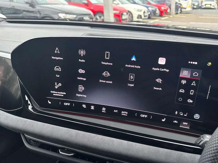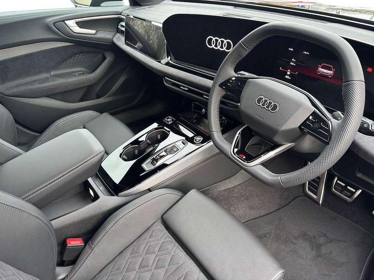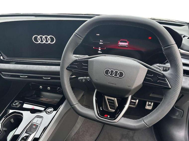 Adaptive cruise control, Advanced driver attention and fatigue montior, Audi application store, Audi assistant, Audi connect emergency call and service, Audi drive select, Audi virtual cockpit plus with 11.9" OLED colour display, Automatic start/stop system with coasting functionality, Camera based traffic sign recognition, Intersection assist, Lane change assistant with exit warning system, rear cross traffic alert and rear turn assist, Lane departure warning with emergency assist, MMI 10.9" front passenger touch display, MMI navigation plus with high resolution 14.5" OLED touchscreen colour display, Park assist plus, Parking system plus with 360 display, Progressive steering with servotronic, Smartphone interface, Swerve assist and turn assist, Top view camera, Traffic sign based speed limiter, Sports suspension lowered by 20mm, 2 USB-C ports in both the front and rear, Audi sound system impressive sound with 8 loudspeakers including centre speaker and subwoofer, 6-channel amplifier with a total output of 180 watts, DAB digital radio reception, Smartphone compartment with wireless charging, Aluminium window trims, Auto dimming rear view mirror, Black door handles, Black roof rails, Dark chrome-plated tailpipe trims, Door mirrors - electrically adjustable, heated, folding and auto dimming on both sides, Front and rear electric windows, Front door sill trims with aluminium inlays, illuminated with 'S' logo, Headlight cleaning system, High beam assist, LED daytime running lights, LED rear lights pro incl. dynamic rear indicators and illuminated light strip with animated coming and leaving home function, LED third brake light, Matrix LED headlights with eight light signatures selectable via the MMI or the myAudi app, Privacy glass, Rear and side windows with heat insulating glass, Rear side wing doors, Rear wash/wipe, S Line badges on the front wings, S line bumpers, radiator grille and diffuser in phantom black and diffuser insert in matt anthracite, White rhombus logo projection light in exterior mirrors, Windscreen with acoustic glazing, 3 rear headrests, 3 seat rear bench, 3 spoke leather steering wheel with multi-function buttons with touch control, flattened on top and bottom, with S badging and contrast stitching, 3-zone automatic climate control, 40:20:40 split folding rear seat bench with centre armrest and cup holders, Comfort front centre armrest, Electrically adjustable front seats, Front and rear floor mats, Front sport seats with integrated headrest and S embossed logo, Headlining in black cloth, Heated front seats, i-Size child seat mounting on the front passenger side and outer rear seats, i-Size and top tether on the outer rear seats, Luggage compartment lid, electrically opening and closing, Manual steering column height and depth adjustment, Memory function for driver seat, Single front passenger seat, Stainless steel pedals and footrest, Steering wheel grips in perforated leather and shift paddles, Ambient lighting package plus - A5, Black styling package plus - A5, 3x3 point rear seat belts, Acoustic vehicle alerting system, Convenience key with safelock, Driver airbag, Electric child safety locks, First aid kit with warning triangle and vests, Front emergency brake assist, Front passenger airbag, Front passenger airbag deactivation, Hill hold assist, Occupant detection in rear seat area, Proactive passenger protection system for front, sides and rear, Red brake calipers, Seat belt monitoring with rear seat occupant reminder, Side airbags in front and rear with head airbag system and front interaction airbag, Tyre pressure loss indicator, Anti theft alarm, Anti-theft wheel bolts, Keyless Go, Accent surfaces and control buttons in gloss black, Black dashboard with contrast stitching, Softwrap in Dinamica with contrast stitching, Upper and lower interior elements in dinamica microfiber, 20" 5 arm fold design Audi sport alloy wheels in silk matt grey and gloss turned finish, Tyre repair kit,
