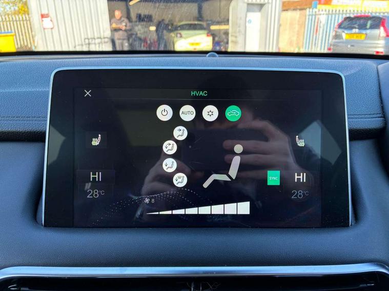 10.1" colour touchscreen, 12.3" Full digital driver information display, Adaptive cruise control, Android Auto, Apple CarPlay, Blind Spot Detection (BAS), Bluetooth connectivity, Driving modes, Emergency call service, Intelligent speed assist, Lane keep assist system (LAS) with Lane departure warning system (LDWS), PAS, Power tailgate, Rear cross traffic alert, Rear parking camera, Rear parking sensors, Satellite navigation system, Traffic jam assist, Trip computer, USB mobile phone charging function, 6 speaker audio system, DAB audio, Auto dimming rear view mirror, Automatic headlights, Body colour electric adjustable heated door mirrors, Electric folding door mirrors, Follow me home headlights, Front and rear aero wiper, Front and rear electric windows with one-touch up/down, Front fog lights, Intelligent high beam, LED Bi-Function headlights, LED centre brake light, LED daytime running lights, LED front and rear sequential indicators, Rain sensing wipers, Rear side wing doors, Silver roof rails, 12V power sockets, 2nd row 60/40 split fold seat, 2nd row seat with 2 stage incline adjustment, 3 rear headrests, 3 seat bench in 2nd row, 4 way electric adjustable passenger seat, 6 way electric adjustable drivers seat + lumbar support, Ambient lighting (adjustable colour), Dual zone automatic air conditioning, Front centre sliding armrest with storage compartment, Front headrests, Heated front seats, Height and reach adjustable steering wheel, ISOFIX restraints on outer rear seats x2, Leather steering wheel, Metal sports pedals, Single passenger seat, Sports Style Front Seats with One-Piece Back, Steering wheel paddle shift, 3x3 point rear seatbelts, ABS/EBD, Active emergency braking with pedestrian/Bicycle detection, Anti rolling protection, Cornering brake control (CBC), Drivers seatbelt reminder, Dual front airbags, Electric parking brake with auto hold function, ESP, Front and rear passenger seat belt reminder, Front passenger airbag deactivation switch, Front seat belt height adjuster, Front seatbelts (3-point + pretensioner + load limiter), Front side airbags, Hill descent control, Hill launch assist, Manual rear child locks, Rear outer seatbelt pretensioner and load limiter, Side curtain airbags, Tyre pressure monitoring system, Alarm system and engine immobiliser, Keyless entry and push button start system, Remote central locking, Speed sensing door locks, 18" Hurricane diamond cut alloy wheels, Tyre repair kit,