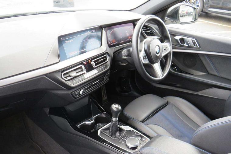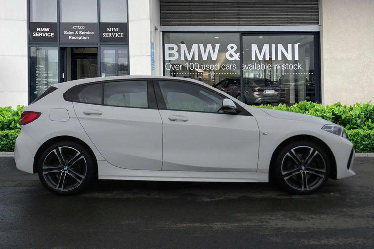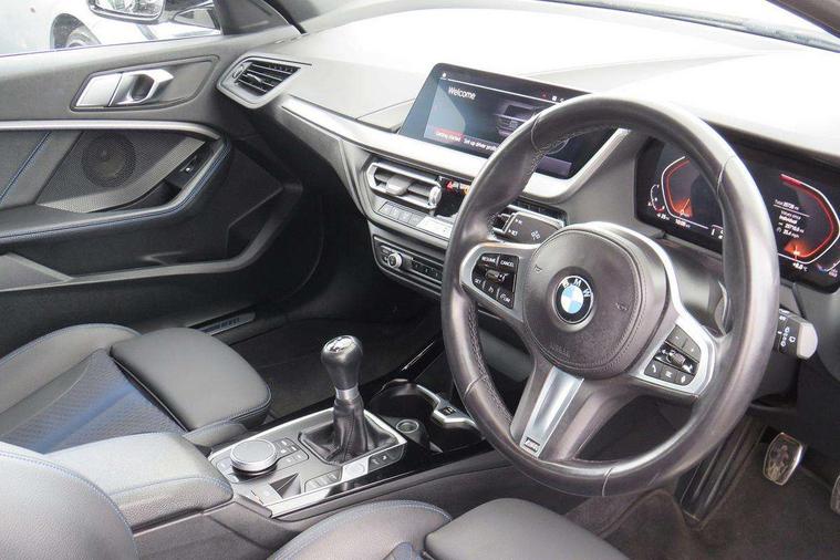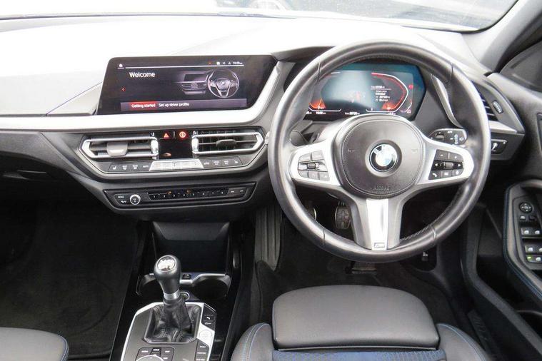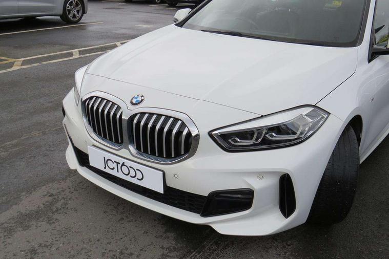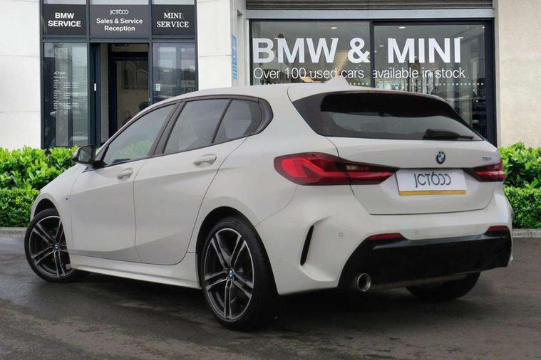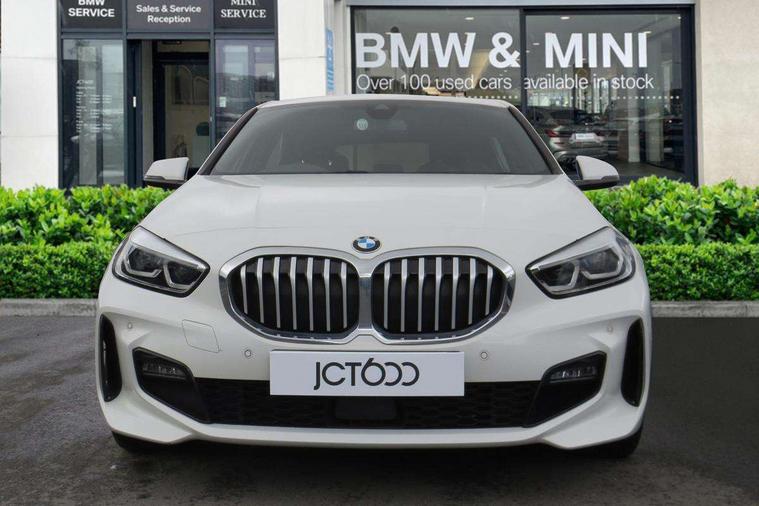Active guard plus, Attentiveness assist, BMW ConnectedDrive online services, BMW Teleservices, Check Control warning system for monitoring of lights and door/luggage compartment open warning, Cruise control with brake assist, Eco pro mode, Front axle single joint with specific axle kinematics to minimise drive influences on steering + provide increased rigidity agile driving behaviour, Integrated owners handbook, Lane departure warning system, Oil sensor for level and grade, On board computer, Optimum shift indicator, Personal Profile, Pull away assistant, Rigidly mounted rear subframe - Multi link construction with separate spring / damper configuration and excellent driving characteristics, Speed limit Info including no-overtaking indicator, Speed limiter, Aluminium lightweight construction, Anti roll bar front and rear, Balancer shaft, Double VANOS twin scroll turbocharging system, Drive Performance Control, Electronic differential lock, High precision injection, M sport suspension, Petrol Particulate Filter, Twin tube gas filled shock absorbers with degressive characteristic curve, VALVETRONIC engine management, DAB Digital radio, Auto dimming rear view mirror, Automatic headlight beam throw control, Automatic windscreen wipers and automatic headlight, Body colour door handles, Body colour mirror caps, Body colour roof trims, Chrome 'M' logo side designation, Chrome exhaust twin tailpipes round 90mm in left, Chrome kidney grille frame with Satin Aluminium struts, Direction indicator side lights in exterior mirrors, Fading support, Folding side mirrors with auto dimming/folding wing mirrors with auto dimming, Follow me home headlights, Front and rear bumper system with replaceable deformation elements, Front and rear electric windows with open and close fingertip control, anti trap facility and comfort closing, Front door sill finishers in black plastic with M designation in metallic look, Green tinted heat protection glazing, Heated, electrically adjustable exterior mirror aspheric on driver side, convex on passenger side, High gloss shadowline window frame, Recess cover mirror frames and B/C pillar embelisher trim, High level third brake light, Integrated front windscreen with washer jets, LED daytime running lights, LED eyebrow turn indicators, LED front fog lights, LED Headlights, Lightweight engineering, Matt black air guide grilles, Matt black wheel arch trim, Model designation on electric bootlid, Nearside reverse light in rear light cluster, Preparation for high beam assistant, Rear fog lights, Rear side wing doors, Rear window wiper, Shark fin antenna, Trailer stabilisation logic, Visible VIN plate, Welcome lighting, 12V power socket in front centre console with blanking plug, 3 rear seat head restraints, 3 seat bench in 2nd row, 3 spoke sports leather steering wheel in black leather with black stitching and decorative finisher in pearl chrome, specific M badge + leather knob, Anthracite headlining, Black boot net with lashing eyes, Cargo function on 2nd seat row, Child seat ISOFIX attachment for two outer rear seats and front passenger seat with anchorage points, Conditioned based service, Driver and front passenger seat heating, Folding rear clothes hook, Four grab handles integrated in roof lining, Front and rear door pockets with bottle holders, Front and rear side armrest integrated into door trim, Front armrest, Front sports seats, Gearshift lever with M designation, Glove compartment, Height adjustable front head restraints, Luggage compartment for bag hooks on left and right, foldable luggage compartment liner and four lashing eyelets, Manual adjust steering wheel, Multi-function controls for steering wheel, Single front passenger seat, Storage compartment in centre console, Sun visors with vanity mirrors and insert tab, Two front centre console cupholders, Two zone automatic air conditioning, Velour floor mats, Additional interior lighting pack - 1 Series, BMW live cockpit professional pack- 1 Series, Connected pack professional - 1 Series, Interior lights pack - 1 Series, M Sport exterior styling aerodynamics pack - 1 Series, 2 tone horn, 3 point seatbelts on all seats, front pyrotechnic belt tensioners, stopper and belt force limiters, rear coded belt buckles, Airbags - Front driver/passenger, front and rear curtain head protection, front side, manual deactivation of front passenger airbag, Anti lock braking system (ABS) with brake assist, BMW emergency call, Brake drying, Braking readiness, Child proof locking system in rear door, City braking function, Comfort modes, Cornering brake control, Crash sensor activating central locking release, hazard warning lights, fuel cut off, interior lighting + activation of safety battery terminal clamp, Driver and front passenger seat belt security check, Dynamic stability control + (DSC+), Dynamic Traction Control - DTC, Electrically operated hand brake, Front and rear disc brakes, Seatbelt warning, Side impact protection, Tyre pressure monitoring system, Warning triangle and first aid kit, Central locking switch for all doors, fuel filler cap and luggage compartment, Deadlocking function system to all doors, Drive away locking system on all doors and luggage compartment with de-activated in iDrive settings, Locking wheel bolts, Remote control with integrated key with High-gloss Black inlay and M designation and 1 button for open/ close lock, window, open luggage compartment, Start/stop button illuminated in centre console with keyless engine start and auto start stop deactivation button, Thatcham Cat.1 alarm and immobiliser, Wheel slip limitation close to the actuator (ARB), Contrast stitching on instrument panel, Electrically powered 12V compressor, Reduced rolling resistance tyres,