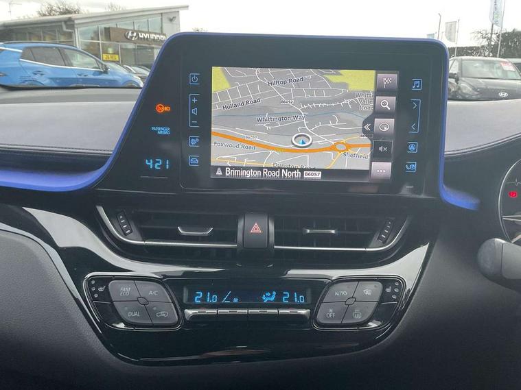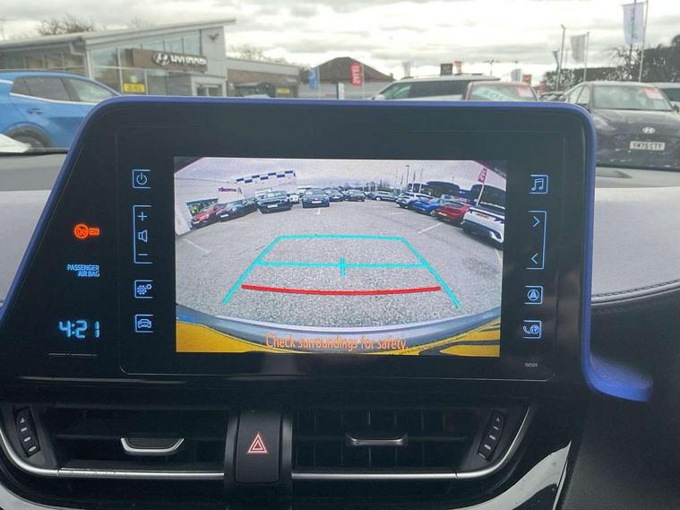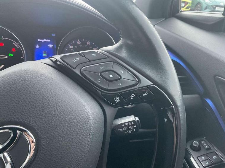 4.2" Colour TFT driver information display, Adaptive cruise control, Bluetooth system, Collision prevention assist, Intelligent parking assist with front, rear and side parking sensors, Lane change assist and blind spot monitor, Lane departure warning system, Lights on warning, PAS, Push button starter, Rear cross traffic alert, Reversing camera, Touch 2 Go navigation system, Traffic sign recognition, Trip computer, Vehicle Stability Control (VSC), Auxiliary input socket, Steering wheel mounted controls, USB connection, Auto dimming rear view mirror, Auto high beam, Automatic headlight levelling, Bi-tone black roof, Body colour door handles, Body colour heated door mirrors, Body coloured bumpers, Electric door mirrors, Electric folding door mirrors, Follow me home headlights, Front and rear electric windows, Front fog lights, Heated rear windscreen, LED daytime running lights, LED Headlights, LED rear lights, Privacy glass, Rain sensitive windscreen wipers, Rear spoiler, Rear wiper, Shark fin roof aerial, 12V Accessory socket, Child seat anchorage points, Chrome interior door handles, Cloth upholstery, Driver/passenger sunvisors and illuminated vanity mirrors, Dual zone automatic air conditioning, Folding rear seats, Front and rear door pockets, Front centre armrest, Front cupholders x 2, Front head restraints, Heated front seats, Height adjustable drivers seat, Illuminated door sills, Illuminated entry system, Leather gear knob, Lumbar support, Nappa leather steering wheel, Rear headrests, Tilt/telescopic steering column, 3x3 point rear seatbelts, ABS+EBD+Brake assist, Airbag deactivation switch, Driver/Front Passenger airbags, Driver/front passenger side airbags, Drivers knee airbag, ESP + traction control, Front and rear curtain airbags, Hill start assist control (HAC), Rear child proof door locks, Road sign information display, Tyre pressure monitoring system, Alarm, Immobiliser, Remote central locking, Smart entry, Tyre repair kit,
