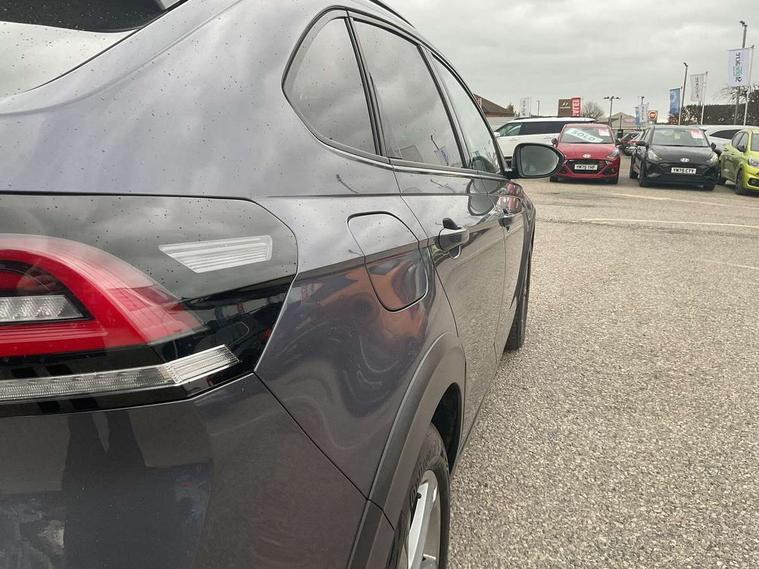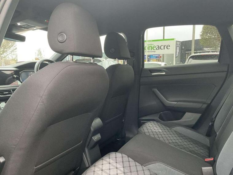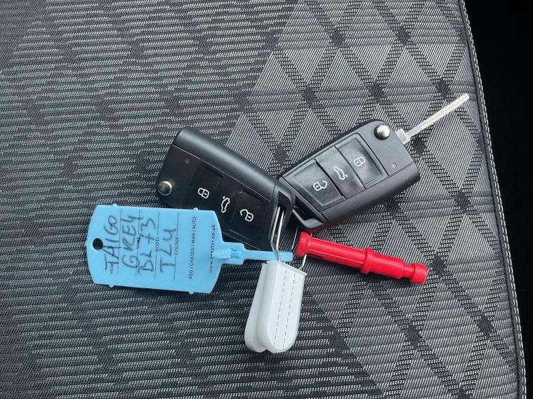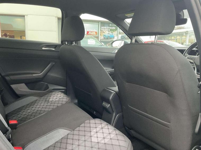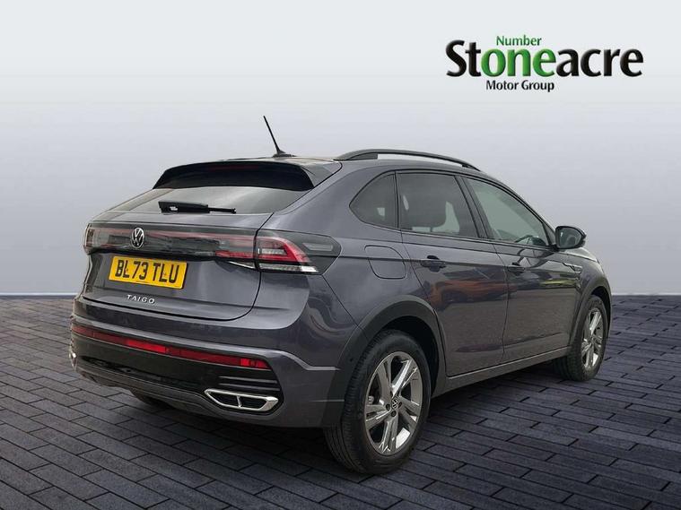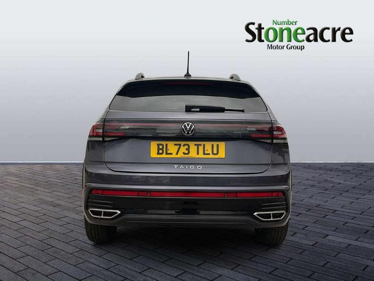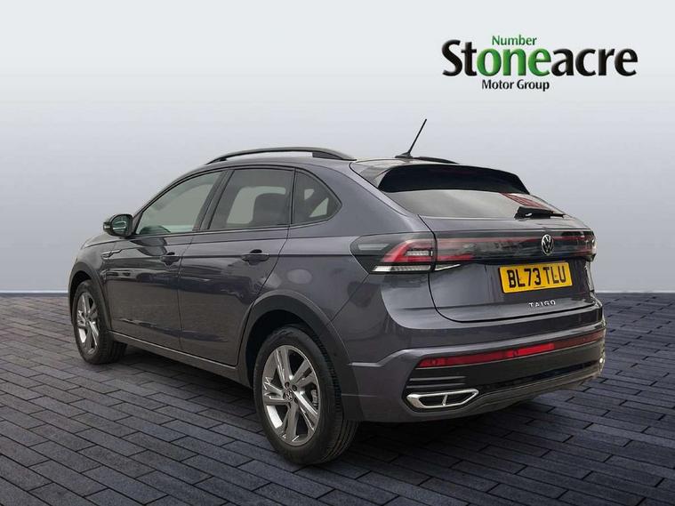 Advanced driver attention and drowsiness monitor, App-Connect including App-Connect Wireless, Digital cockpit pro - 10.25" high resolution TFT dash display screen with customizable menus and information, Driving profile selection, e-Call (emergency call), Power Steering, Travel assist including emergency assist, Washer fluid level indicator, Wireless Charging including Bluetooth, Start-stop system with battery regeneration (recuperation - energy recovery during braking), XDS electronic differential lock for improved traction and handling, Digital radio reception (DAB+), Diversity antenna for FM reception, WeConnect plus, Ambient lighting with logo projection, Aspherical driver's exterior mirror, Auto headlights, Body coloured bumpers, Body coloured exterior mirror housings and door handles, Bumpers in R-Line style, Electric windows, External USB type C socket and charging sockets, Front scuff plates with R-Line logo, LED rear combination lamp, LED third brake light, Left convex exterior mirror, Power folding adjustable/heated exterior mirrors and front passenger exterior mirror lowering function, Rear fog light on one side, reversing light on both sides, Rear side wing doors, Rear wash/wipe with intermittent wipe setting, 12V socket in centre console, 2 front reading lights, 3 rear head restraints, 3 seat bench in 2nd row, Air care climatronic air conditoning system with active combination filter and 2-zone temperature control, Black carpets, Black roof lining, Child seat anchor for child seat system i-Size, 2x top tether and child seat anchor in front on front passenger side, Chrome bezel for instrument cluster, vents, door handles + gear shift, Driver and front passenger seat height adjustment, Front + rear carpet mats, Front centre armrest, Front footwell illumination, Front sports comfort seats, Height and reach adjustable steering wheel, Interior ambient lighting and surround lighting, Karoso artvelours cloth upholstery, Leather trimmed gear knob, Leather wrapped multifunction steering wheel, Luggage compartment floor, Luggage compartment light, Lumbar support for driver's and front passengers seat, Seat covers in grey + titanium black, Single front passenger seat, Split folding backrest with centre armrest and unsplit rear seat bench, Stainless steel pedals, Storage compartment under front seats, Sun visors with illuminated vanity mirrors, Chrome Package - Taigo, Drivers assistance pack - Taigo, Light and Sight pack including High beam assist - Taigo, 2 x 3-point seatbelts/outer rear seats with ECE label, 3-point seat belts in front with pretensioner and height adjustment, 3-point seatbelt for centre rear seat, Driver and front passenger airbags with front passenger airbag de-activation, front side and curtain airbags, Driver and front passenger safety-optimised head restraints, Electronic stability control, Extended and predictive pedestrian/ cyclist protection, Front and rear disc brakes, Front curtain and side airbags with center airbag, Hill start assist, Manual rear child locks, Single tone horn, Tyre pressure loss indicator, Anti-theft alarm system with interior monitoring, backup horn, and towing protection, Anti-theft wheel bolts, Grey anodised matte decorative inserts in dash and front door panels, Low rolling resistance tyres,