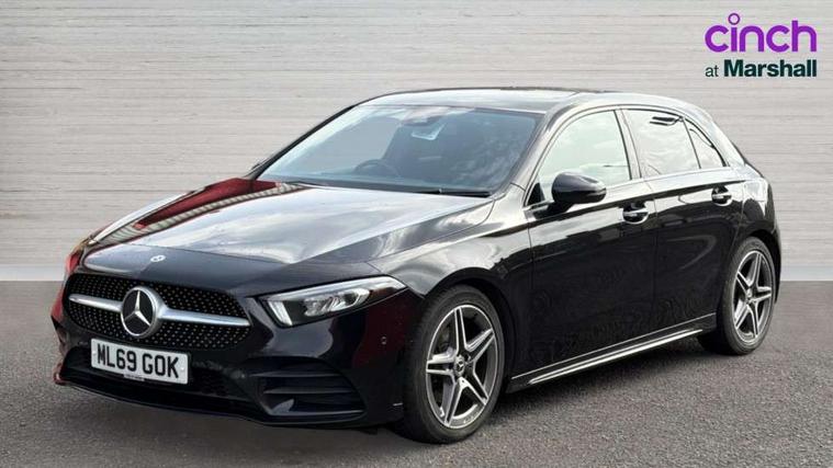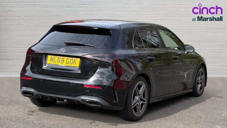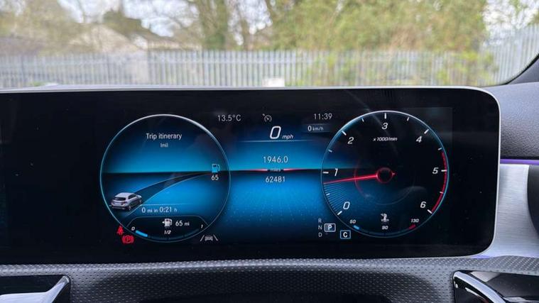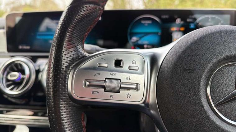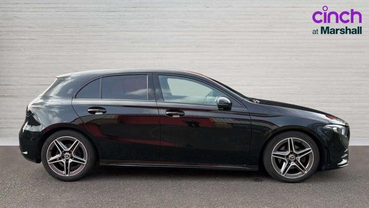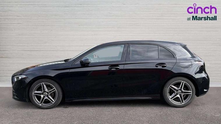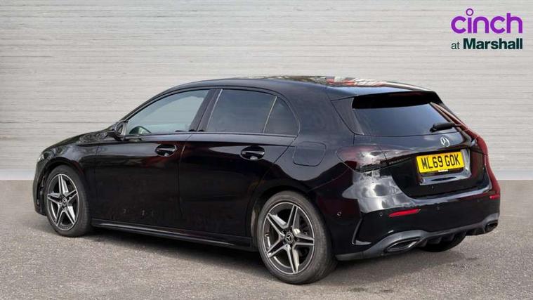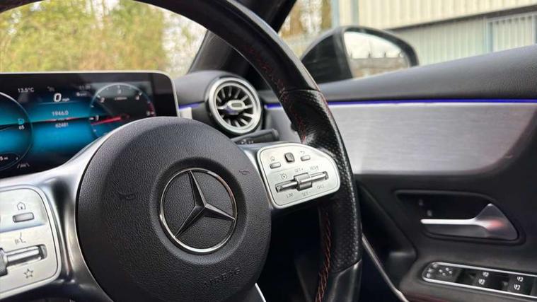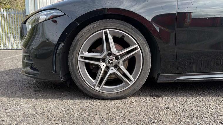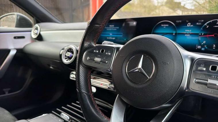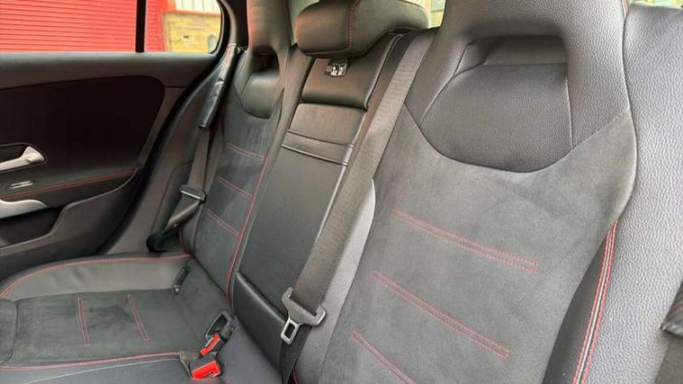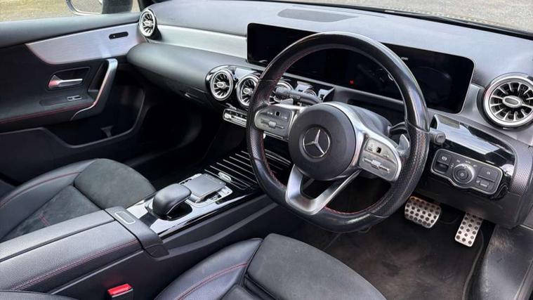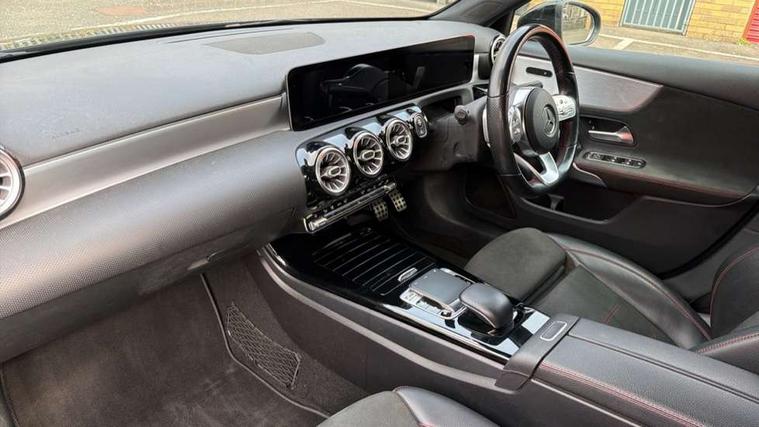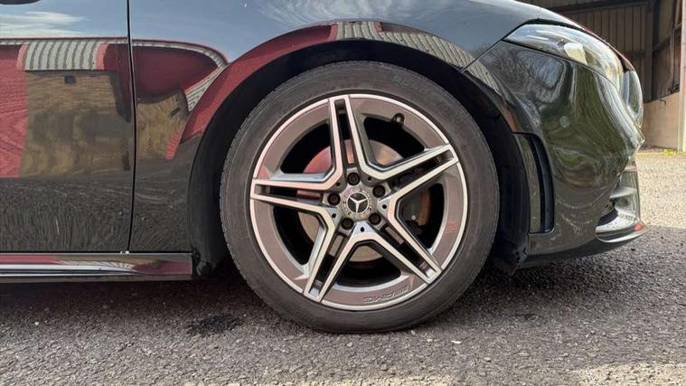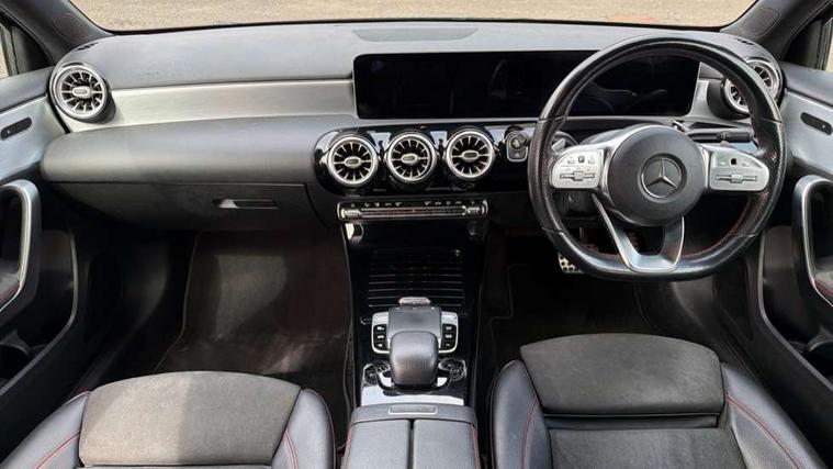 10.25" Digital instrument cluster display screen, 180 degree rear view camera with parking guidelines, Active lane keep assist, Active park assist with parktronic system including front and rear parking sensors, Attention assist, Brake pad wear indicator warning light, Direct steering, DYNAMIC SELECT with a choice of driving modes (ECO, Comfort, Sport and Individual), ECO start/stop function, Fluid level warning indicator for fuel, oil, coolant and washer fluid, Hard-disk navigation, Hey Mercedes Voice activation, Lamp failure indicator, Mercedes me connect including emergency call system, accident recovery, breakdown management and maintenance, Outside temperature gauge, Radio aerial integrated into roof spoiler, Service indicator (ASSYST), Speed sensitive power steering, Trip computer, Lowered comfort suspension, DAB Digital radio, Dual bluetooth interface, 2 USB ports (type C), MBUX multimedia system with DAB digital radio and touchpad including satellite navigation, Mid-range sound system, 4 Electric Front and Rear windows, Adaptive brake lights, AMG front, rear apron and side skirts, Blue tinted glass, Body colour bumpers, Body colour door handles, Body colour side skirt, Body coloured door mirrors, Chrome beltline trim, Diamond radiator grille with chrome pins and silver louvre + chrome insert, Electric adjustable and heated door mirrors with integrated LED side indicators, Exhaust system - Twin trapezoidal tailpipes in polished stainless steel, Headlamp assist automatic headlamp activation, Heated glass rear windscreen + timer control, LED high performance headlamps with integrated LED daytime running lights, LED tail lamp, LED third brake light, Privacy glass, Rain sensor windscreen wipers, Rear fog lights, Rear wiper, 12V socket, 3 Spoke flat bottom leather multi function steering wheel with perforated leather in grip area, 40:20:40 split folding rear seats, Air vents surround and cruciform nozzle in silver chrome, AMG floor mats with red stitching, Artico man-made leather/Microfibre Dinamica upholstery with red contrast stitching, Auto Mercedes-Benz child seat recognition sensor, Black roof lining, Brushed stainless steel sports pedals with rubber studs, Controller on centre console with chrome surround, Cup holder and stowage compartment lighting, Freight packaging without tie-down hooks, Front centre armrest with storage compartment, Front door sills with Mercedes Benz lettering, Front footwell lights, Front reading lamps in left and right console downlighter, Front seat backs luggage nets, Front seat cushion length adjustment, Front signal exit lamp, Front vanity lights, Gearshift paddles on steering wheel, Handle recess/closing light, Heated front seats, Height/reach adjustable steering column, Illuminated door sills, Illuminated glove compartment stowage, Interior lighting - 64 colour Ambient lighting, ISOFIX Child seat top tethers and anchor fixings, Luggage compartment cover, Manual height adjustable front seats, Oddments tray lighting, Rear armrest, Rear head restraints, Rear Reading Lamps, Seat occupancy sensor for front passenger seat, Spectacles compartment for driver, Sports seats with integrated headrests, Storage compartment under load area floor, Stowage compartment in centre console with retractable cover, Sunvisors with illuminated vanity mirrors, Touchpad, Touchpad illumination, Twin front cupholders, Two zone thermotronic luxury automatic climate control, Light and sight pack - A Class, Mirror package - A Class, Seat comfort pack - A Class, 3 rear 3 point seatbelts, ABS with Brake Assist, Active bonnet, Adaptive brake assist with hold function and hill start assist, Black seatbelts, Childproof locks manually operated for rear doors and electrically operated for rear power windows, Crash responsive emergency lighting, Driver and passenger head and side airbags, Drivers knee airbag, Dual stage driver/passenger airbags, Electronic parking brake, ESP curve dynamic assist, ESP with ASR, Front and rear seatbelt reminder, Front brake callipers with Mercedes Benz lettering, Tyre pressure monitoring system, Warning triangle and first aid kit, Window airbags, Alarm system/interior protection/immobiliser, Keyless entry lock/unlock, Remote central locking and crash sensor with emergency opening function, 18" AMG 5 twin spoke light alloy wheels in titanium grey with highsheen finish, Summer tyres, Tirefit sealant kit,