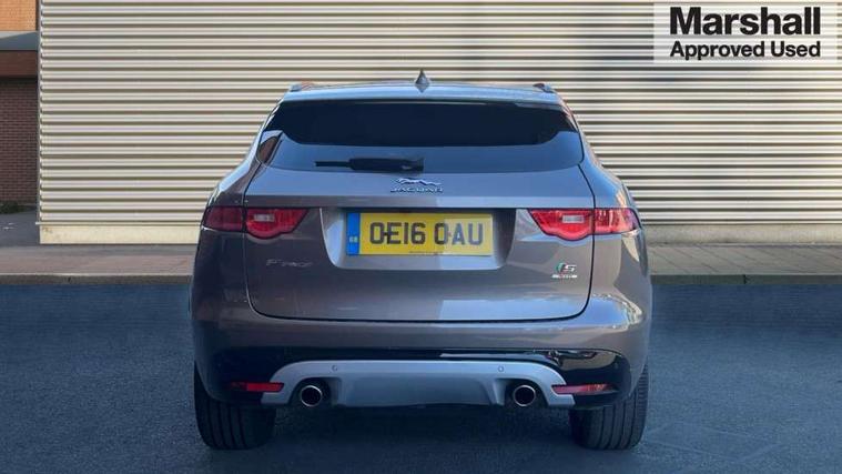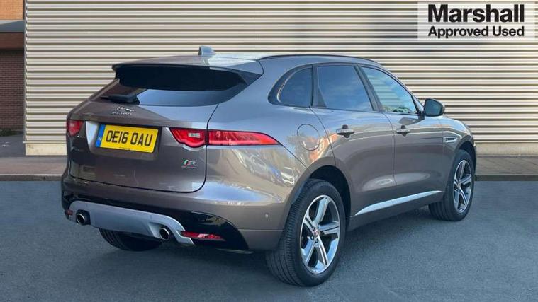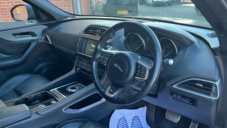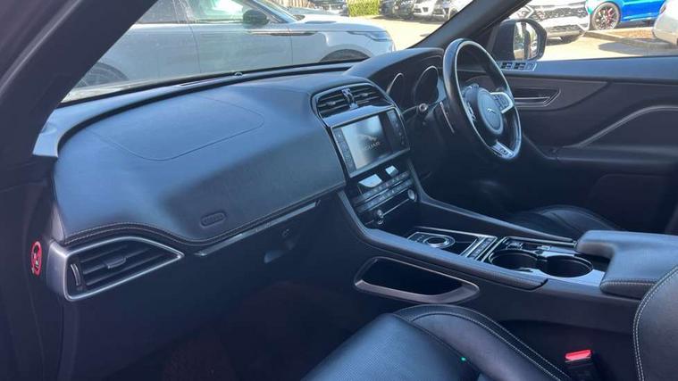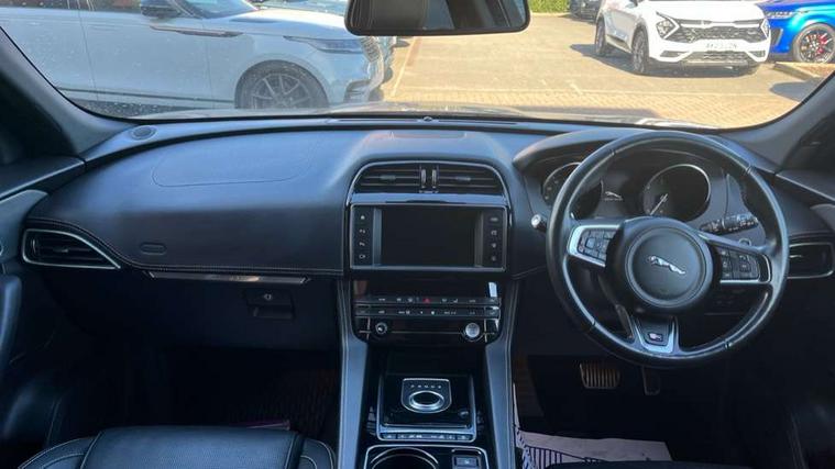 Auto speed limiter, Front parking aid, InControl touch SD navigation, Lane departure warning system, Outside temperature gauge, Power tailgate, Rear parking aid, Service interval indicator, Touch screen display, Traffic sign recognition, Trip computer, Variable PAS, All terrain progress control, Bluetooth connectivity including audio streaming, DAB Digital radio, Dynamic volume control, 'S' Body kit, Approach Illumination, Auto dimming rear view mirror, Automatic headlights, Body colour bumpers, Body colour door mirrors, Electric front/rear windows with one touch/auto up/down, Front fog lights, Green tinted heat insulating glass, Headlight washers, Heated rear window with timer, LED tail lights, Rain sensor windscreen wipers, Rear wiper, Trailer stability assist, Variable front intermittent wipers, 12V power point front/rear, 12V power point in luggage area, 2nd row air vents, 3 rear headrests, 40:20:40 split folding rear bench seat, Fold flat front seats, Front centre armrest with storage compartment, Interior mood lighting, ISOFIX on outer rear seats, Jaguar sense, JaguarDrive selector, Leather multi function steering wheel, Overhead console with sunglasses holder, Perforated taurus sports leather upholstery, Premium carpet mats, Rear armrest with cupholder, Shopping hook in boot, Sports pedals, Steering wheel gearshift paddles, Tie down hooks in luggage area, 350mm front brakes, 3x3 point rear seatbelts, ABS, Anti-whiplash front headrests, Autonomous emergency braking (AEB) with forward facing camera, Brake pad warning light, Driver/Front Passenger airbags, DSC - Dynamic Stability Control, Electronic parking brake, Emergency brake assist, Front and rear curtain airbags, Front and rear seatbelt reminder, Front passenger seat occupancy sensor, Front side airbags, Hill start assist, Power child locks, Red painted brake calipers, Torque vectoring brake, Traction control, Tyre pressure monitoring system, Immobiliser, Keyless start, Perimeter alarm, Remote central locking, Valet mode,